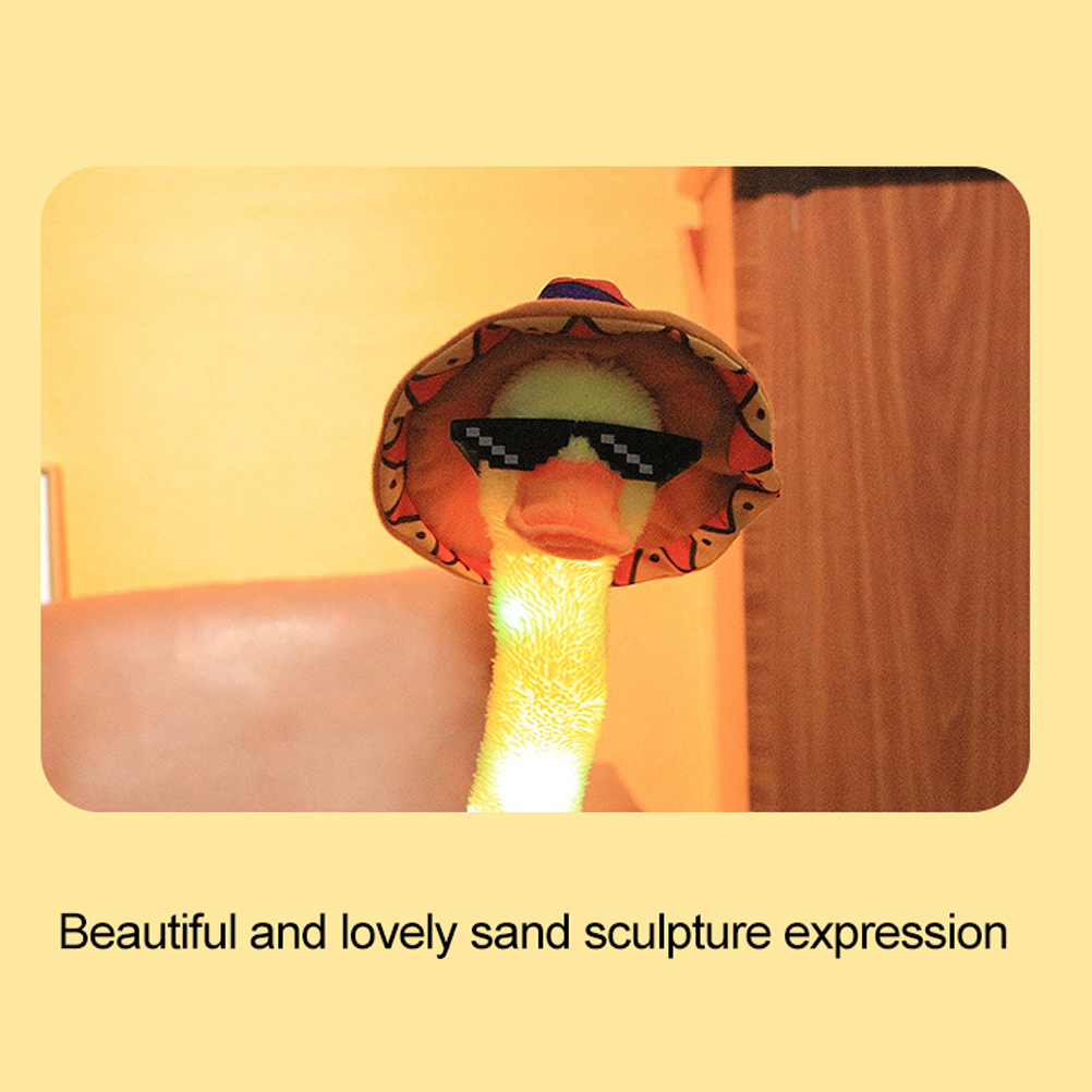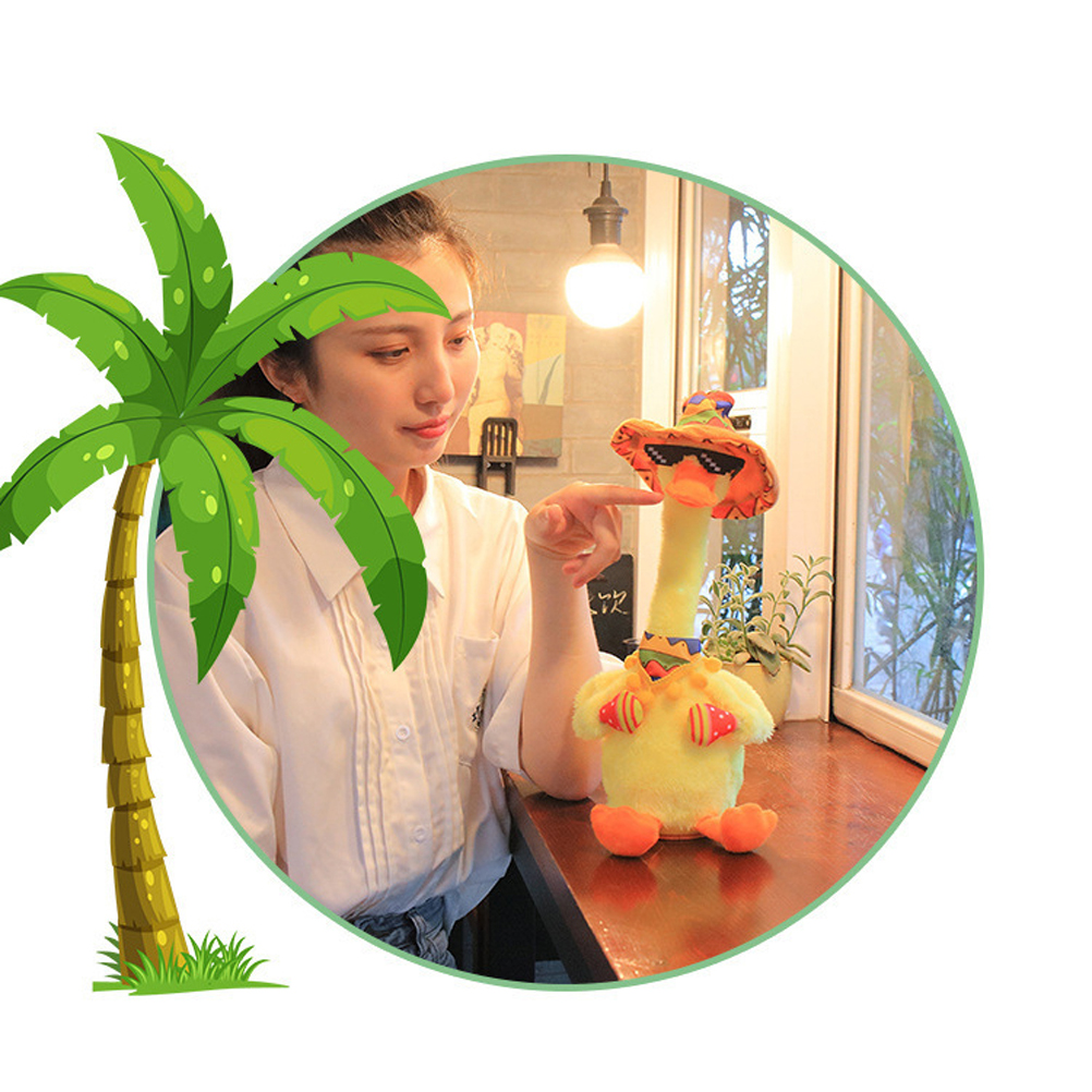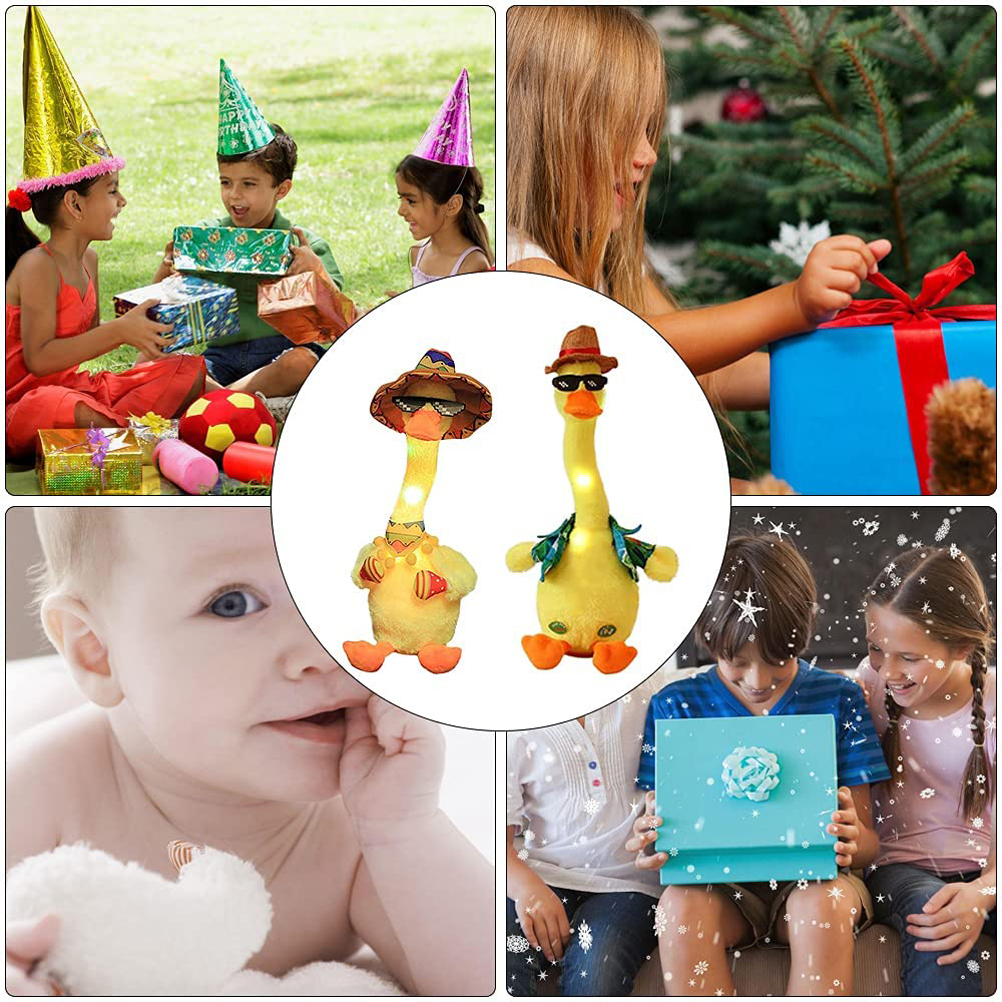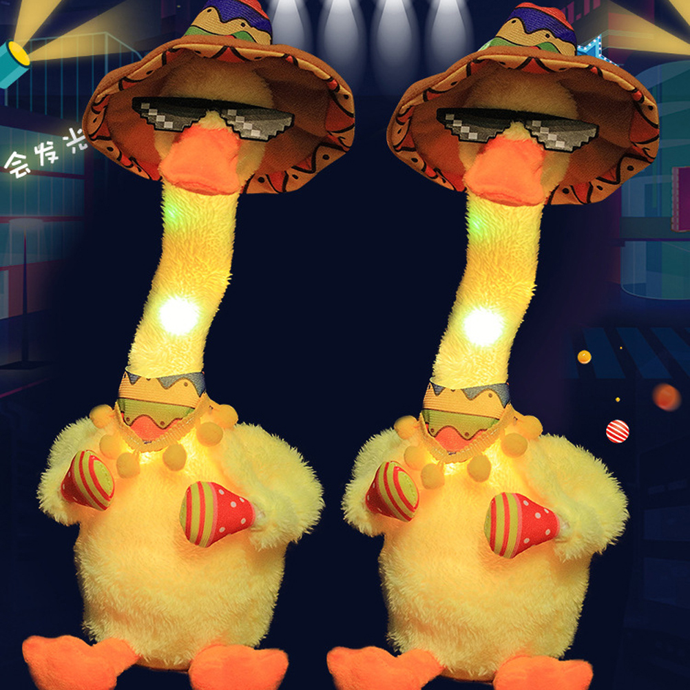1、1. The electric duck is made of soft plush fabric and filled with high-quality PP cotton. Soft and comfortable, delicate and lovely. The cute duck toy is a great gift for children. 2、2. Our dancing duck toy has 120 built-in songs and can dance. This funny electric duck toy can sing and dance by twisting the neck, making family and friends laugh. 3、3. Our electric musical duck toy has lighting and recording functions. Duck toys can dance, sing, shine, record and learn to speak. There are two styles to choose from, Mexican style and Hawaiian style. 4、4. This cute and funny duck toy can sing, dance and repeat what you say. It can attract children's attention, awaken their interest, and help them develop their imagination. Ideal as a gift, it is also a perfect accessory for Christmas or holiday decorations.
