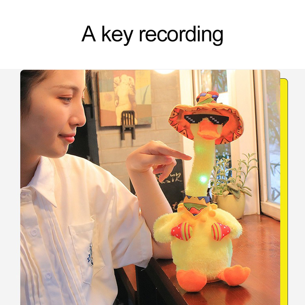 Electric Musical Duck Toy with 120 Songs Singing Dancing Duck Toy with Luminous and Recording Plush Duck Toy for Children Kid