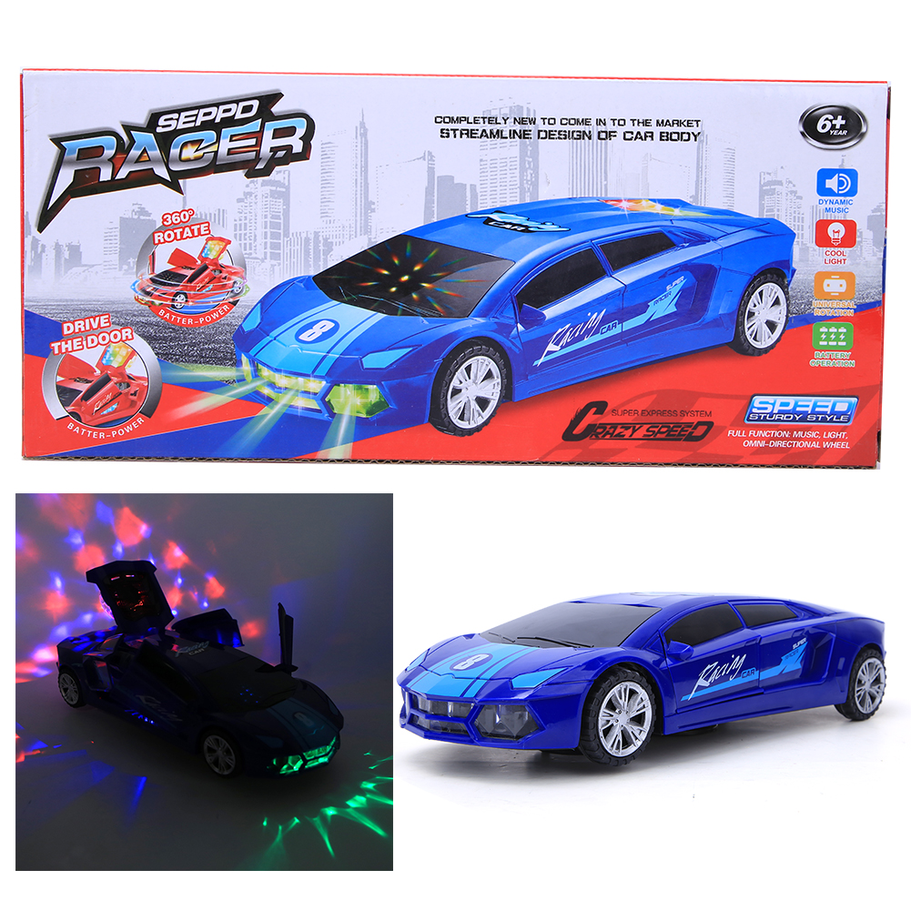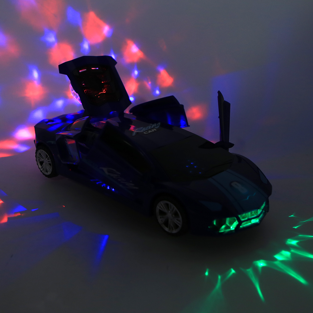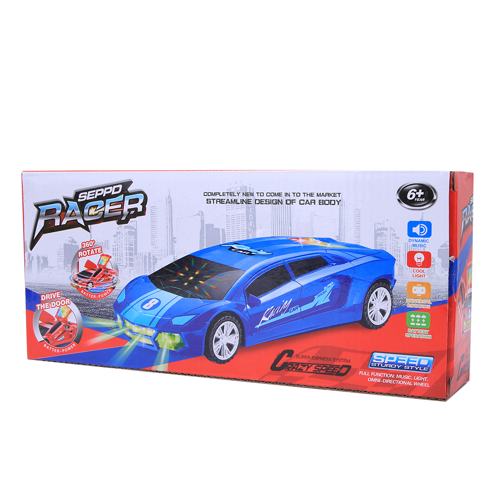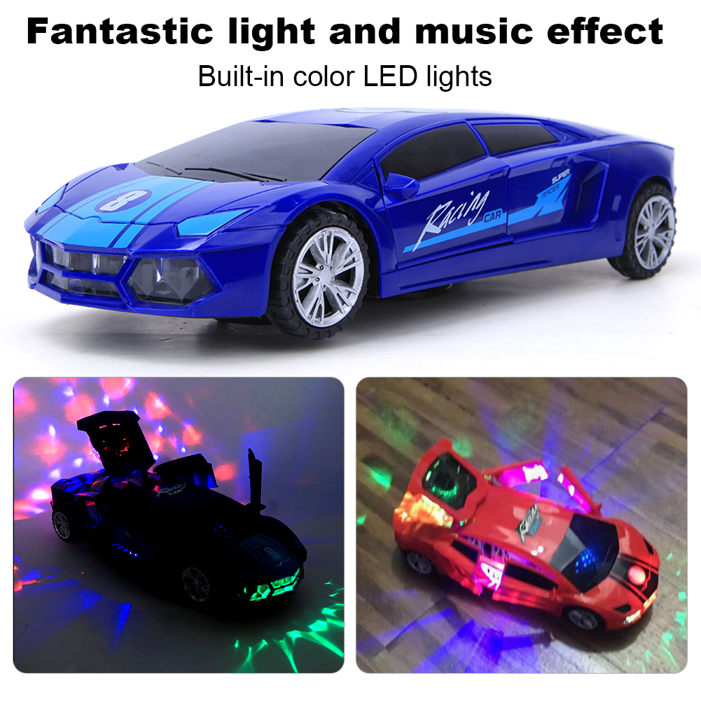 1、Can display fantastic light and music effect after driving for a while. 2、Electric universal wheel, automatic steering when encounter obstacles. 3、Built-in color LED lights, soft and not dazzling, to protect children's eyes. 4、Special designed for children above 3 years to play, wonderful gift. 5、Powered by 3pcs AA battery (not included), add more fun for you.