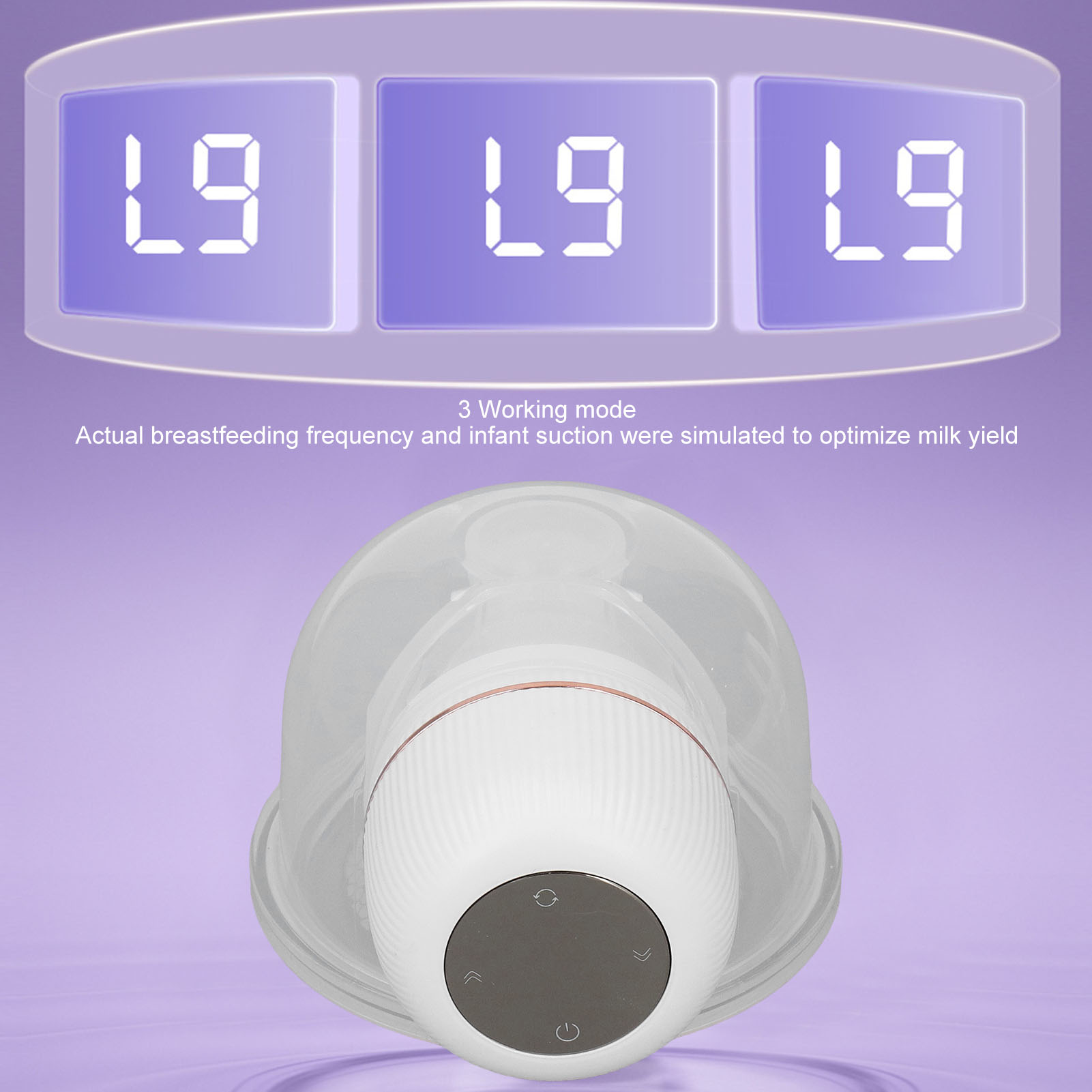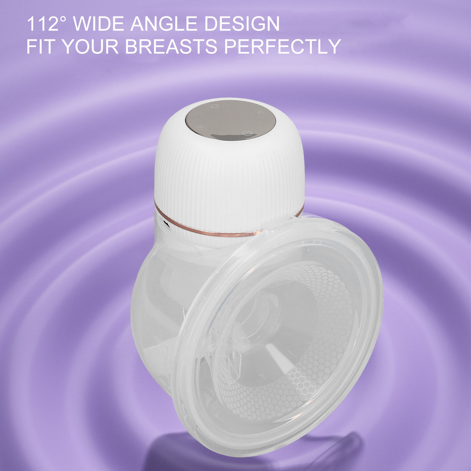 1、9 LEVELS 3 MODES: LCD screen clearly shows all working status, clear button, 3 working mode, 9 adjustable suction level, actual breastfeeding frequency and infant suction were simulated to optimize milk yield. 2、LOW NOISE: 48db low noise design, will not affect sleep. USB rechargeable design, built in 900mAh lithium battery, longer battery life. 3、BACKFLOW PREVENTION: Wearable breast pump with one way valve flow, effectively prevent respiratory milk backflow, increase container sealing edge. 4、REMOVABLE WASHABLE: Each part of the cordless breast pump is removable, easy to clean and assemble, and can be washed in the dishwasher to save time. 5、SAFE SILICONE: Hands free breast pump made of food grade silicone material and does not contain any harmful substances to ensure the safety of the baby and mother.