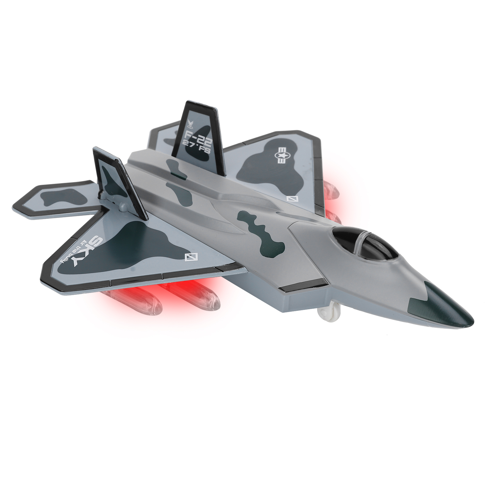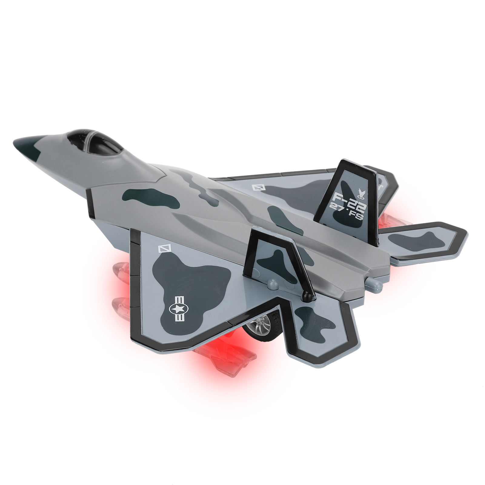 F22 Pull Back Airplane Model Highly Simulation Alloy Airplane Model Toy with Light Sound(Gray Military Green )