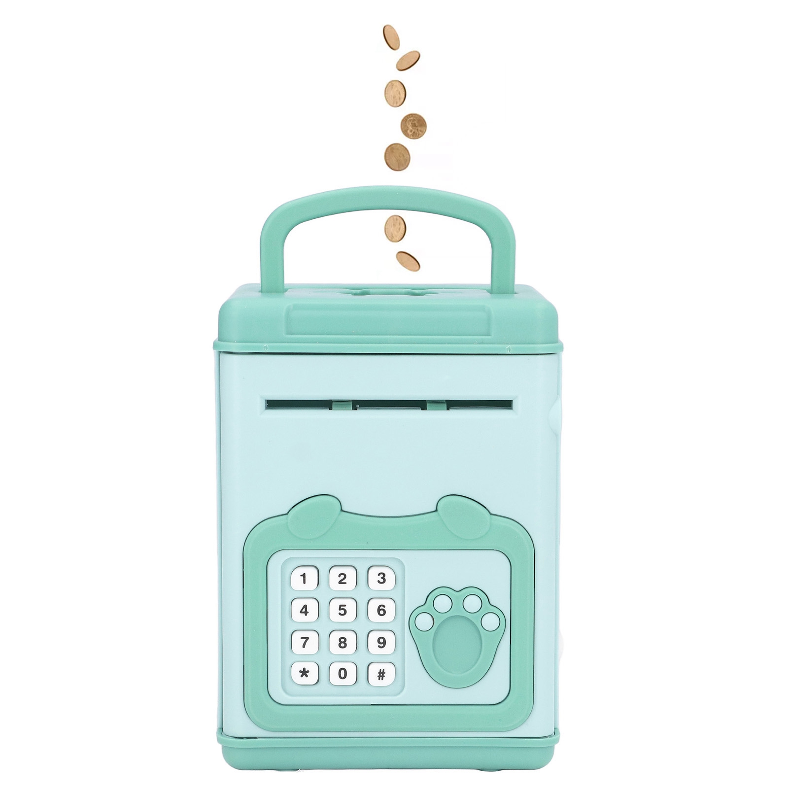 Fingerprint Password Cash Piggy Bank for Kids Auto Scroll Paper Interactive Piggy Bank Electronic ATM With Child Music Green