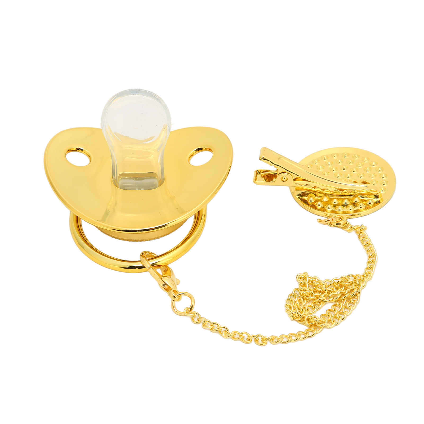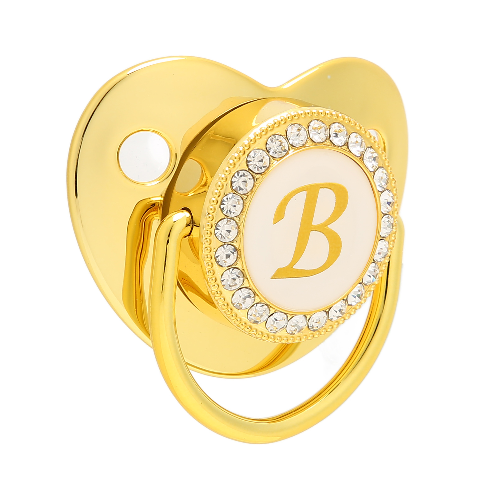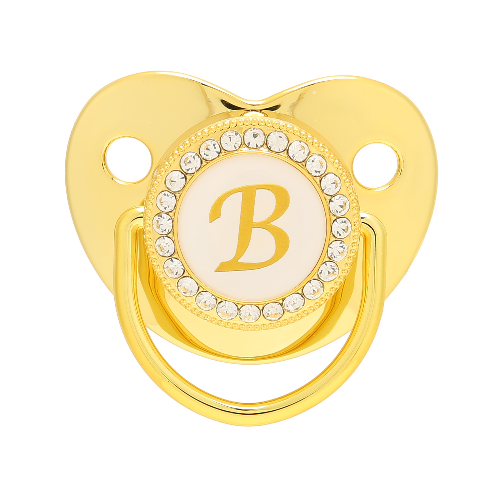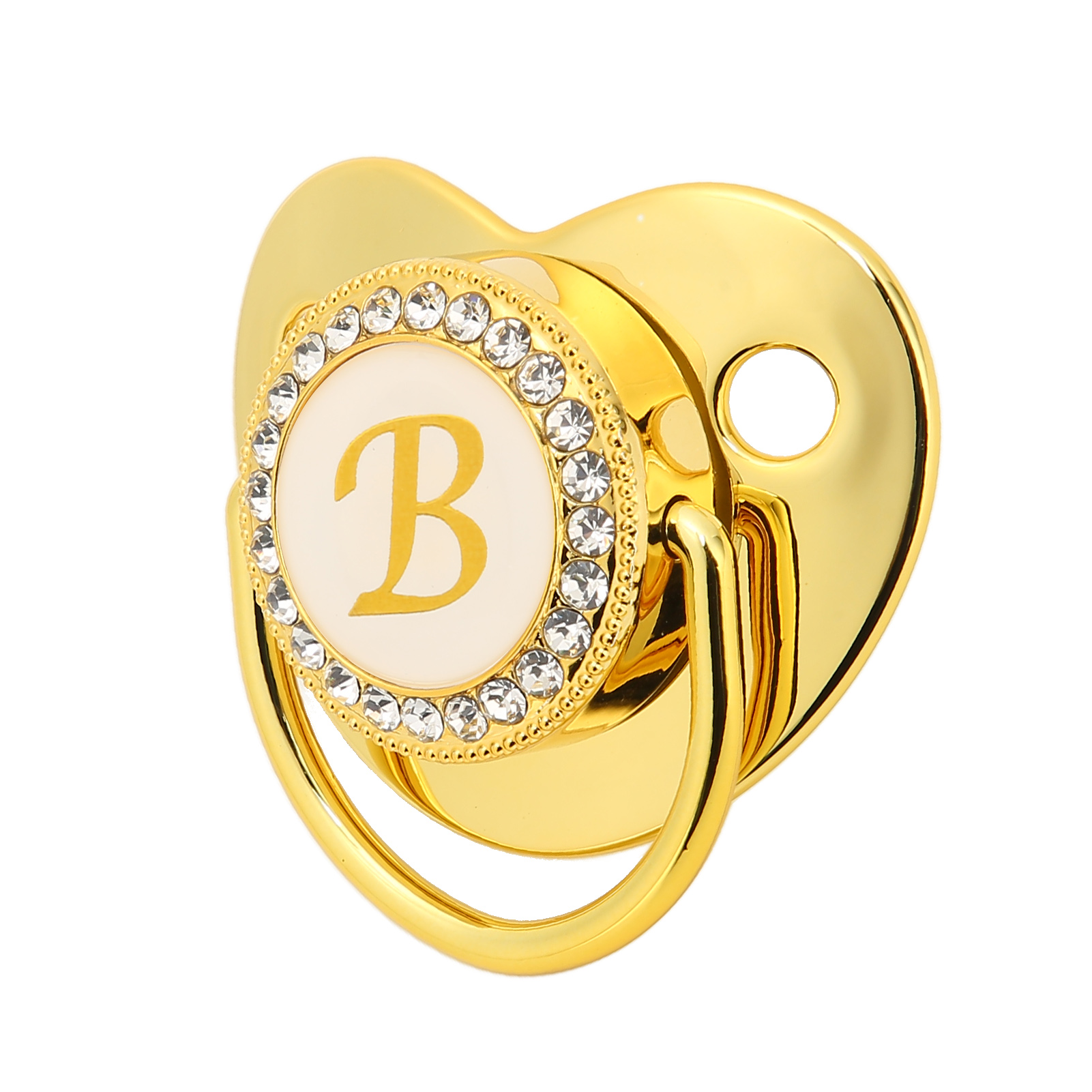 1、Curved Design: The golden pacifier with clip initials has a rounded design, which is ergonomic and reduces friction with the nose. 2、Soft Lightweight: Bling baby pacifier is ultra light and flexible to help reduce oral fatigue so baby can suck longer. 3、Safety Materials: Golden baby pacifier is made of silicone, PP and metal, BPA free, safe, non toxic, odorless, safe for babies to use. 4、Healthy Convenient: The baby pacifier adopts a one piece seamless design, which will not hide dirt, and there is no danger of swallowing. 5、26 Letter Design: Developed with the support of pediatric feeding experts, the cylindrical shape allows your baby to mimic the shape of their tongue while breastfeeding, helping to preserve your breastfeeding journey.