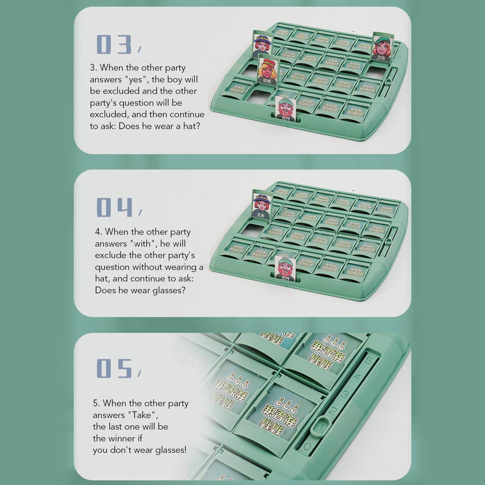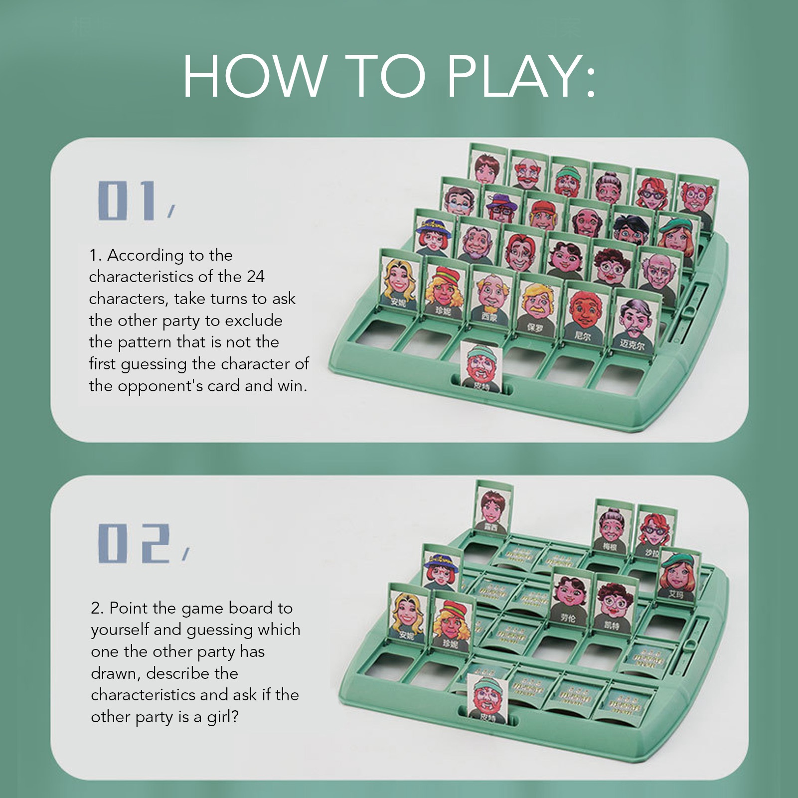 1、EASY TO USE: The card slot of kids guessing game puts the card smoothly, the card is not stuck, and it is not easy to drop. 2、PUZZLE: The rich patterns test the observation ability, guide the child to think in a "stepped" way, and help the child to enter the deep thinking and solve the puzzle step by step. 3、SAFE TO USE: The guessing who board game is thick and glossy, with no burrs on the edges, not only happy, but safe. 4、CULTIVATION ABILITY: Cultivate social ability, exercise oral expression ability, and let children learn effectively through play. 5、PREMIUM MATERIALS: Board games uses premium quality plastic and cardboard, which are safe, eco friendly and harmless.