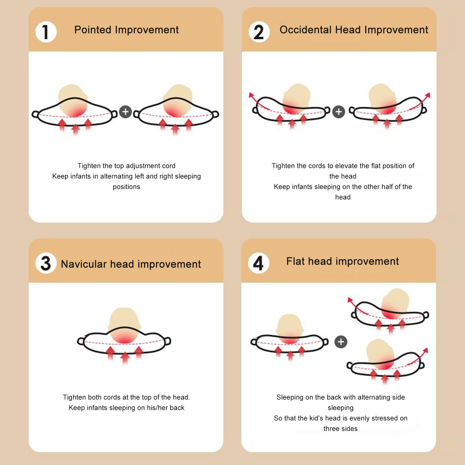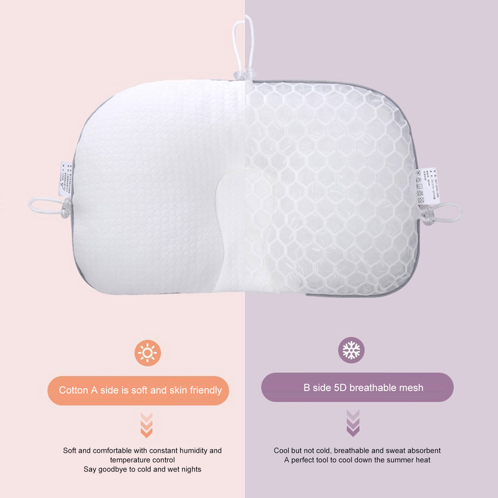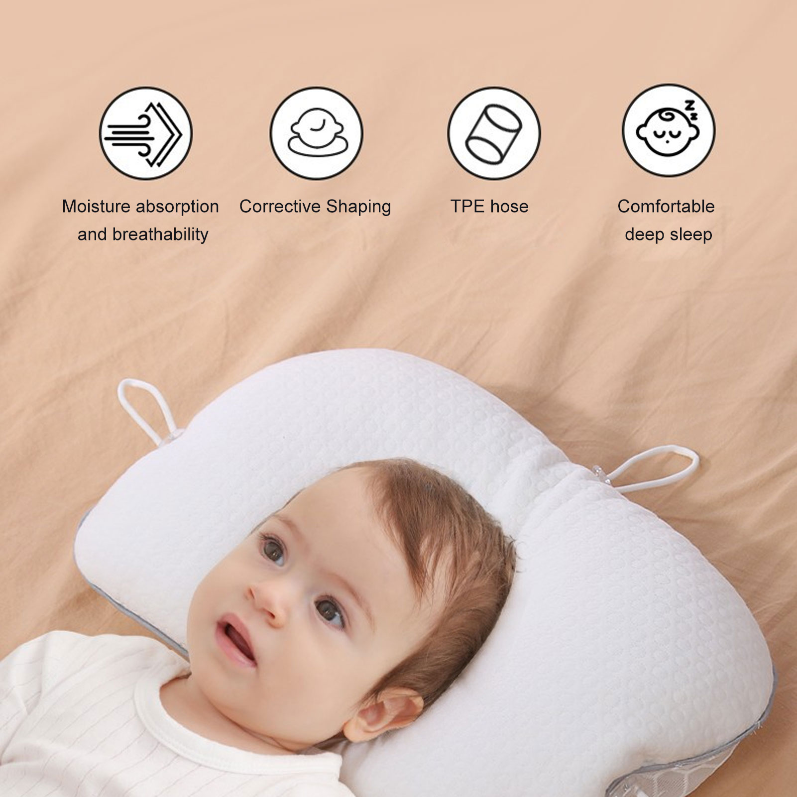 1、Suitable for All Seasons: Whether it's spring, summer, fall or winter, infant pillows are able to give your kids the best sleep environment to ensure their head development and health. 2、Professional Design: Toddler pillow is engineered to provide optimal head support and alignment for your infants, effectively preventing and minimizing deviated head shape. 3、Multifunctional: In addition to head shaping and straightening, the infant head support pillow can also be used as a cuddle pillow for your infant or as a pillow to meet the needs of different situations. 4、Comfortable Material: Nеwborn infant pillow is made of soft, breathable material to provide a skin friendly feel and a comfortable touch for your infant. 5、Safe and Reliable: Soft infant Pillows have undergone rigorous safety tests and certifications to meet the standards for infant use, without harmful substances, to ensure the health and safety of your infant.