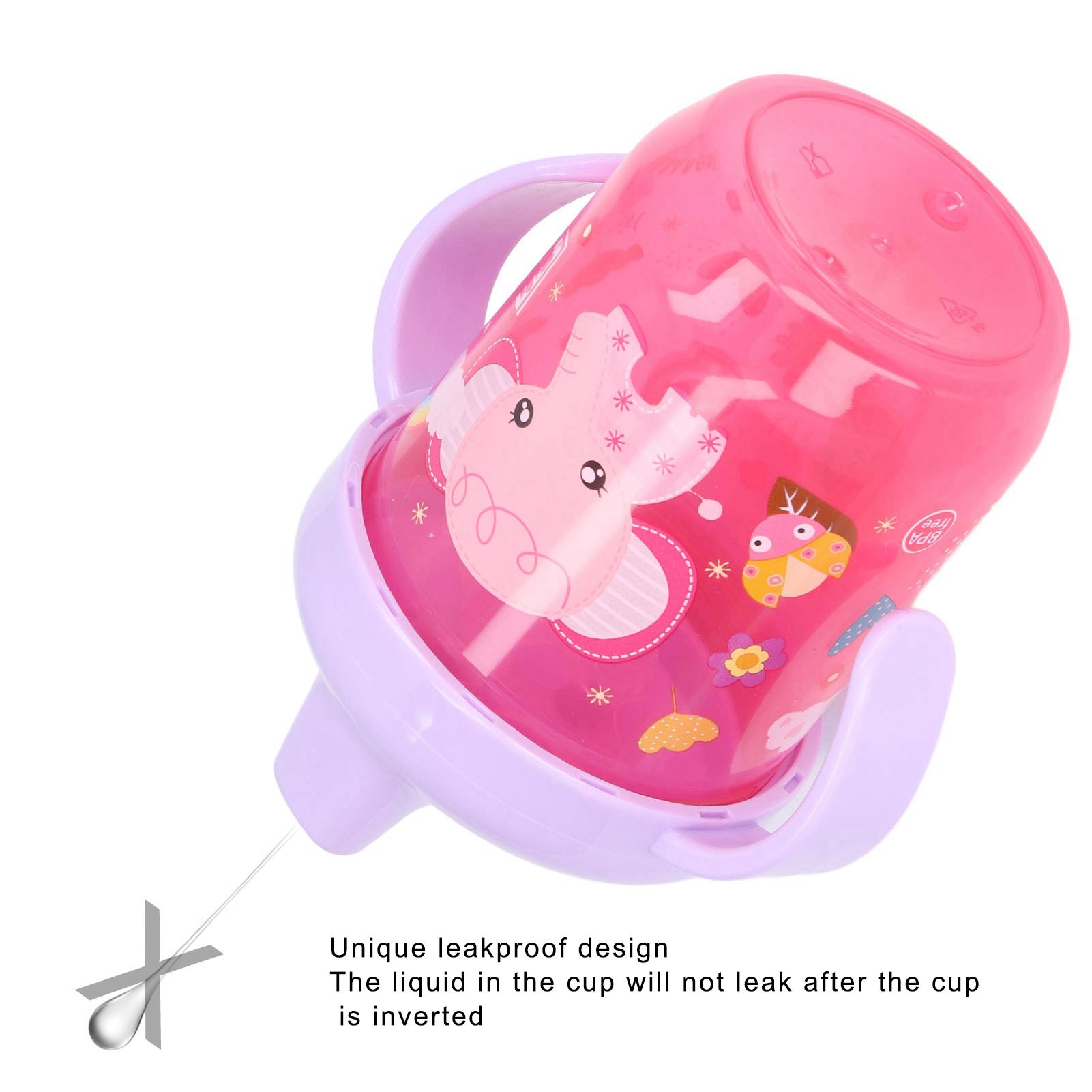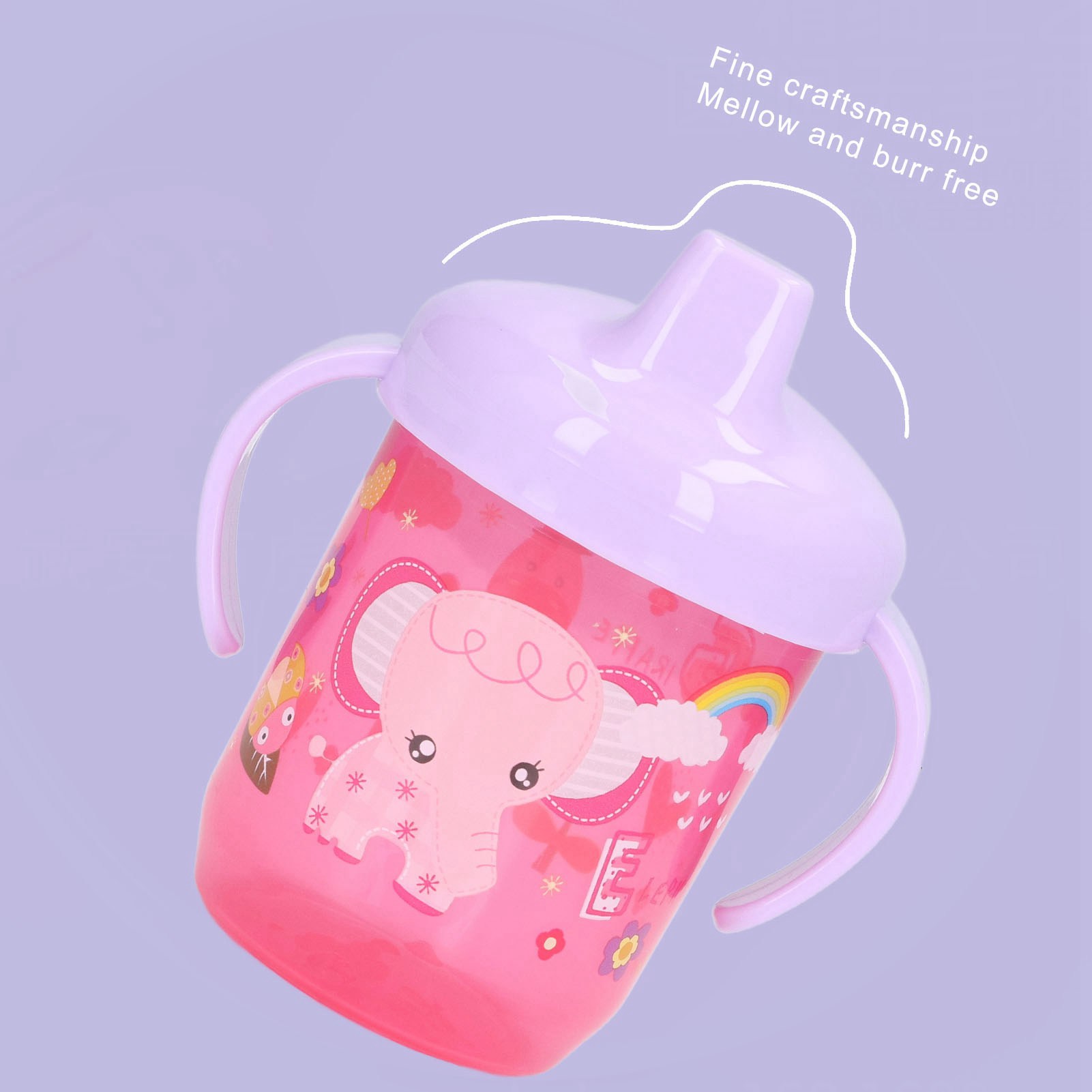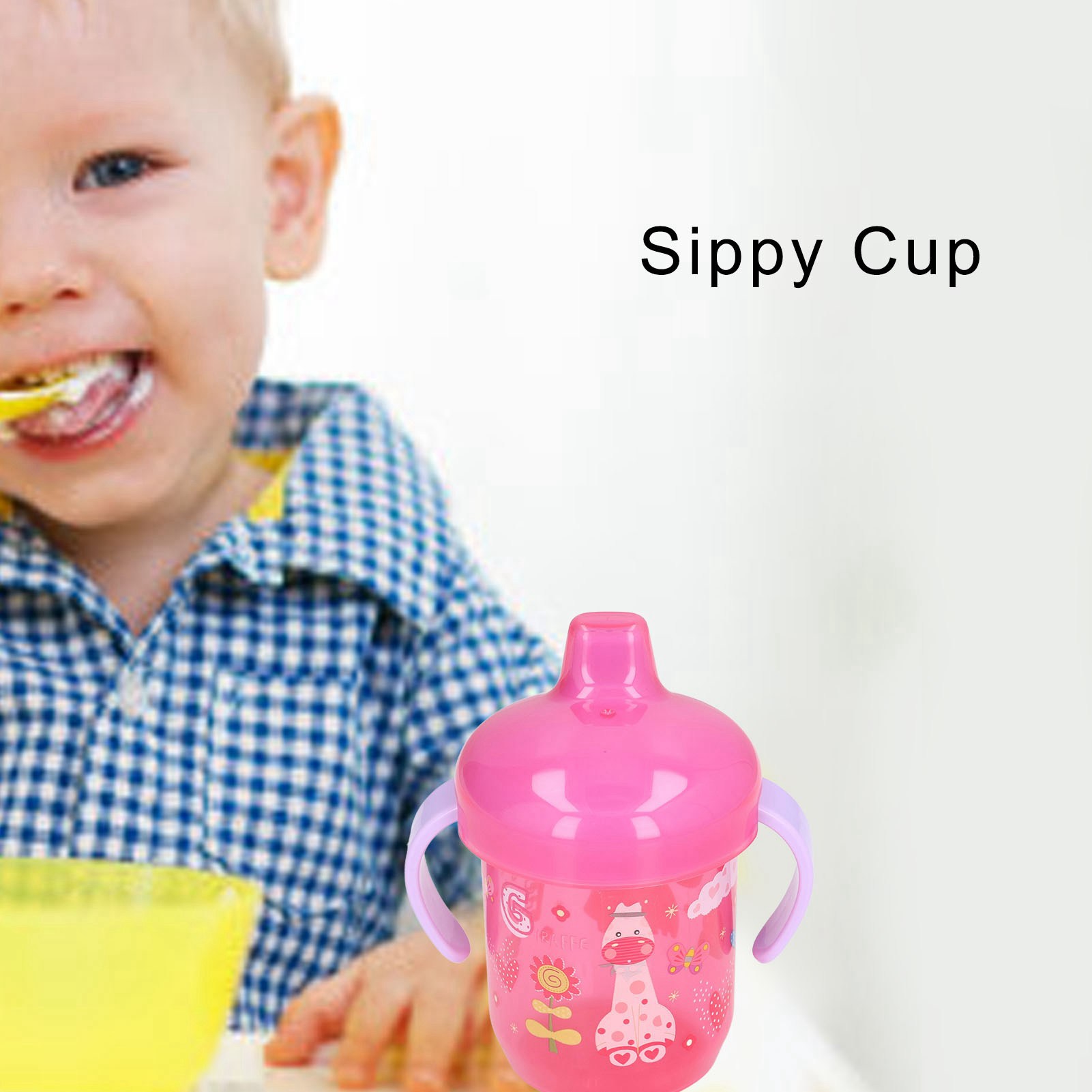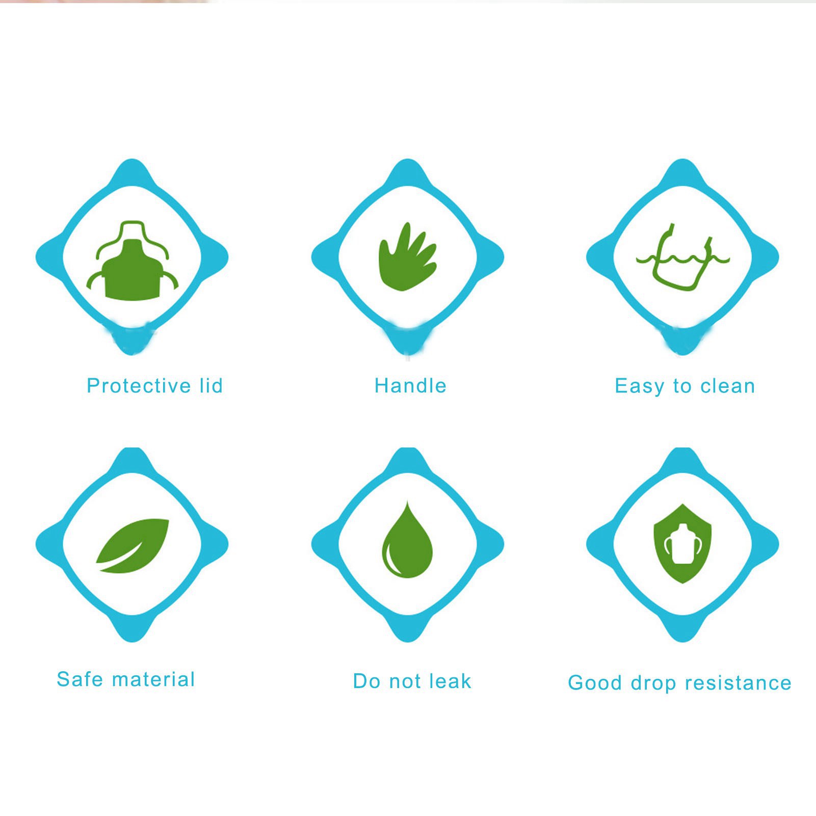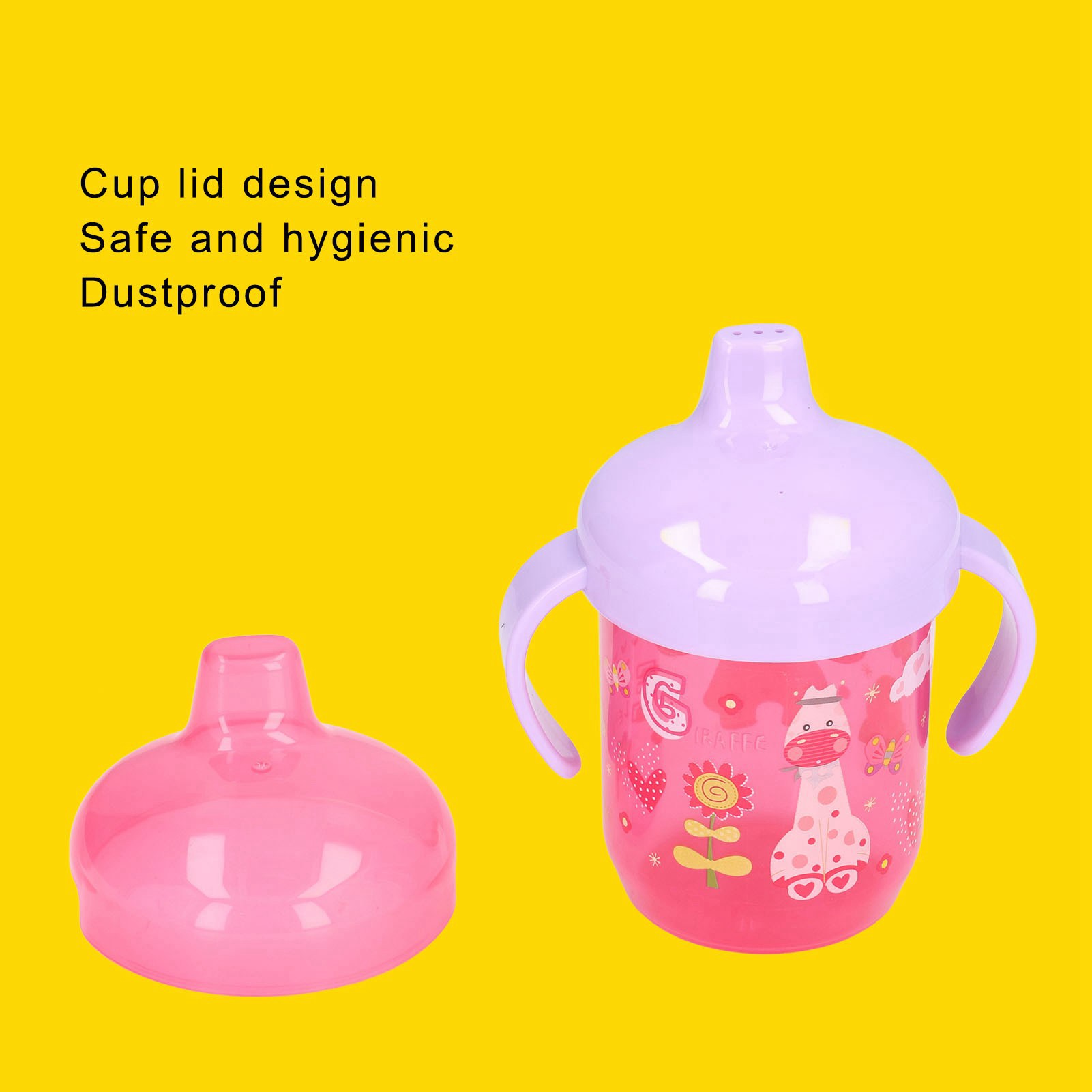 1、Handle Design: Ergonomic training handle, exercise small hand grasping ability, baby can hold cup and drink independently. Mellow and burr free, safe to use. 2、Unique Leakproof Design: The liquid in the cup will not leak after the cup is inverted. Cup lid design, safe and hygienic, dustproof, good protection. 3、Wide Mouth Design: Easy to disassemble and clean. Support a variety of cleaning methods, hot water cleaning, steam cleaning or dishwasher cleaning. 4、Warm Prompt: Prohibit microwave heating, suitable for fruit juices drinks and milk, the temperature of hot drinks should not exceed 50℃ to avoid burns. 5、PP Material: Sippy cup is made of food grade PP material, safe and eco friendly, BPA free, non toxic, firm and sturdy, anti impact and stable, durable for use.