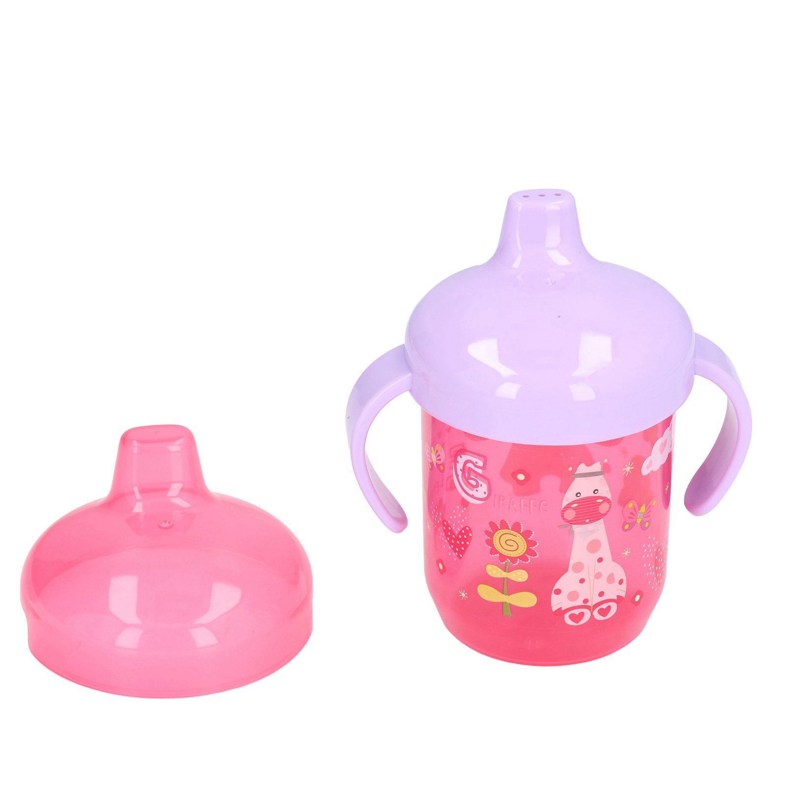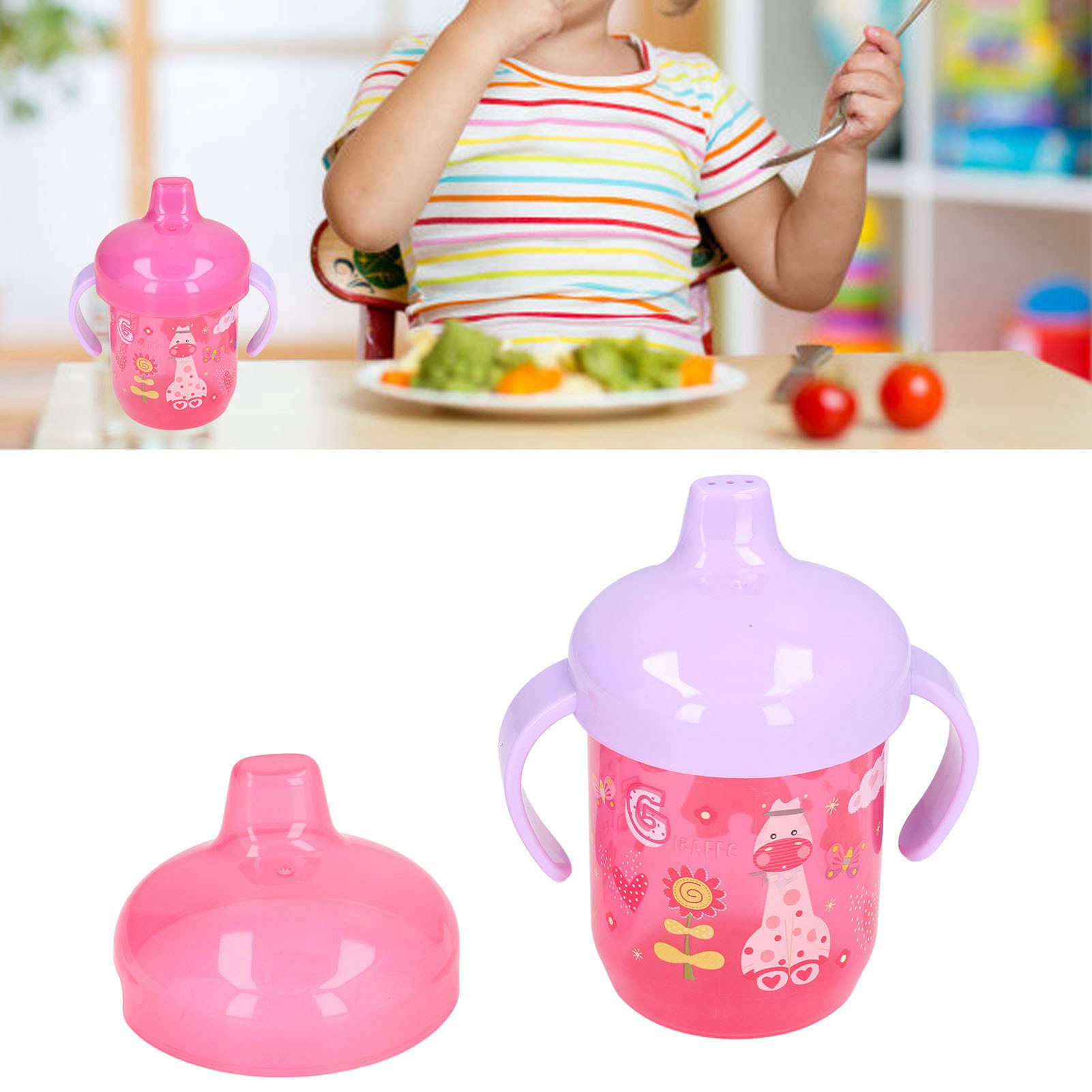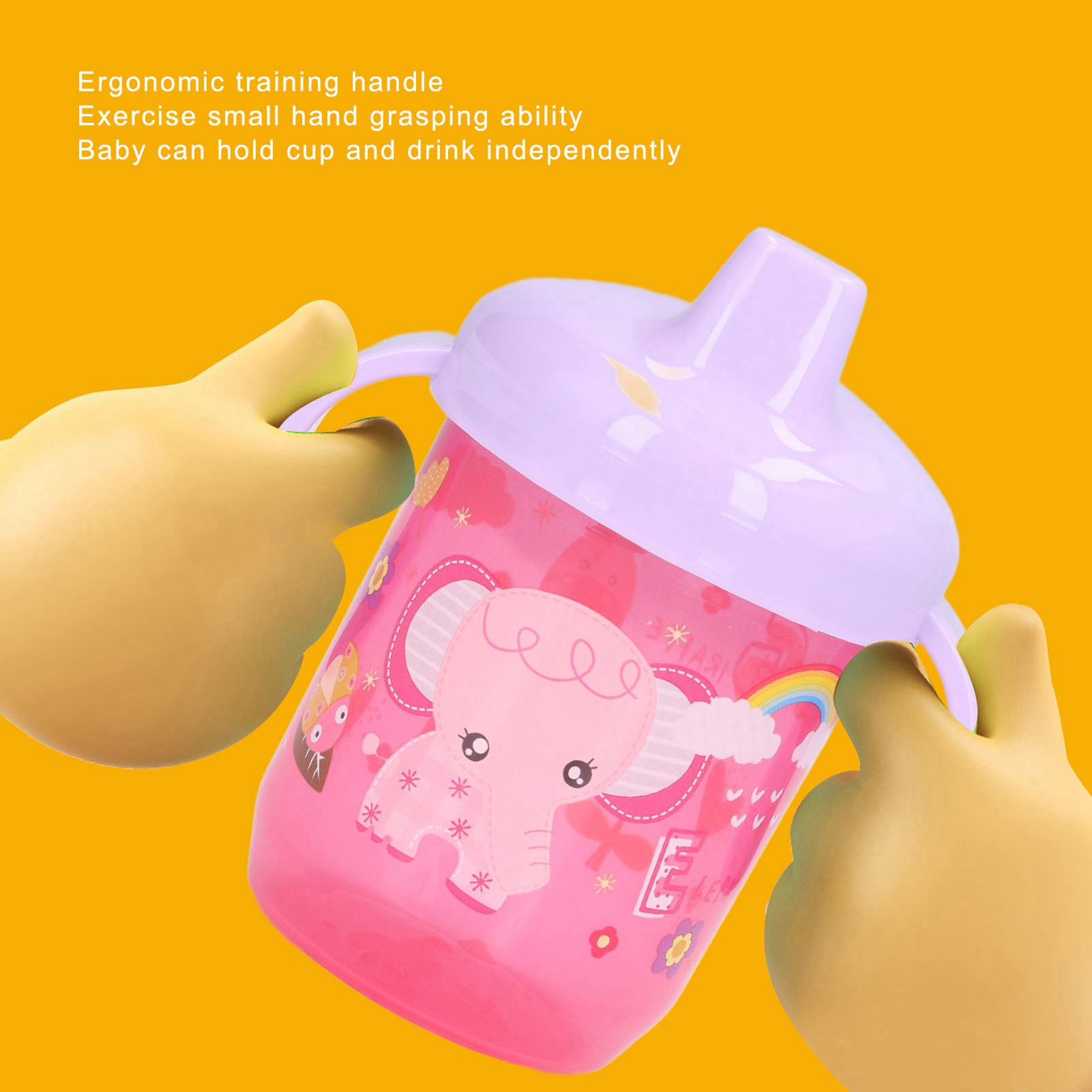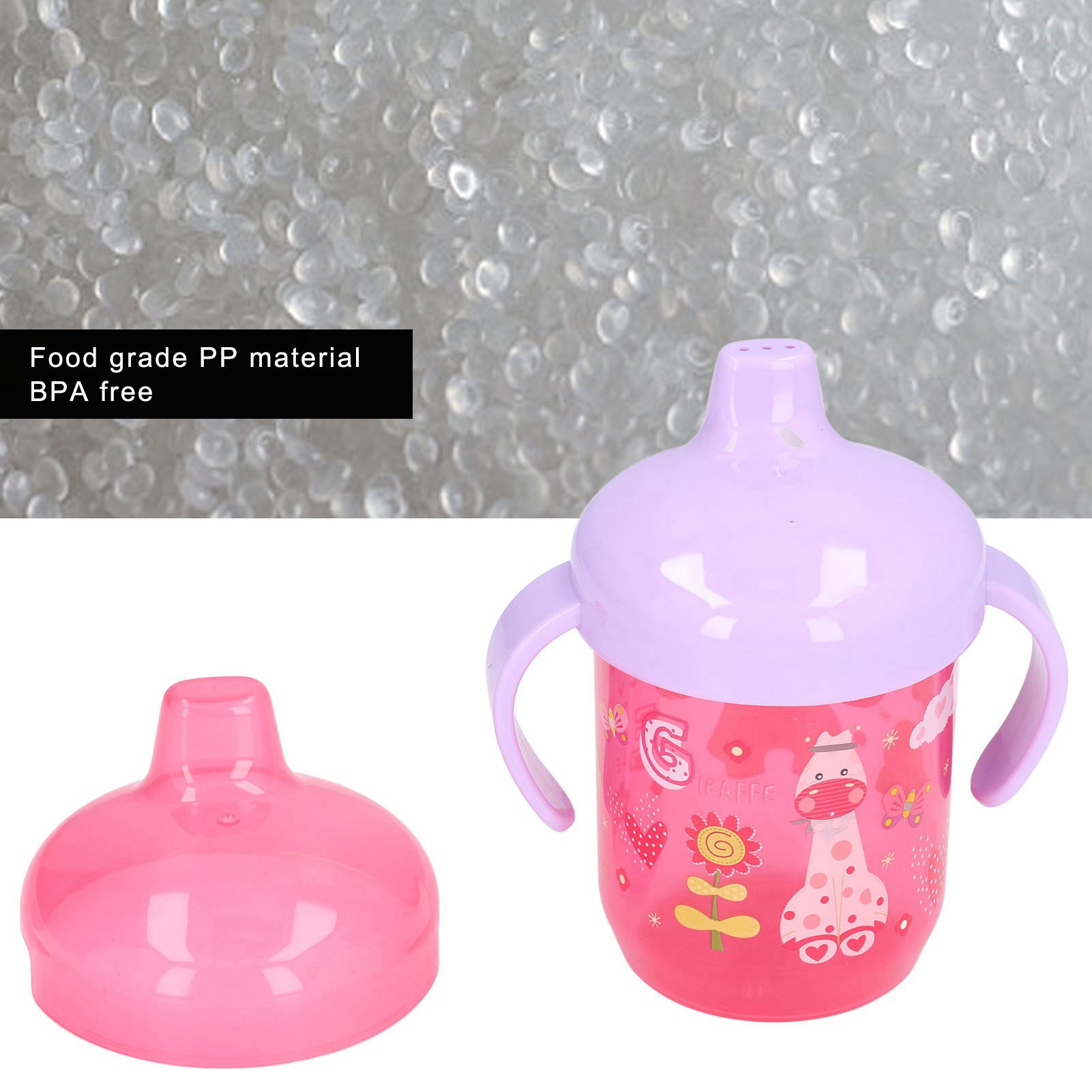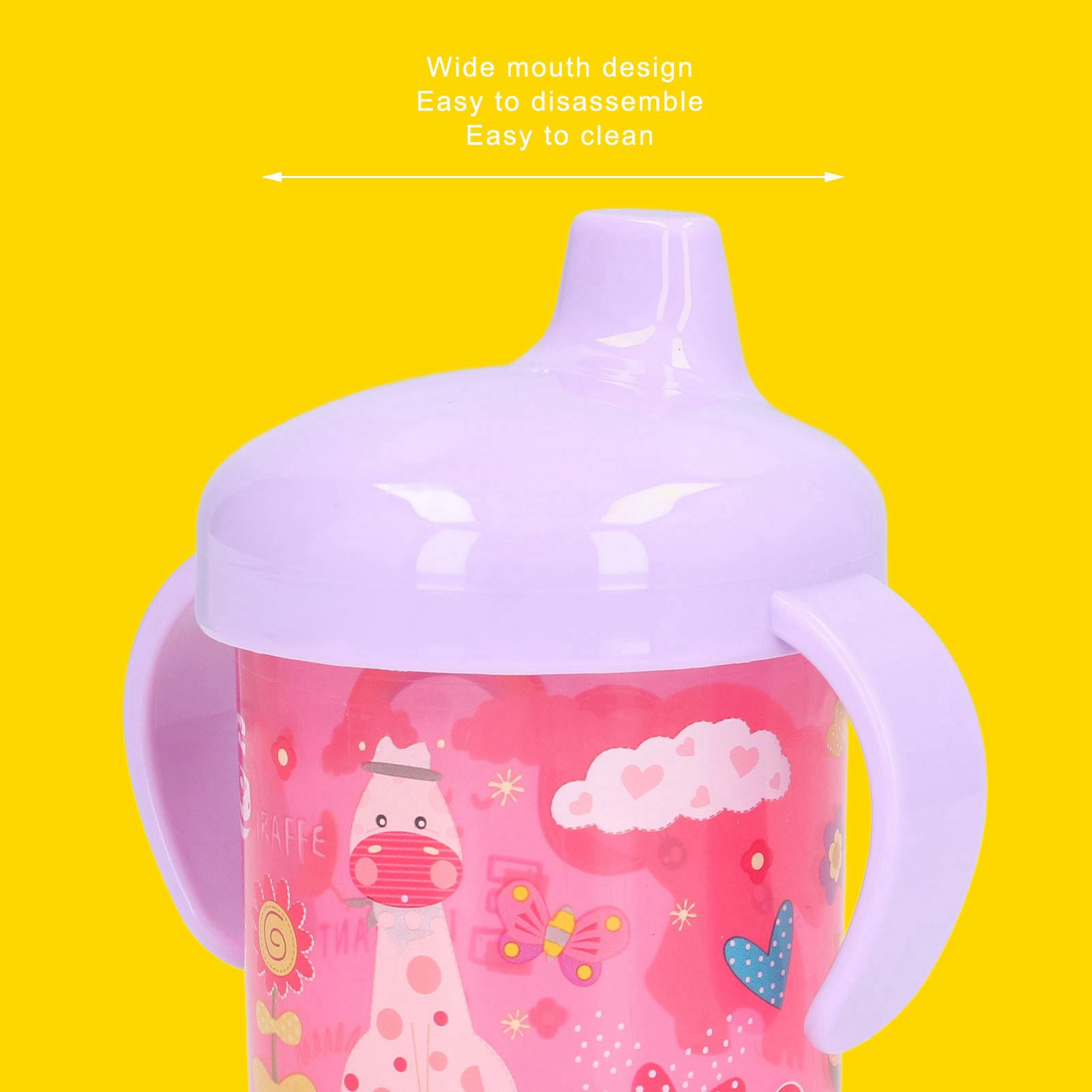 1、Handle Design: Ergonomic training handle, exercise small hand grasping ability, baby can hold cup and drink independently. Mellow and burr free, safe to use. 2、Unique Leakproof Design: The liquid in the cup will not leak after the cup is inverted. Cup lid design, safe and hygienic, dustproof, good protection. 3、Wide Mouth Design: Easy to disassemble and clean. Support a variety of cleaning methods, hot water cleaning, steam cleaning or dishwasher cleaning. 4、Warm Prompt: Prohibit microwave heating, suitable for fruit juices drinks and milk, the temperature of hot drinks should not exceed 50℃ to avoid burns. 5、PP Material: Sippy cup is made of food grade PP material, safe and eco friendly, BPA free, non toxic, firm and sturdy, anti impact and stable, durable for use.