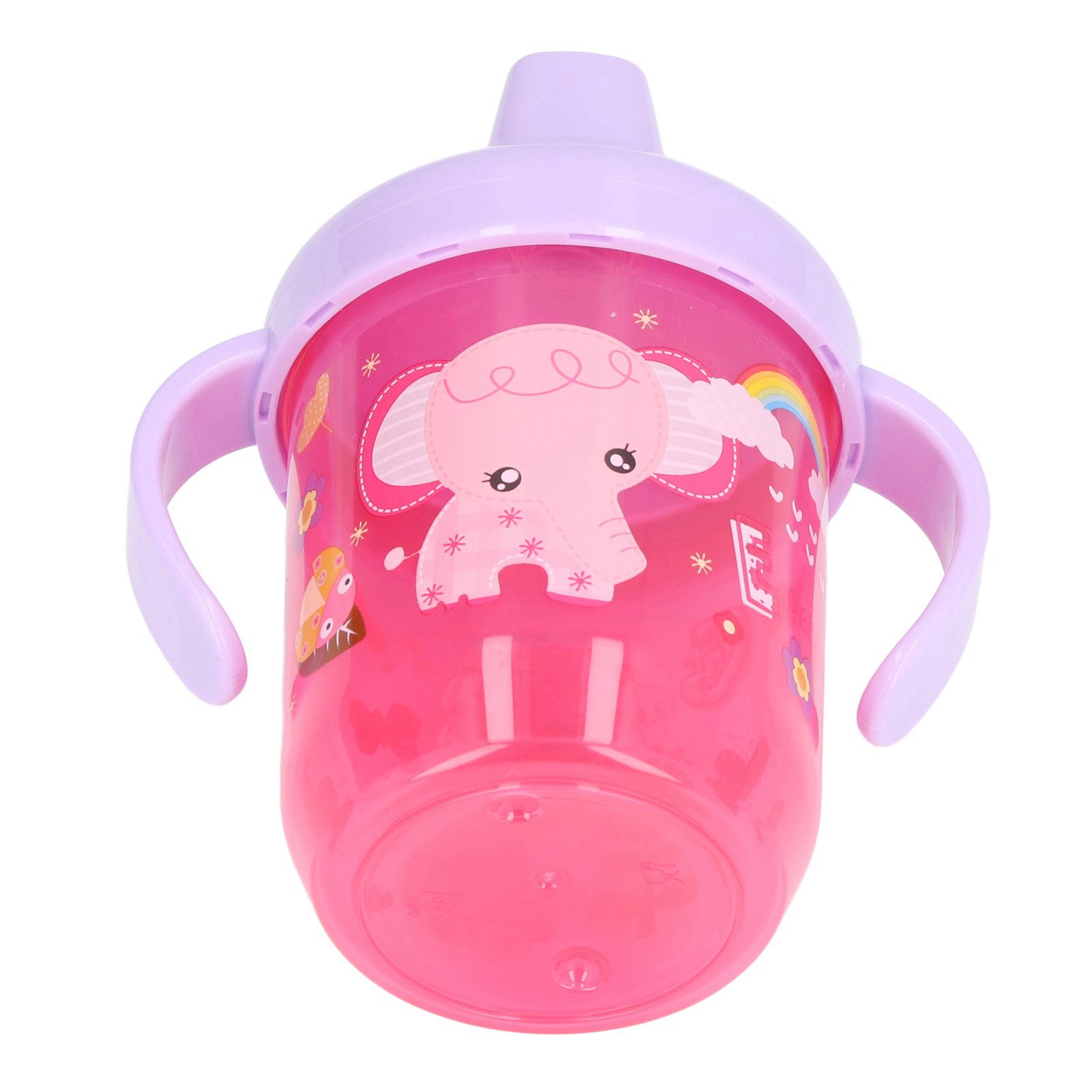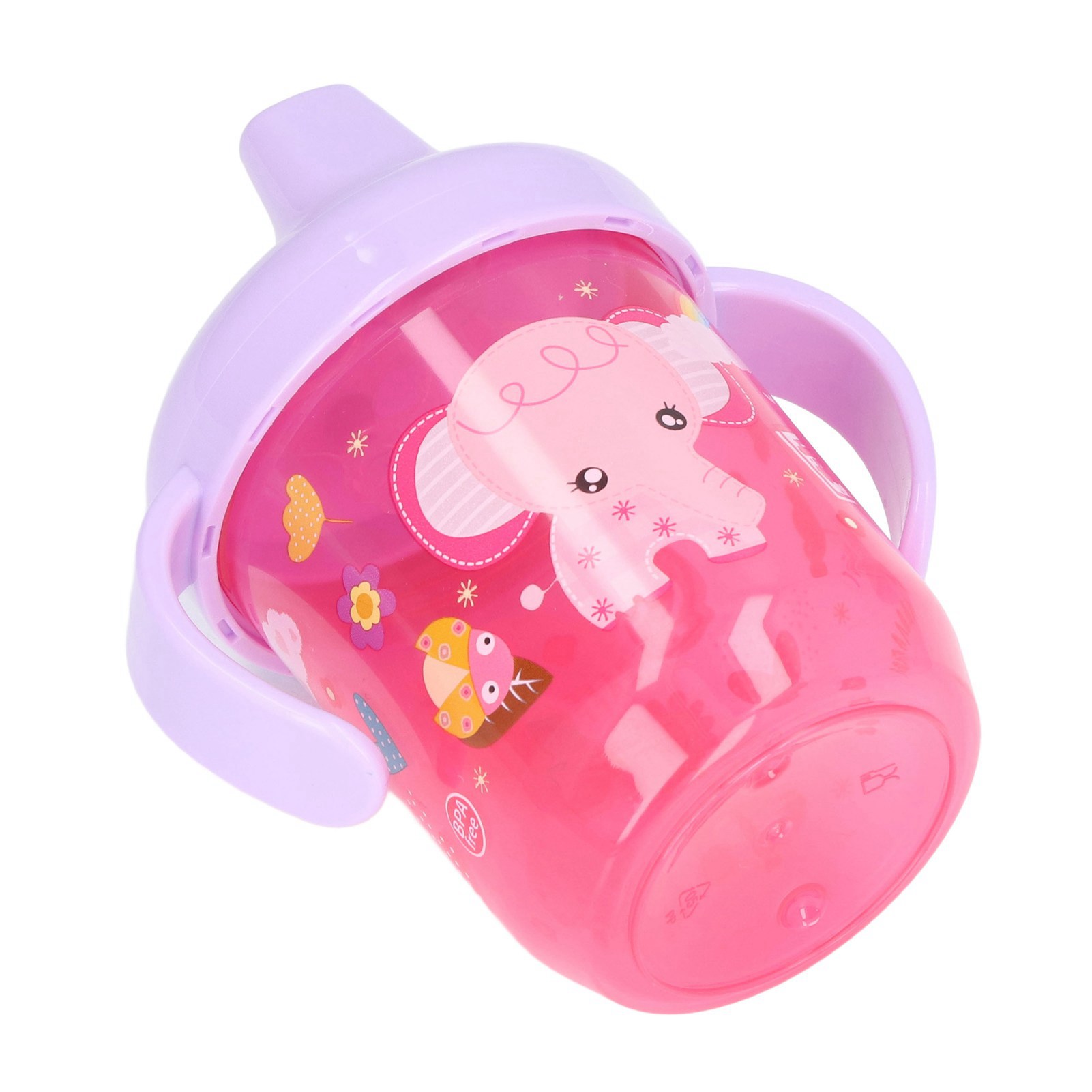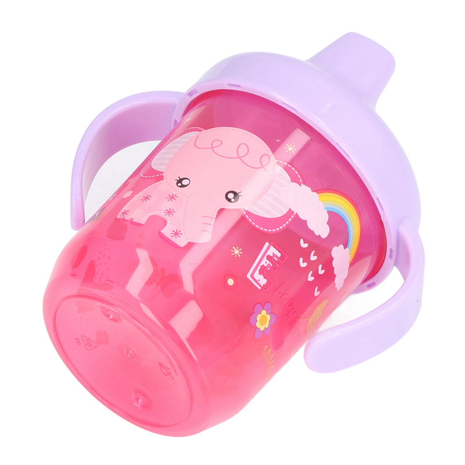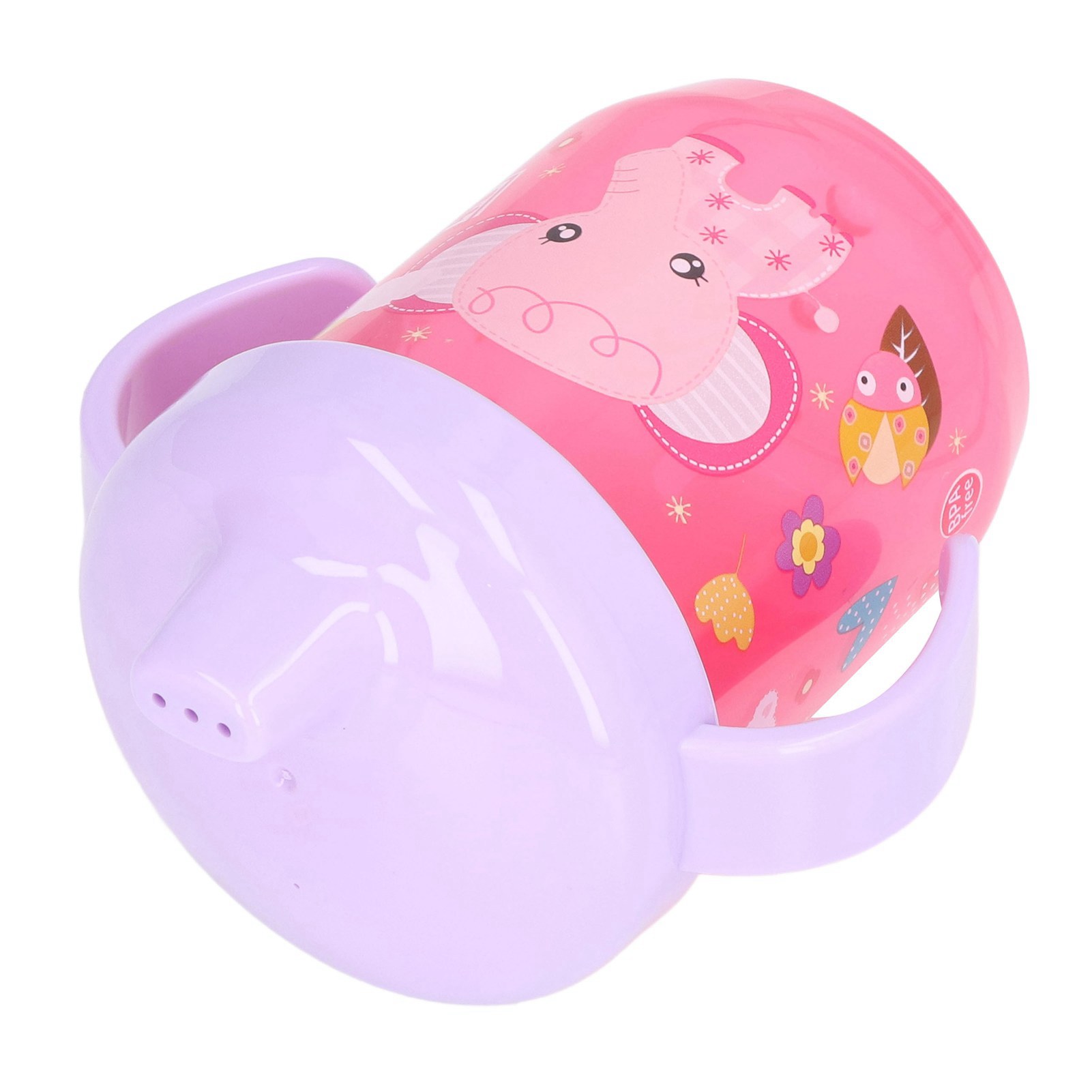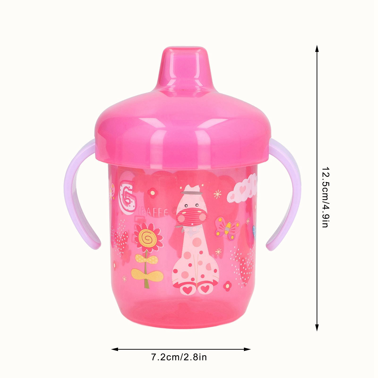 Infant Sippy Cup Portable Cartoon Animal Pattern Baby Spill Proof Trainer Cup Birthday Gift 260ml Rose Red