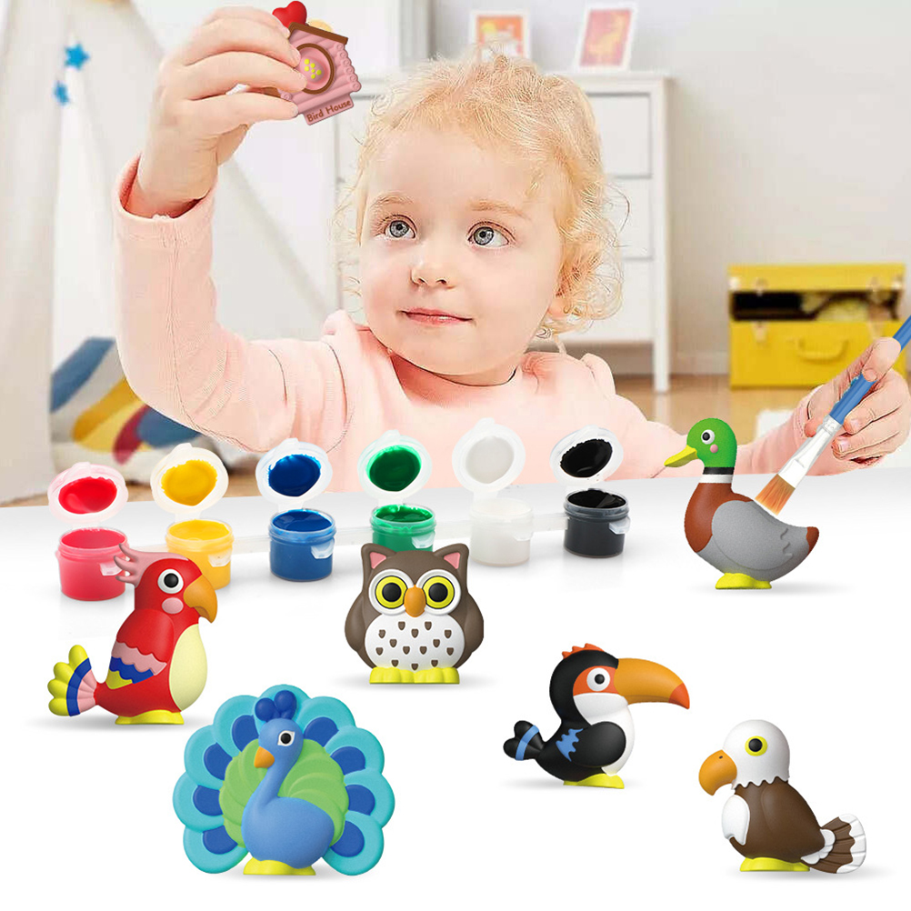 1、1. Creative craft kit: Includes 7 figurines, 6 paint cans, 1 brush, and instructions on how to mix colors. Get creative with any color you like and color the shapes you like. 2、2. Safe and non-toxic: Children's safety is the number one priority, made with non-toxic materials to ensure that children can enjoy fun activities without worry. Great for children over 3 years old. 3、3. Fun and educational: Wood painting provides fun and entertainment for your kids. Drawing is the best way for children to use their imagination, creativity, and self-confidence. 4、4. Lots of fun: Boys and girls can explore color mixing by drawing their own owls, peacocks, and cars, or telling stories using these characters. It's the ideal craft for keeping kids busy and happy. 5、5. Great gift for kids: Art activities are important to promote learning and help kids explore their world and express themselves. Develop your child's creative thinking and imagination through hands-on craft activities while learning color combinations. Great for party events and take-home gifts.