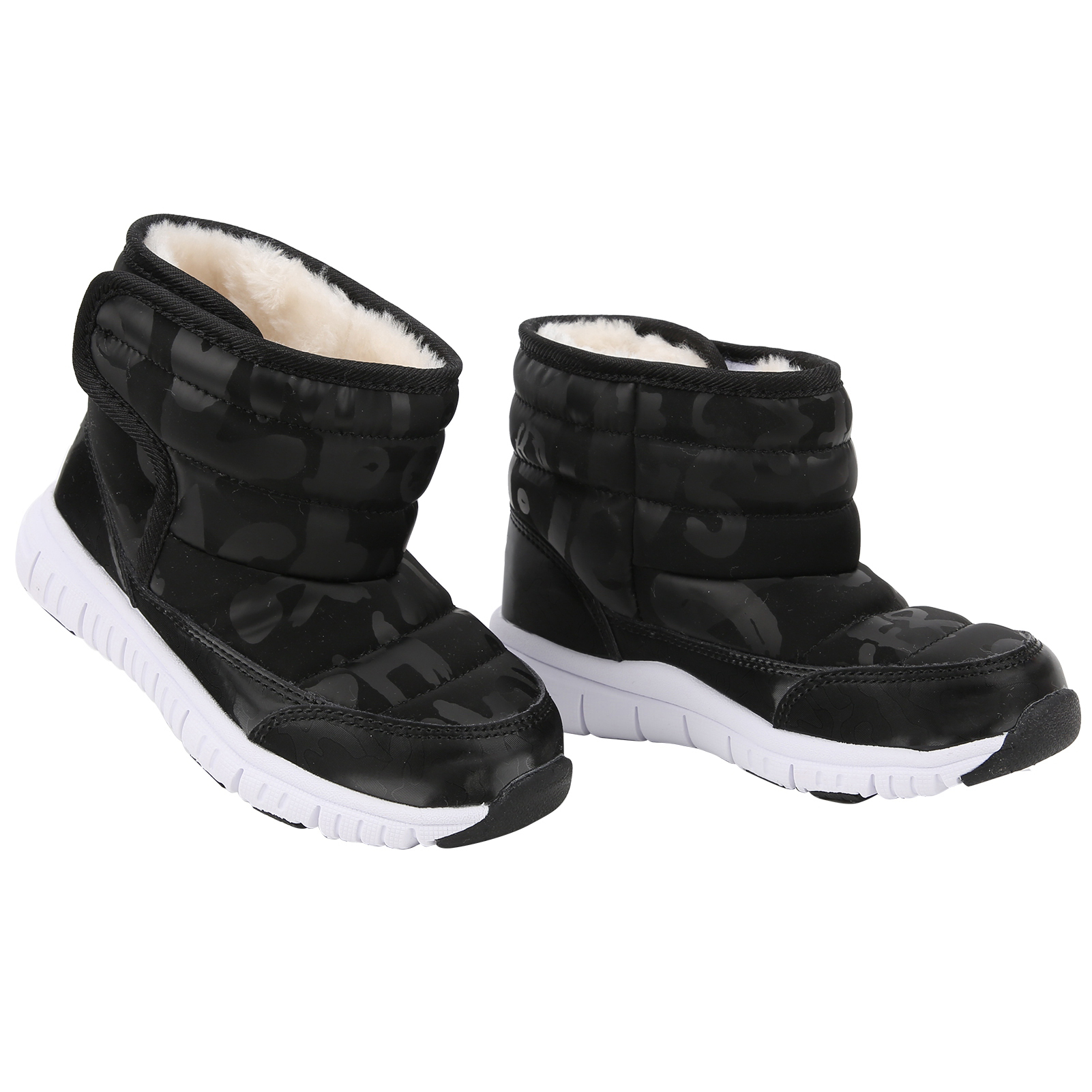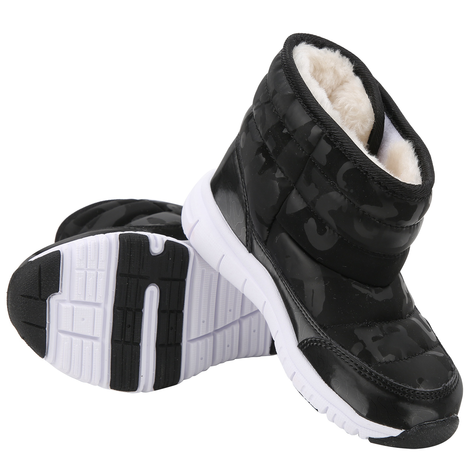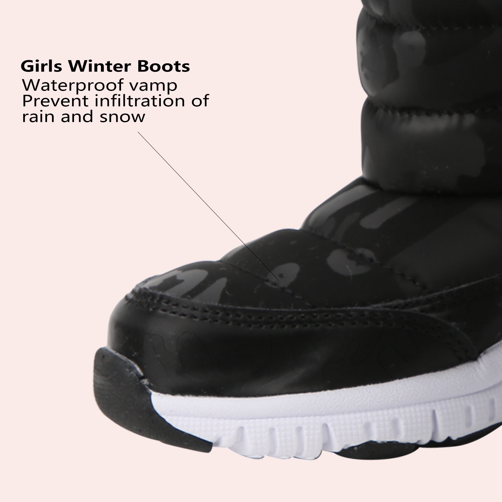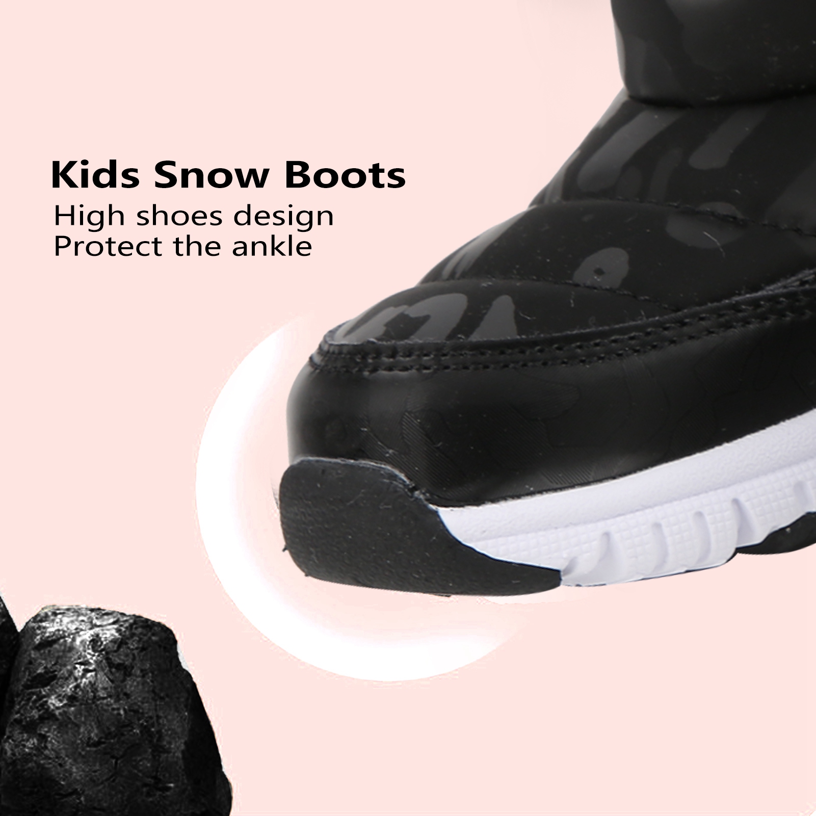 1、With a bump texture and soft non slip rubber sole design for improved grip and wear resistance. 2、The waterproof vamp is designed to easily prevent infiltration of rain and snow. 3、Thick interior is always keep foot warm and very suitable to wear in cold winter. 4、We recommended that to buy a larger size of this winter shoes for comfortable wearing. 5、Beautiful and stylish appearance will keep your kids warm and match all your children's winter clothes.