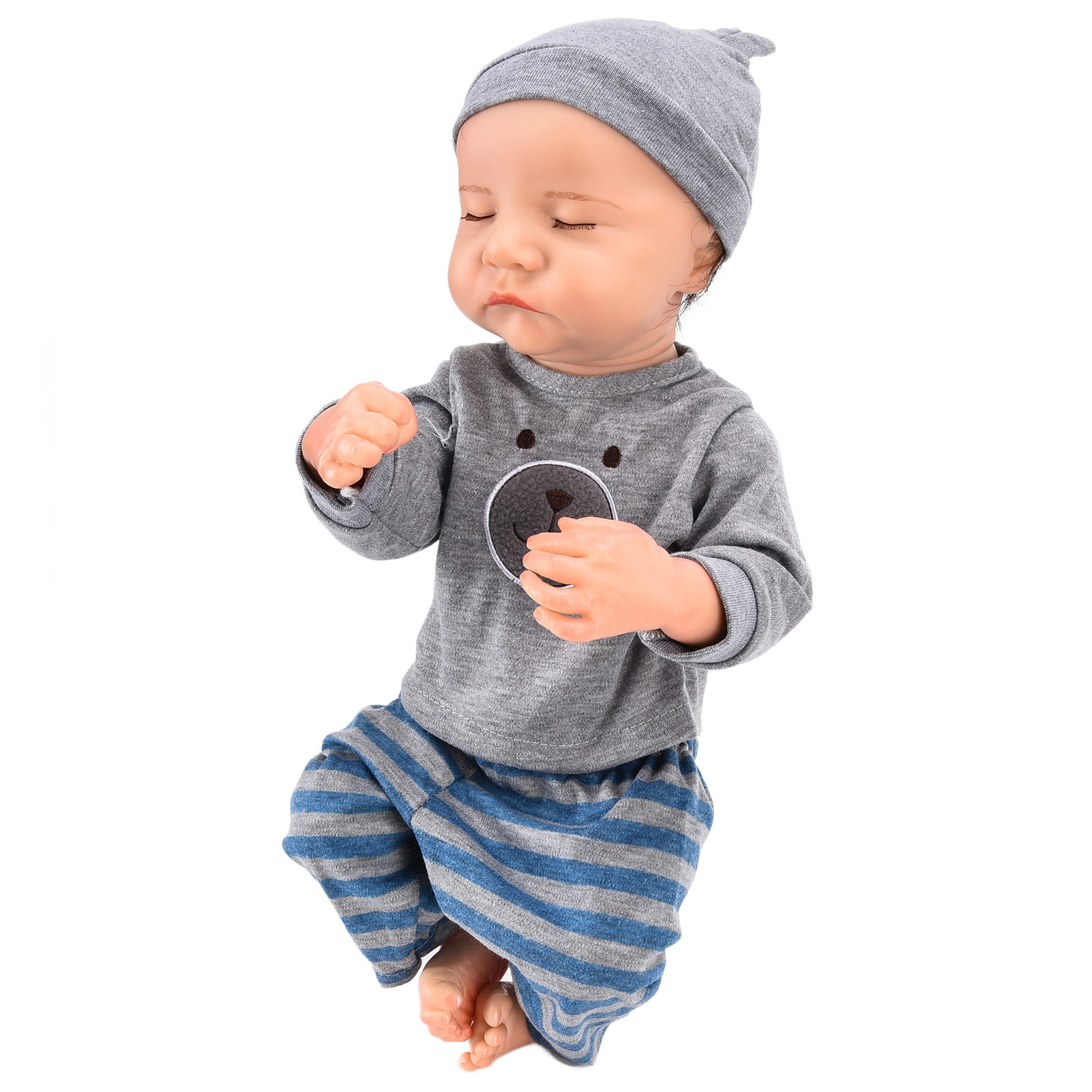 Lifelike Newborn Baby Boy Doll Realistic Full Vinly Body Sleeping Baby Doll with Clothes for Kids 18 Inches