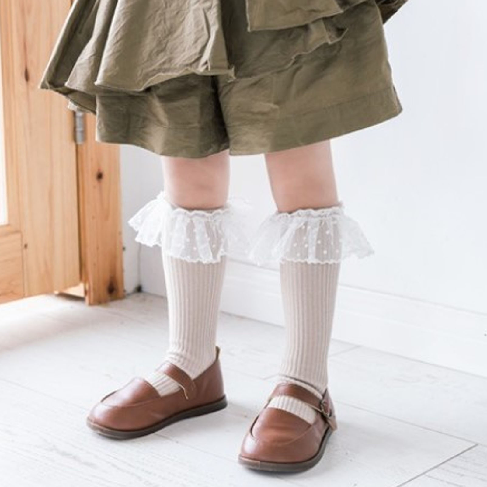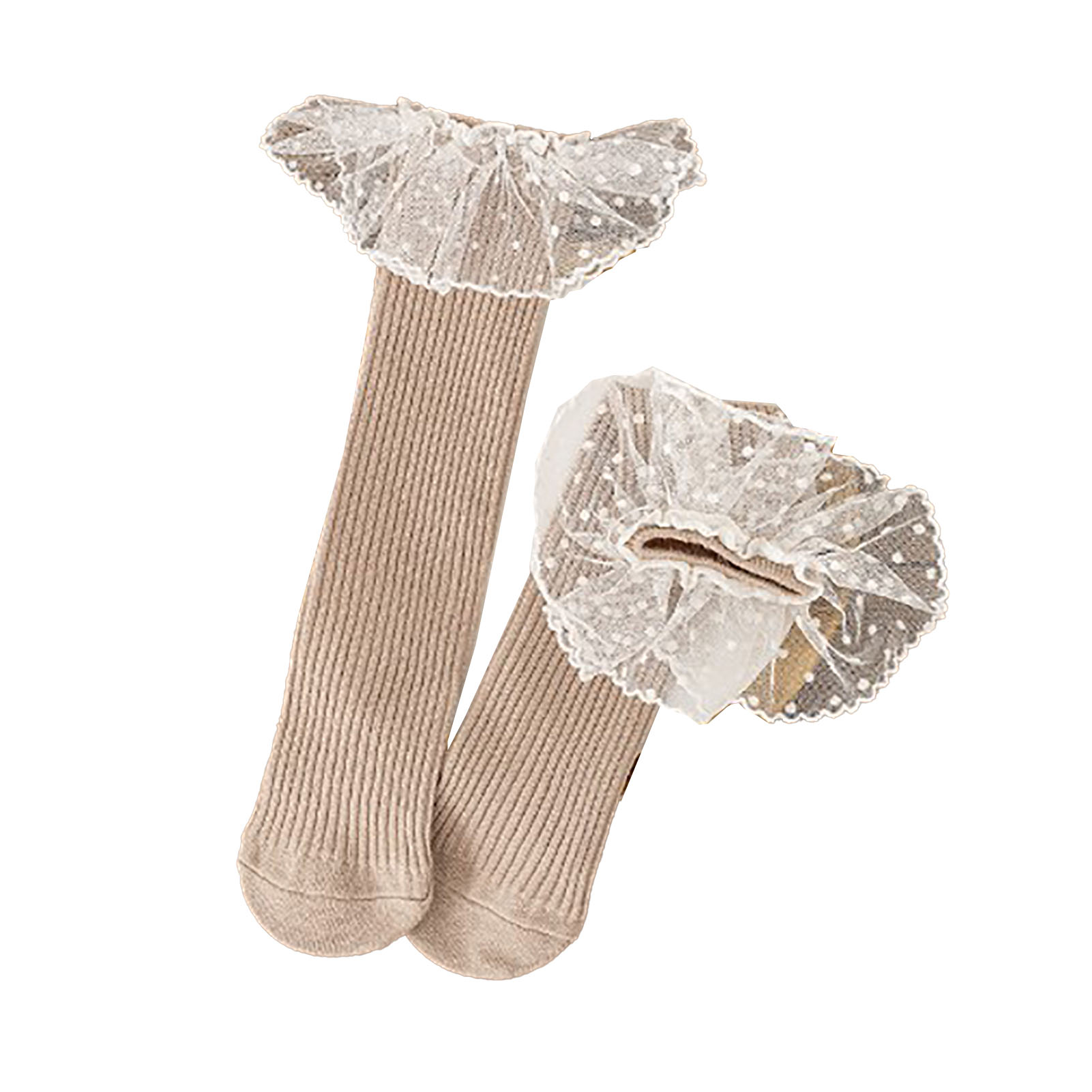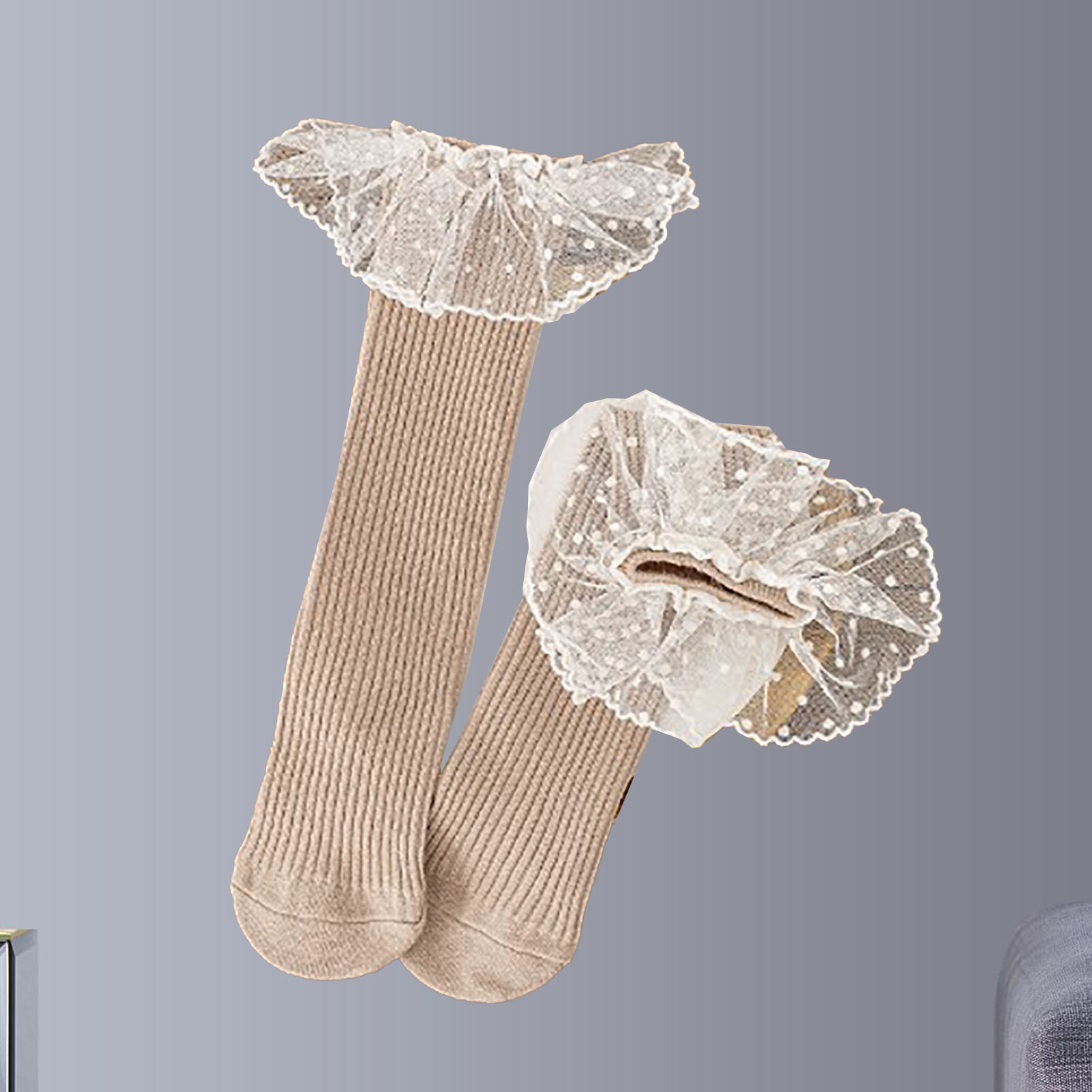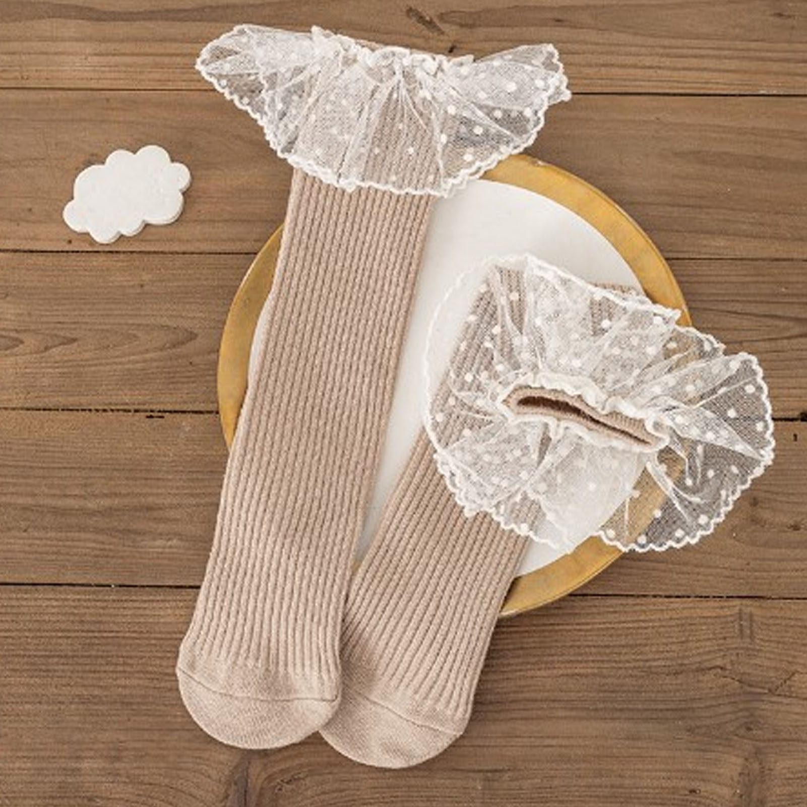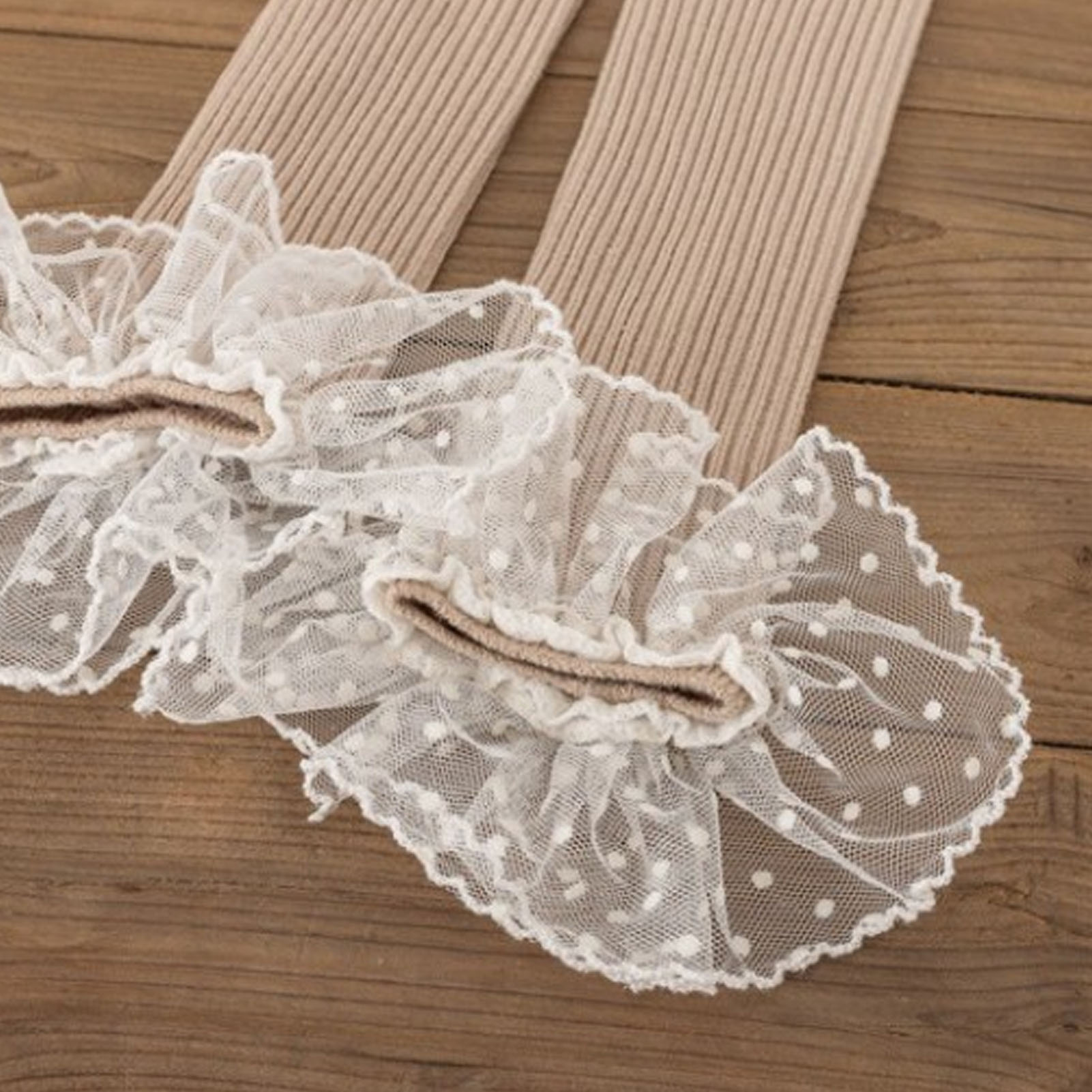 1、Lace Decor: Girls knee high socks adopted lace trim design, with dot patterns, stylish and special, which can add charming to you. 2、Over Knee Length: Girls lace long socks adopted above knee length, stylish and warm, which is very suitable for autumn wear. 3、Sweet Style: Girls lace knee high socks suitable for little girls, cute and beautiful, which can make them more sweet and adorable. 4、Widely Wear: Girls lace socks adopted khaki color design, suitable for various clothes, which is available for outdoor or home wear. 5、Excellent Cotton: Socks made of combed cotton material, soft and skin friendly, which is comfortable and breathable for you to wear.