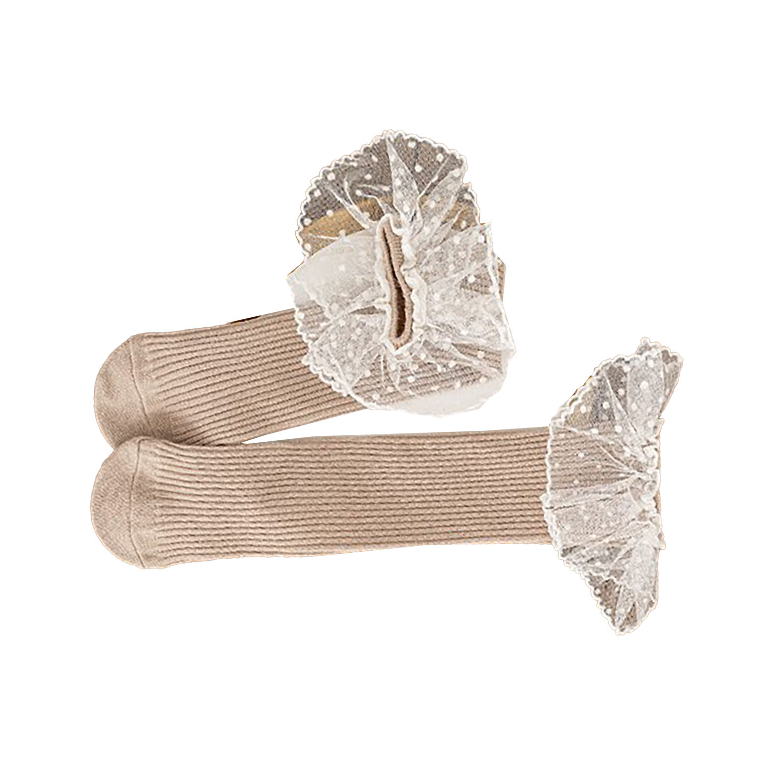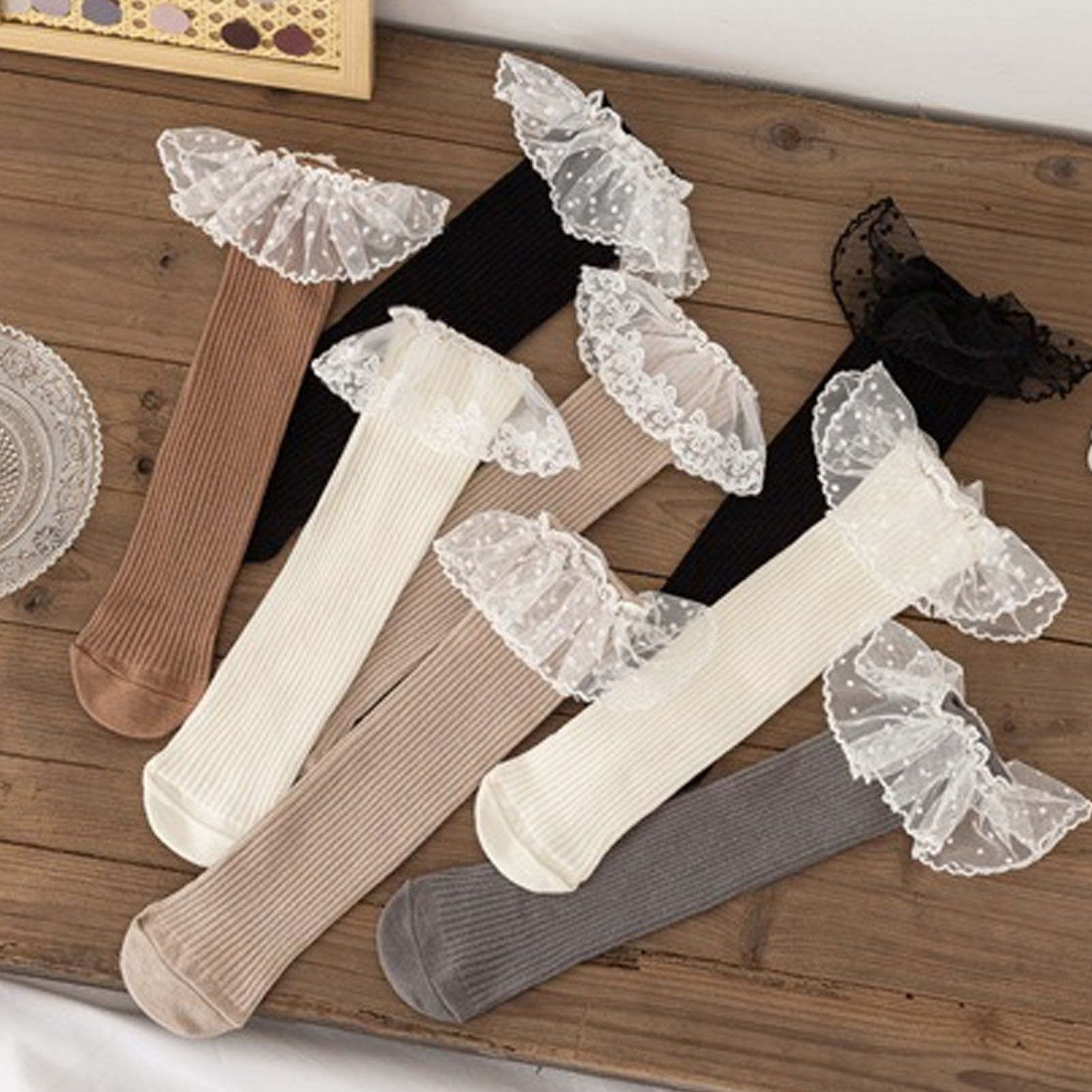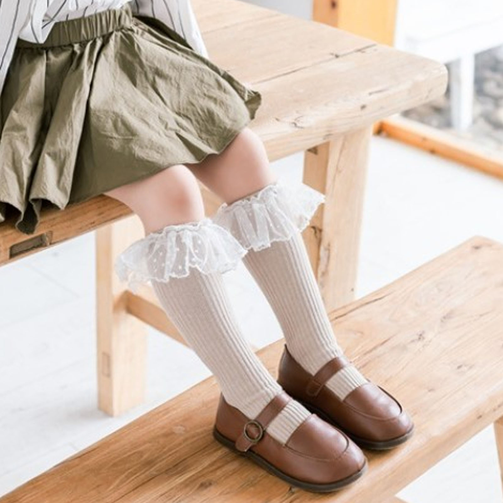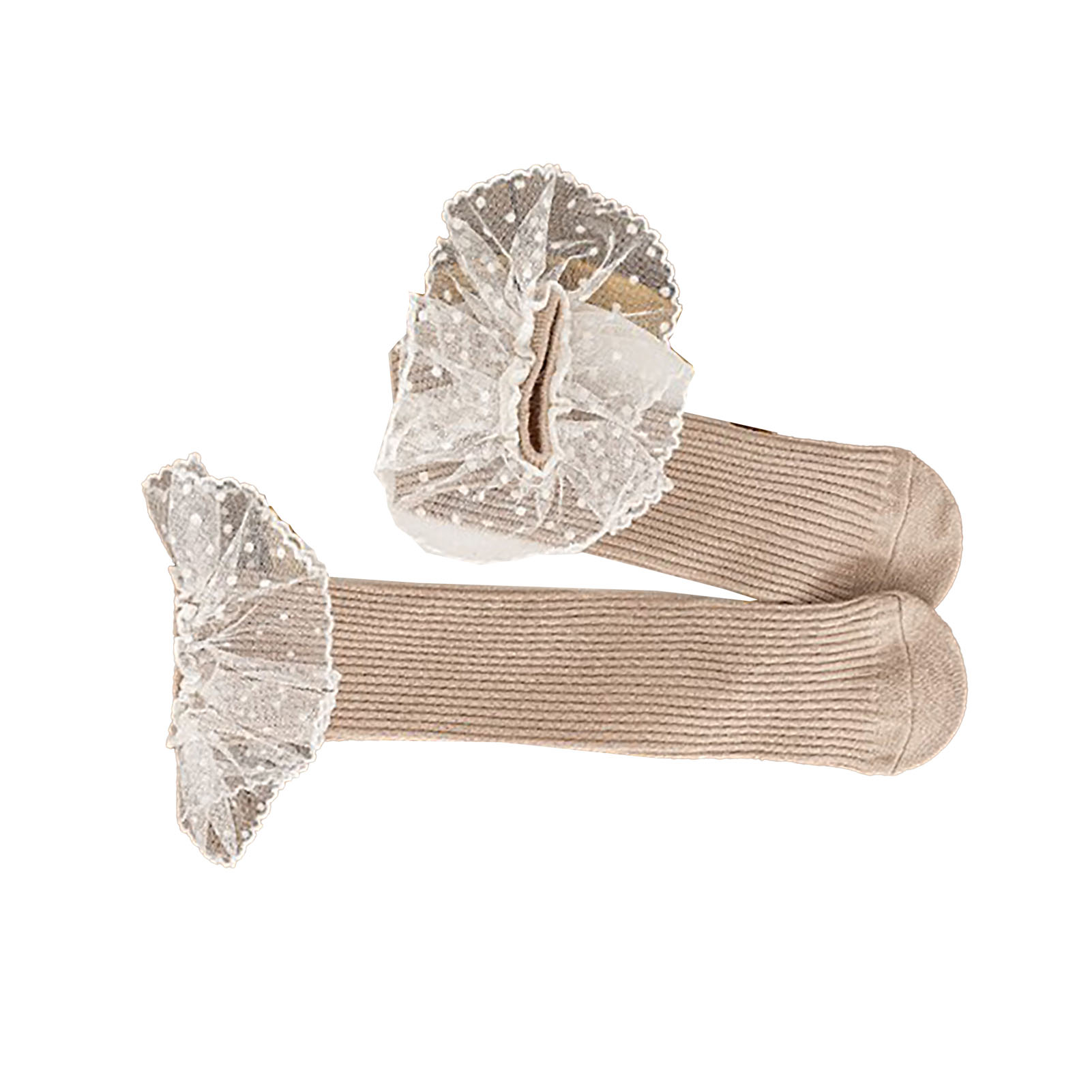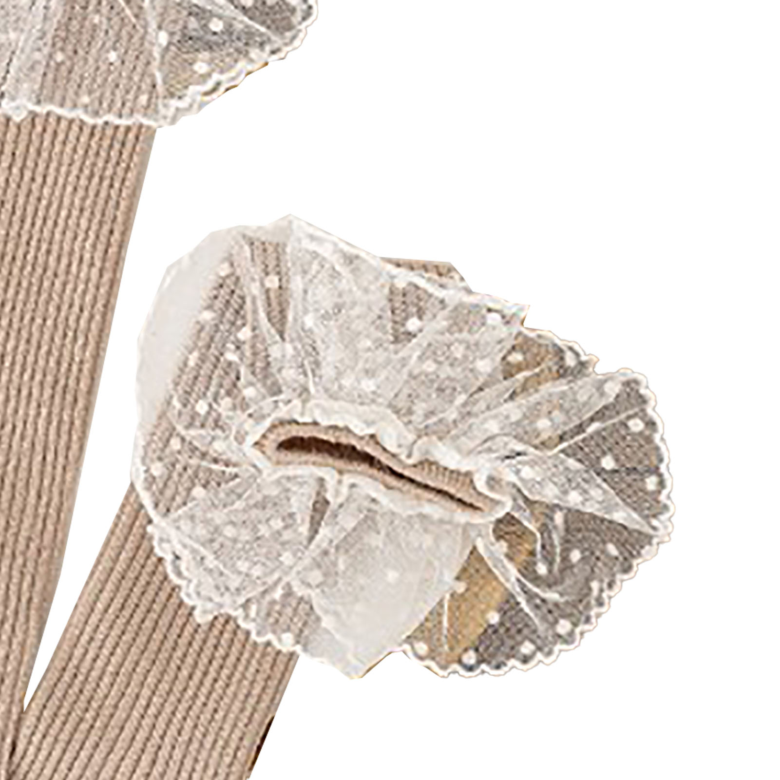 1、Lace Decor: Girls knee high socks adopted lace trim design, with dot patterns, stylish and special, which can add charming to you. 2、Over Knee Length: Girls lace long socks adopted above knee length, stylish and warm, which is very suitable for autumn wear. 3、Sweet Style: Girls lace knee high socks suitable for little girls, cute and beautiful, which can make them more sweet and adorable. 4、Widely Wear: Girls lace socks adopted khaki color design, suitable for various clothes, which is available for outdoor or home wear. 5、Excellent Cotton: Socks made of combed cotton material, soft and skin friendly, which is comfortable and breathable for you to wear.