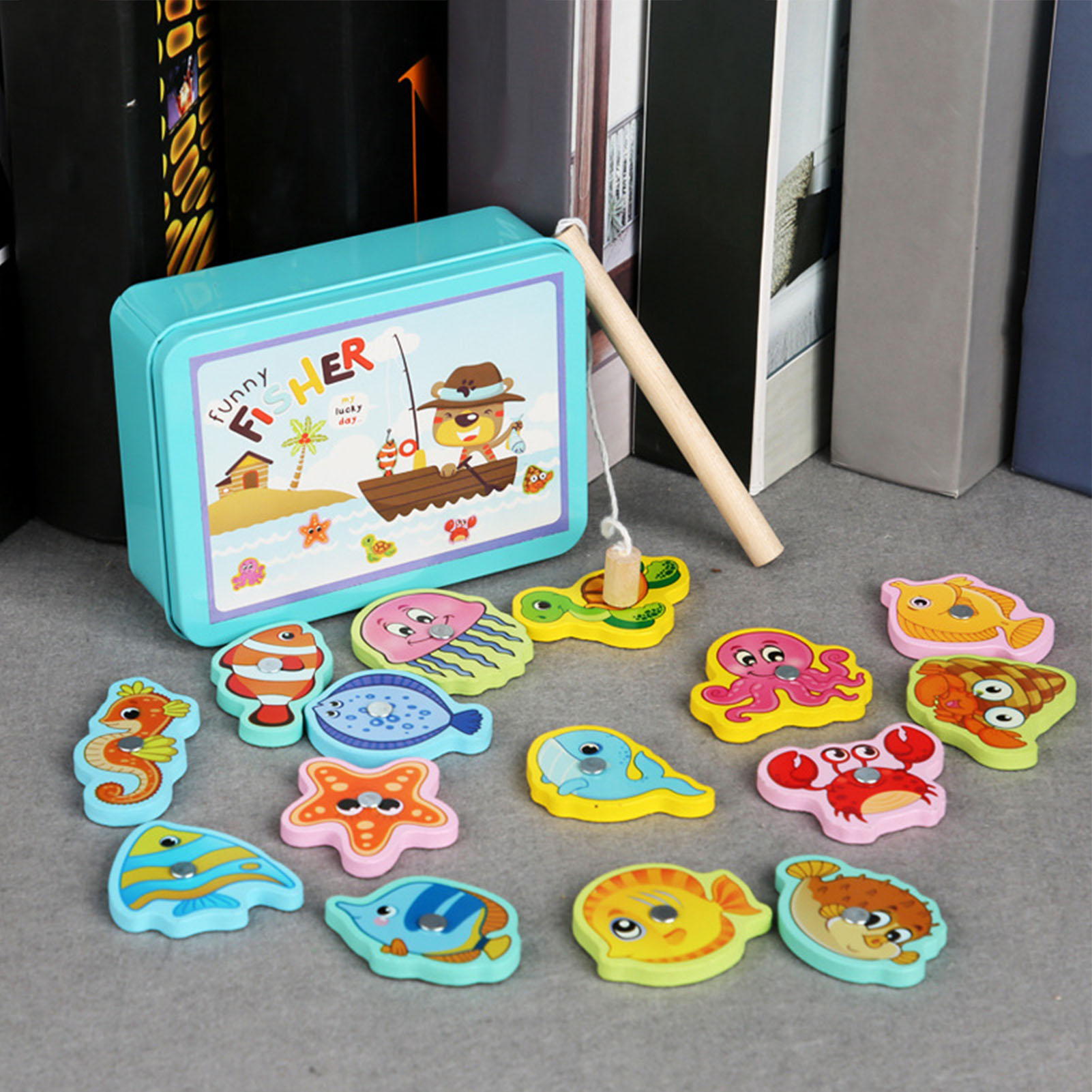 1、Easy Carrying: Comes with a iron box, these fishes are easy to store and carry, convenient for children to play. 2、Marine Animal Cognition: Recognize various marine animals in game playing to improve children's cognitive and recognition abilities. 3、Color Cognition: Bright colors of small fish can improve children's visual ability and cultivate color concept. 4、Strong Magnetic: The toys are made with strong magnet, which can provide children with excellent playing experience. 5、Gifts for People: This fishing game has both interesting design and easy playing method, is an ideal gift for children. They will like it!