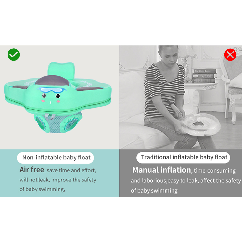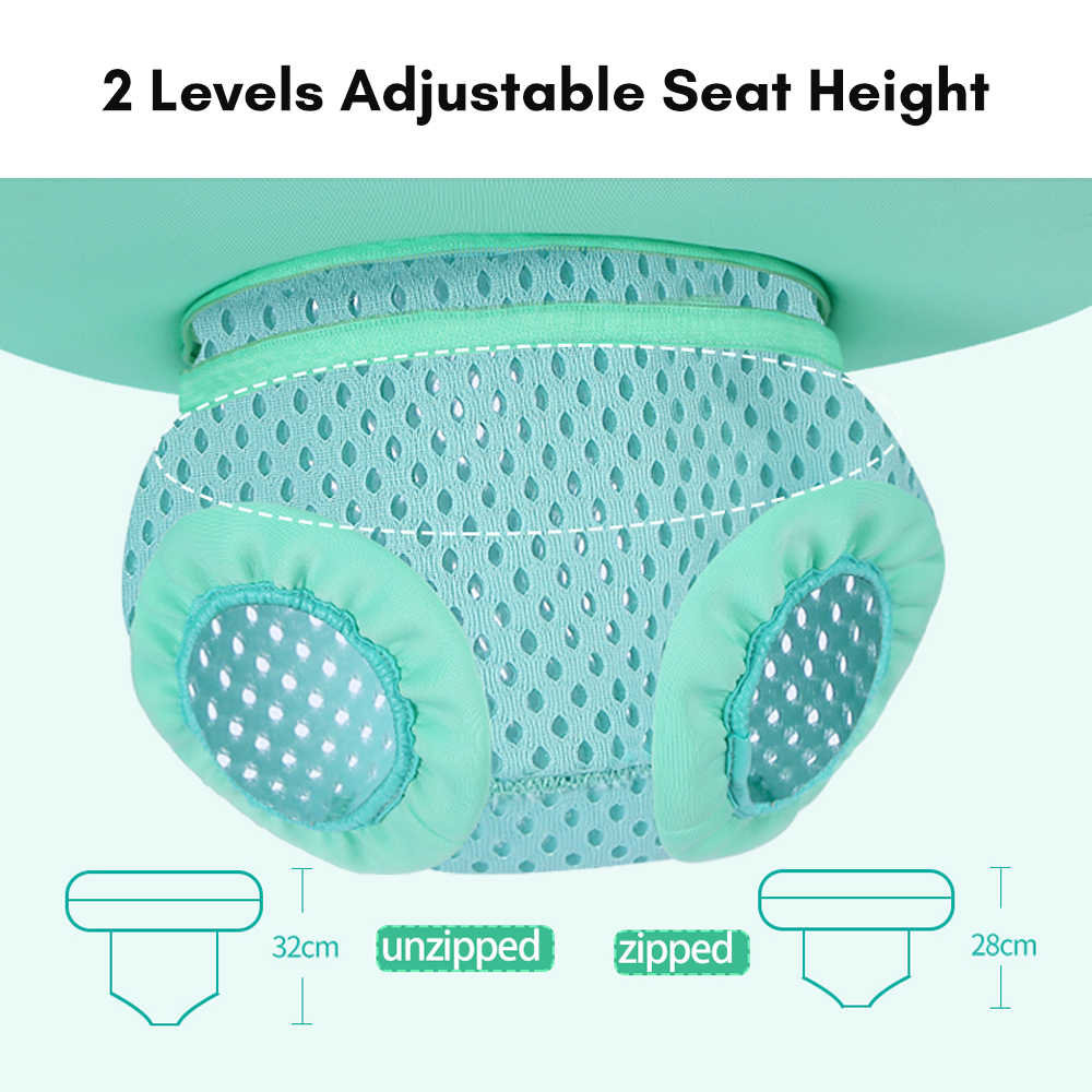 1、[Non-Inflatable Swimming Float Ring] With millions of small pearl-foam microcapsules inside, it\u0027s solid, no need to pump, time-saving and energy-saving, quick to use, not easy to leak or break. 2、[Ergonomic Design] With 3-point support design, can steadily support baby\u0027s abdomen, waist, shoulder, and head, preventing forward overturning, flip over or sliding out. 3、[2 Levels of Adjustable Seat Height] Suitable for babies aged 3-24 months, weights 5.8-18kg/ 13-40lbs; helps babies to learn swimming at a young age and enjoy happy childhood time.