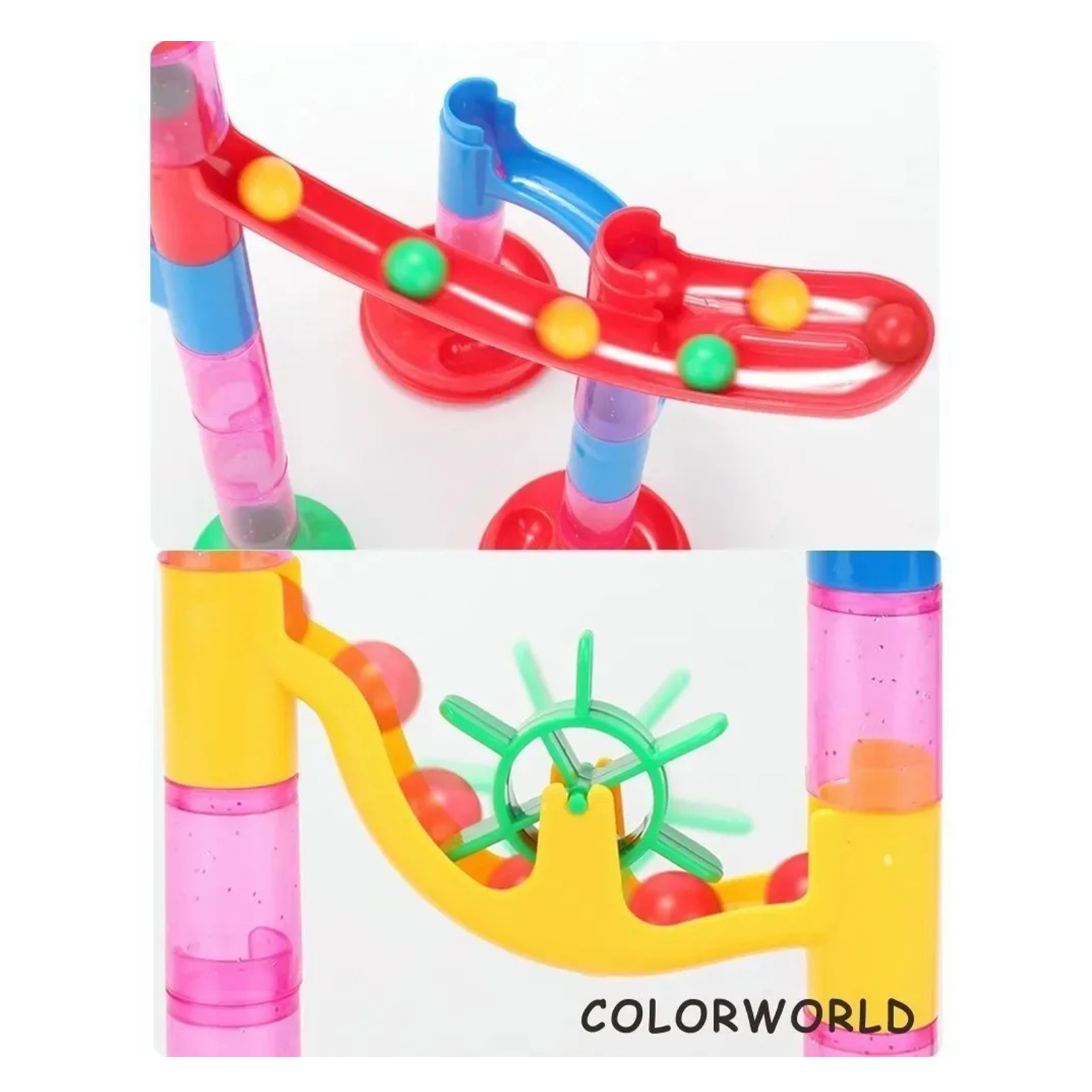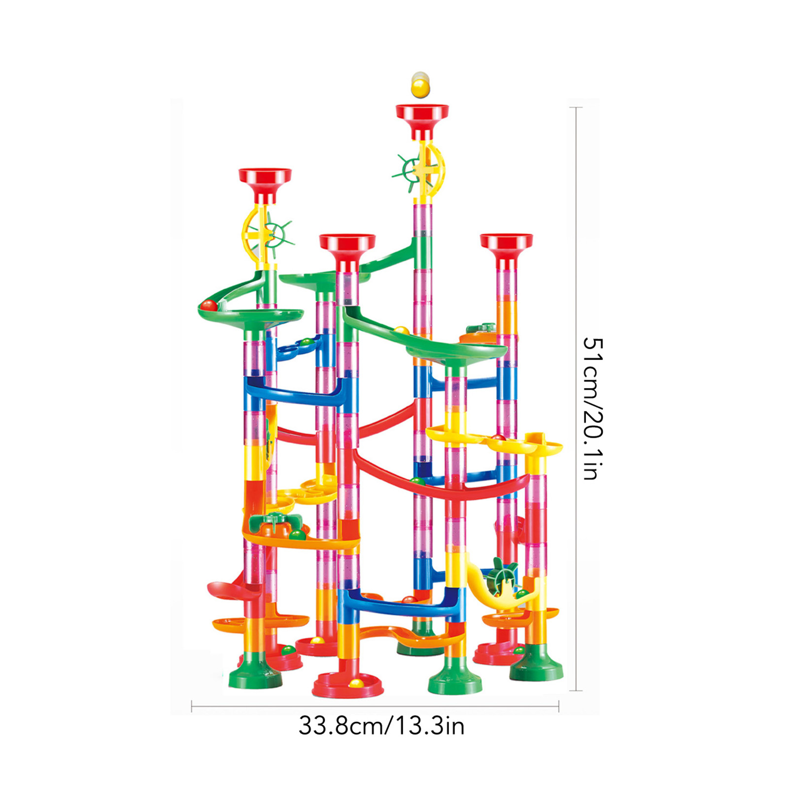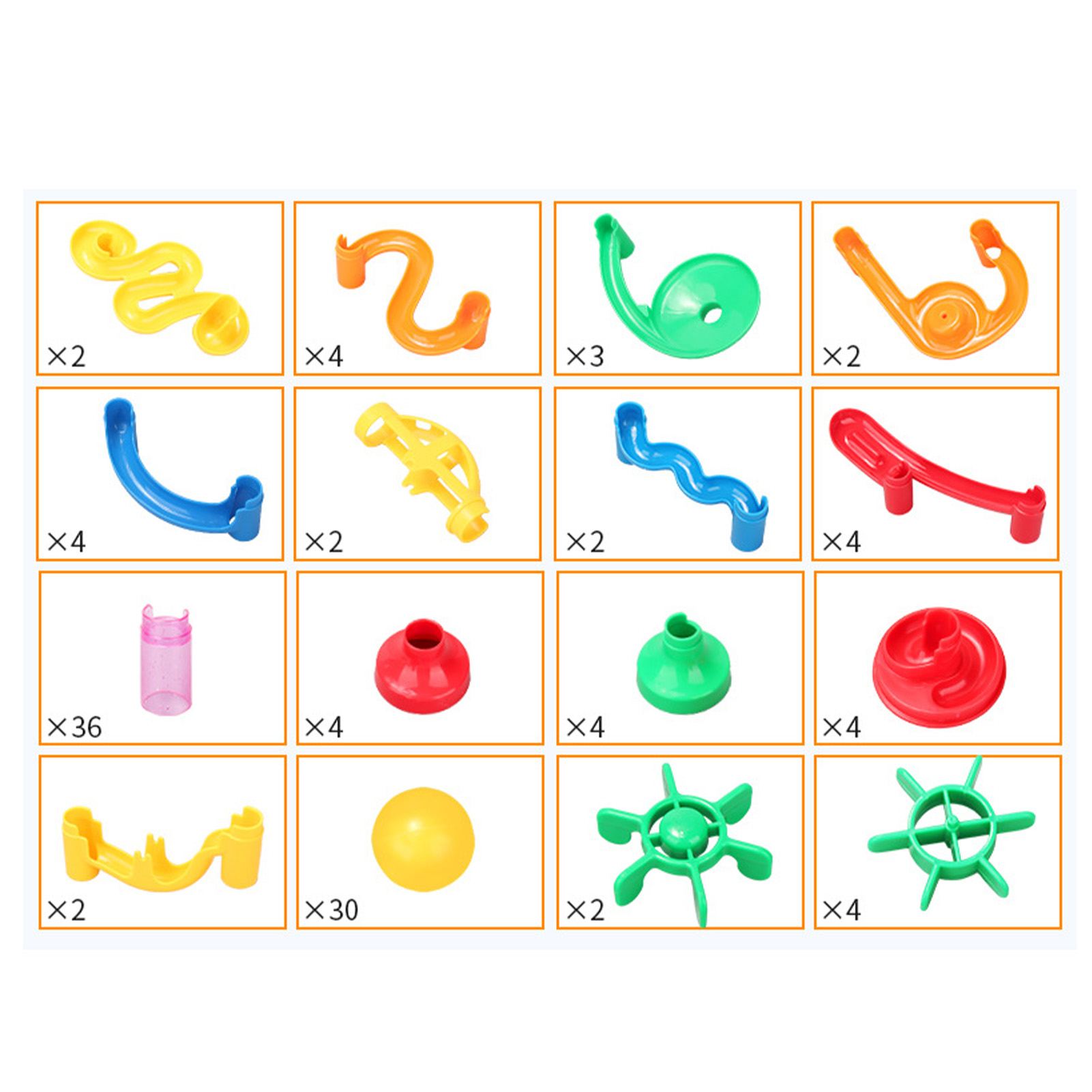1、Marble Run Building Blocks: Can be any combination of colorful three dimensional maze track. Using the card combination, through thinking, can be assembled into a smoothing maze track, and can play combination of different maze routes. 2、Educational: In the process of building, the baby can identify various colors of the blocks, master the sense of the structure and space of the blocks, and improve the baby's thinking ability. 3、Multiple Assembly Methods: There are a variety of assembly methods, after the assembly of the bead from the height of the roll down, there is a height and lateral position of the drop movement. 4、DIY Fun: Can be more than one person to participate in, cultivate competition and cooperation consciousness at the same time greatly improve the game playability. 5、Premium Materials: Made of plastic, strong, durable, not easy to damage, children can be assured to use.