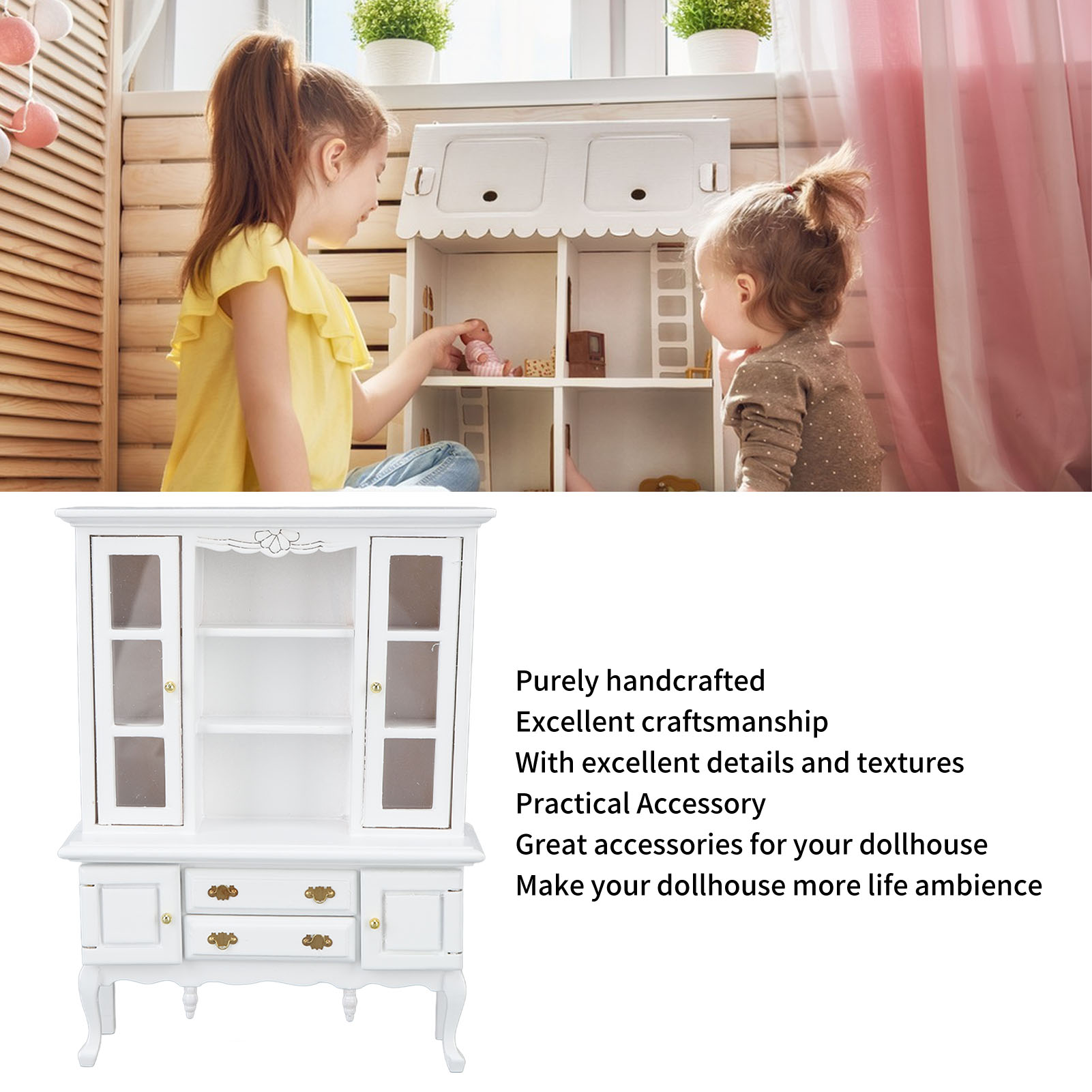 1、Lifelike: The bottom of the miniature cabinet has 2 doors and 2 drawers, both of which can be opened. Very lifelike, enhance the fun of playing. 2、Scene Decoration: Miniature cupboard cabinet can decorate your dollhouse, wedding or bakery scene, suitable for 1/12 dollhouse. 3、Multipurpose: Dollhouse storage cabinet is also suitable for miniature settings such as miniature gardens, bonsai, window displays and plant decorations. 4、Fine Workmanship: Wooden dollhouse bookcase, purely handcrafted with excellent craftsmanship. With excellent details and grain. 5、Practical Accessory: Miniature furniture cabinet provides great accessories for your dollhouse to give your dollhouse a more living ambience.