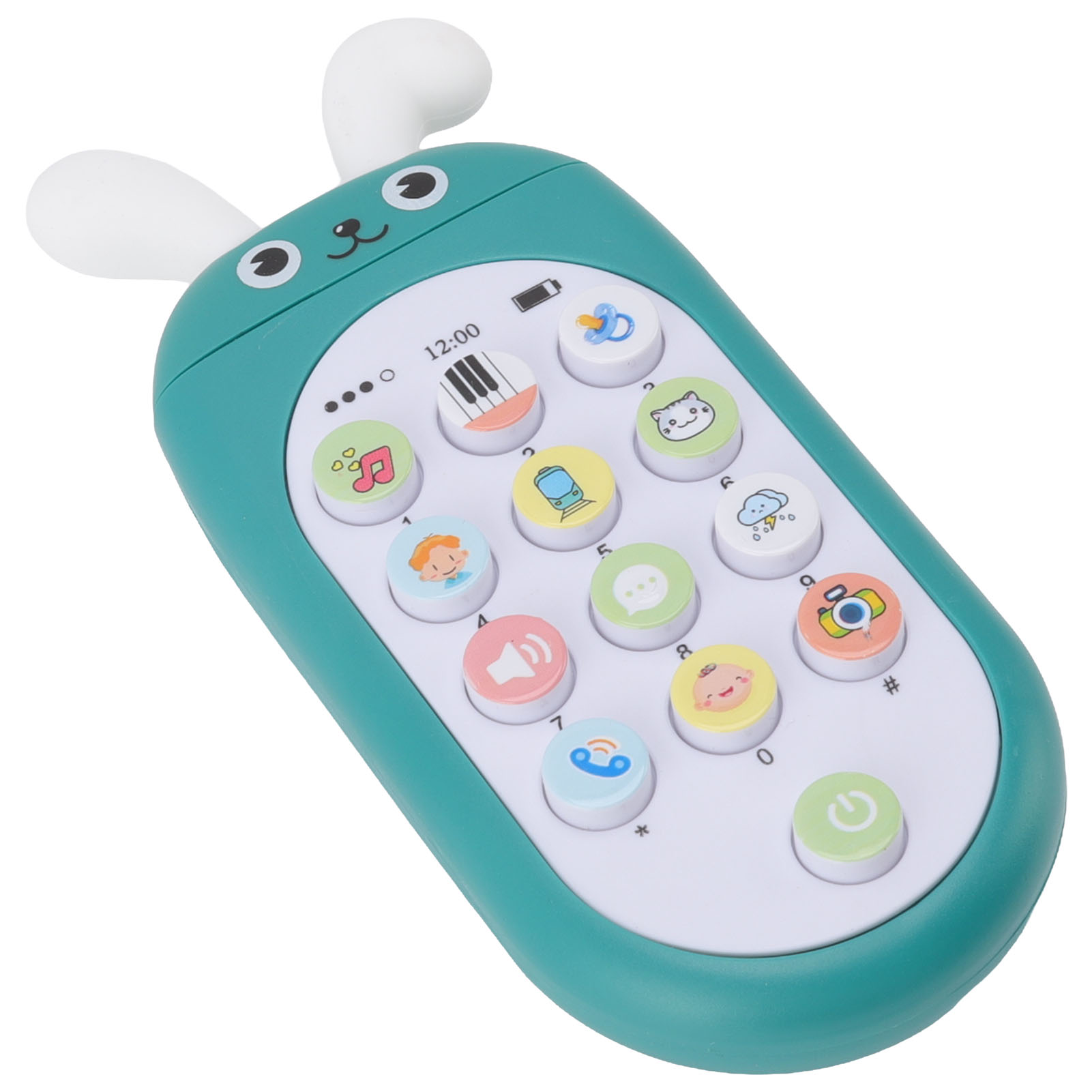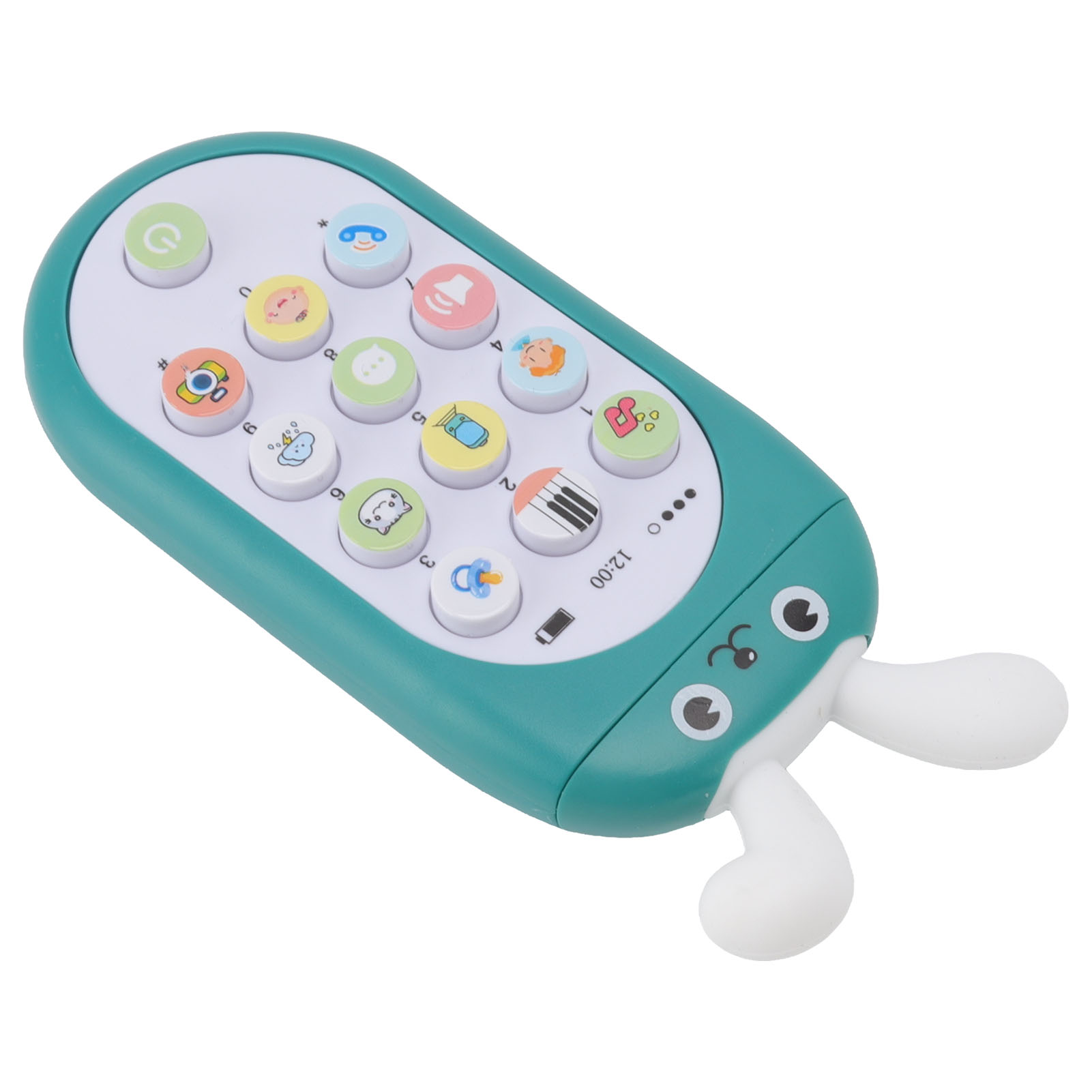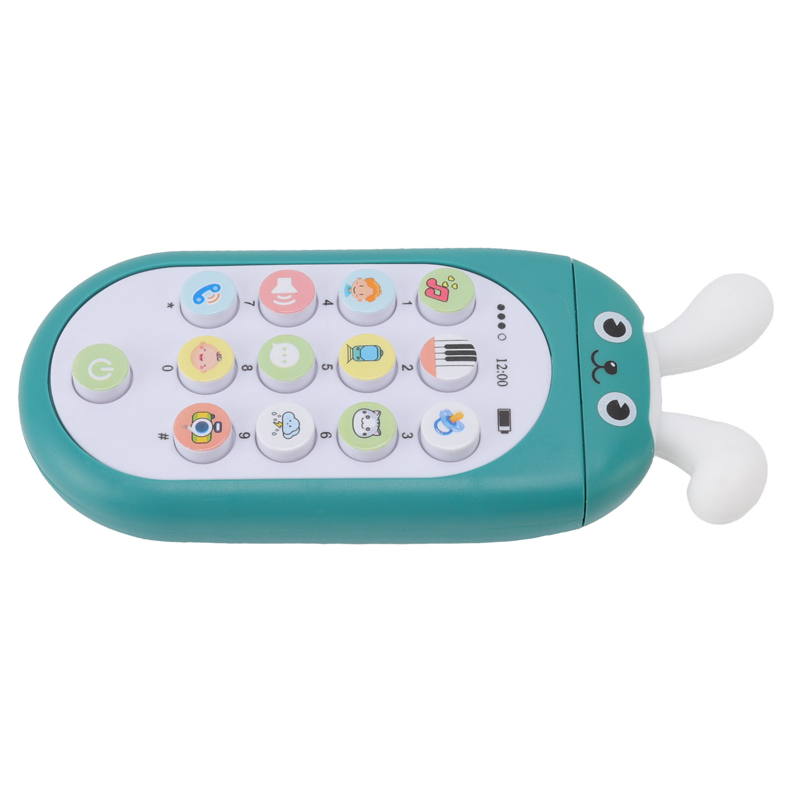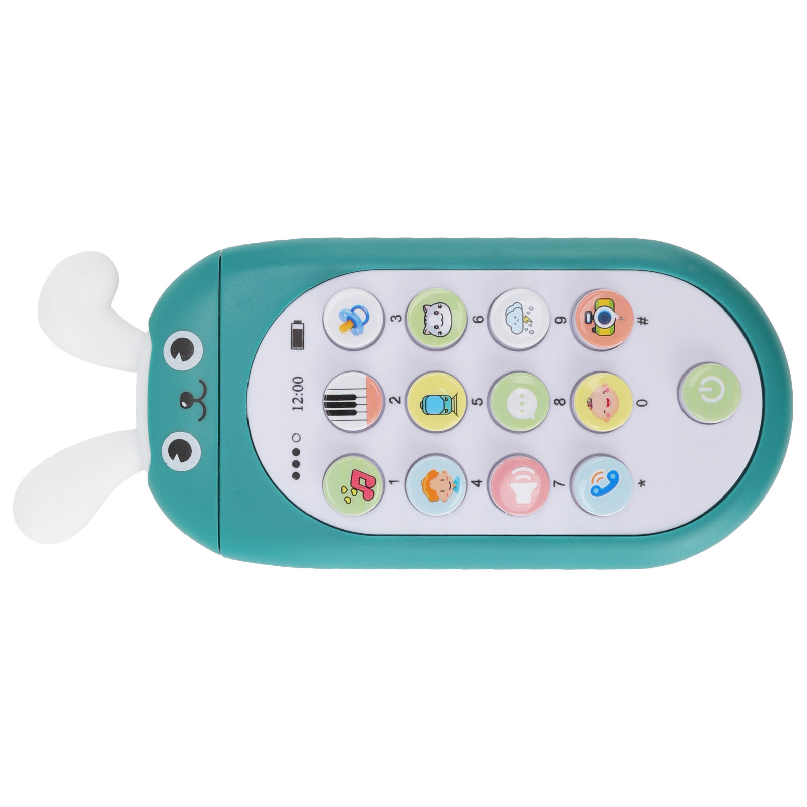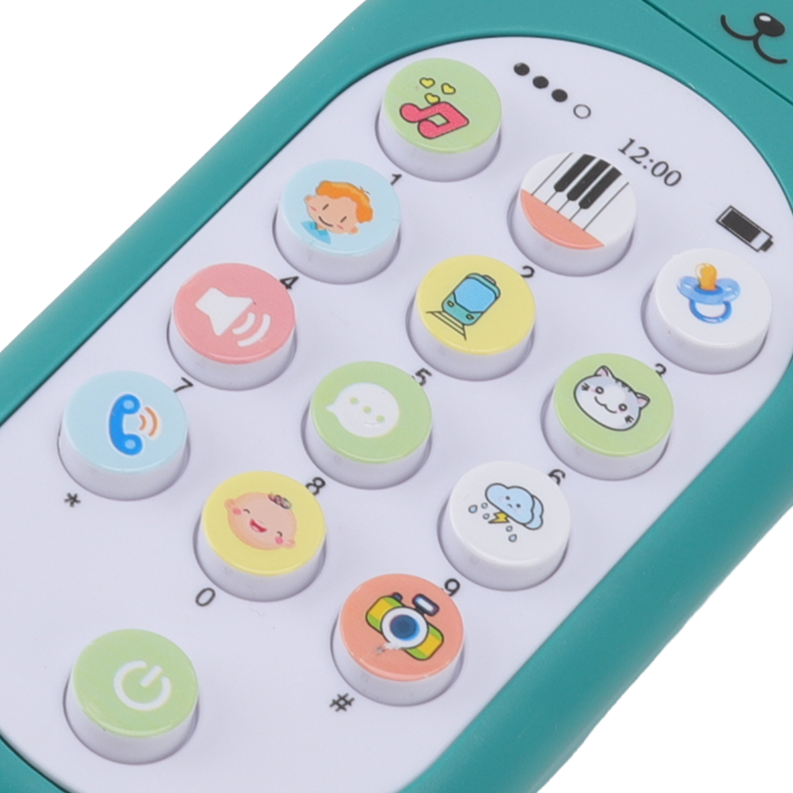 Mobile Phone Toy Cartoon Early Education Multifunctional Music Phone Toy with Lanyard for Baby Green