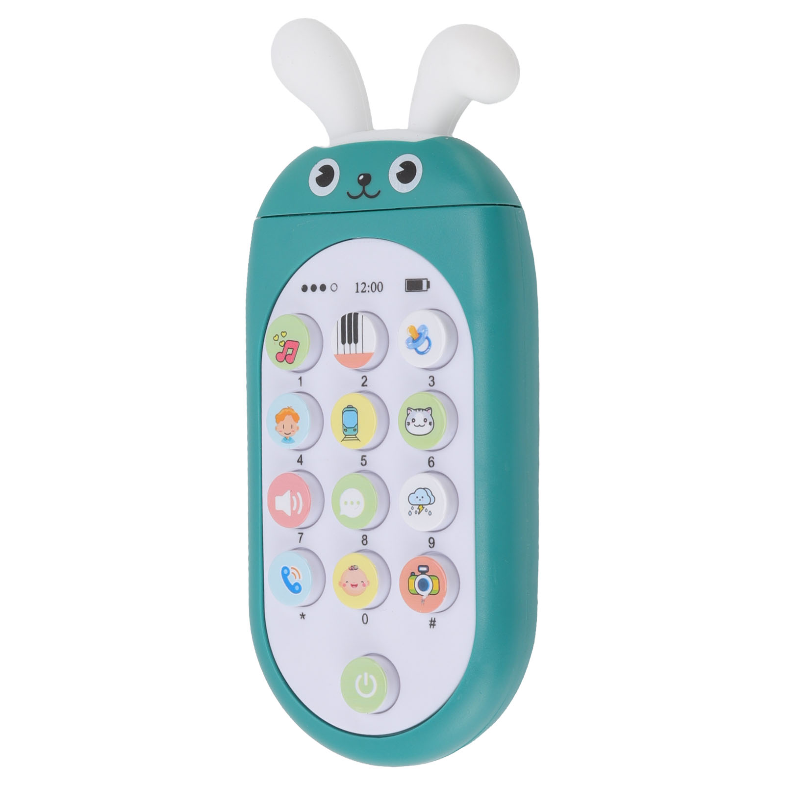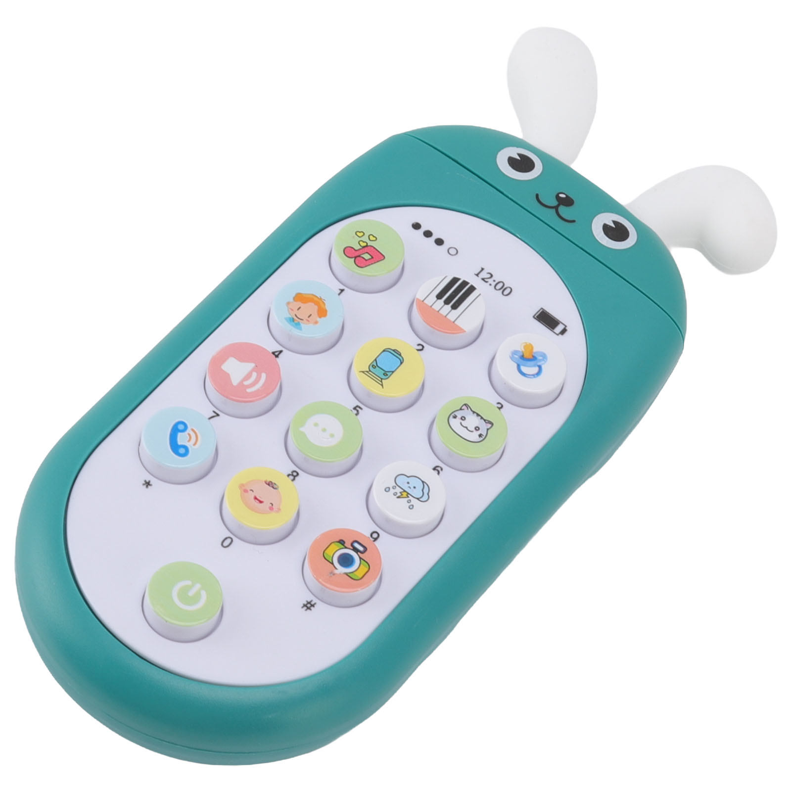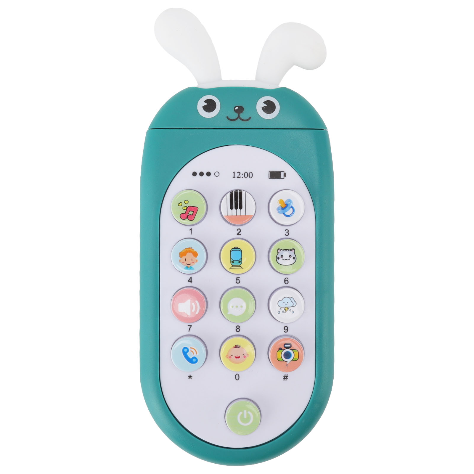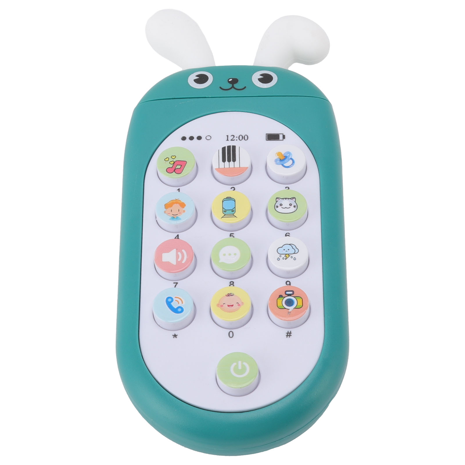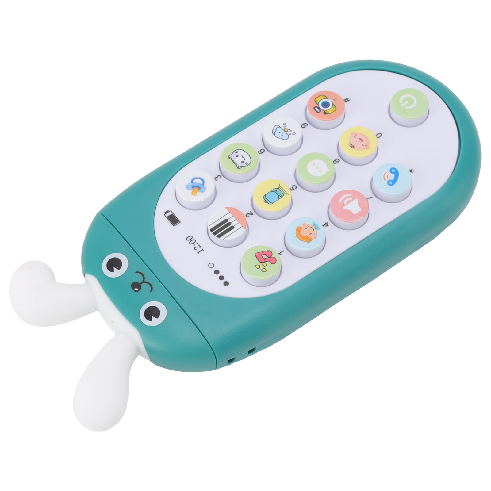Mobile Phone Toy Cartoon Early Education Multifunctional Music Phone Toy with Lanyard for Baby Green