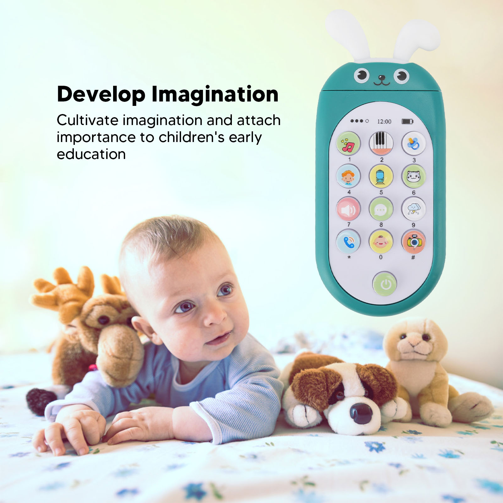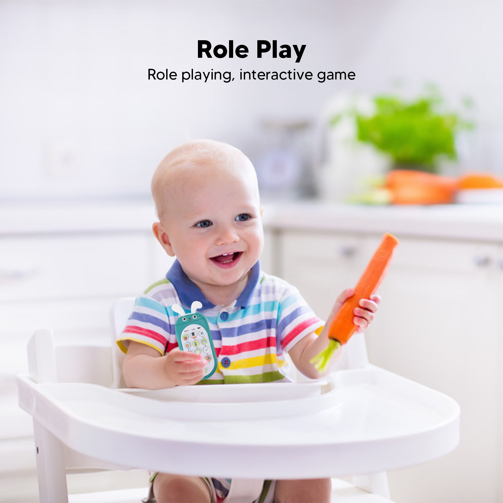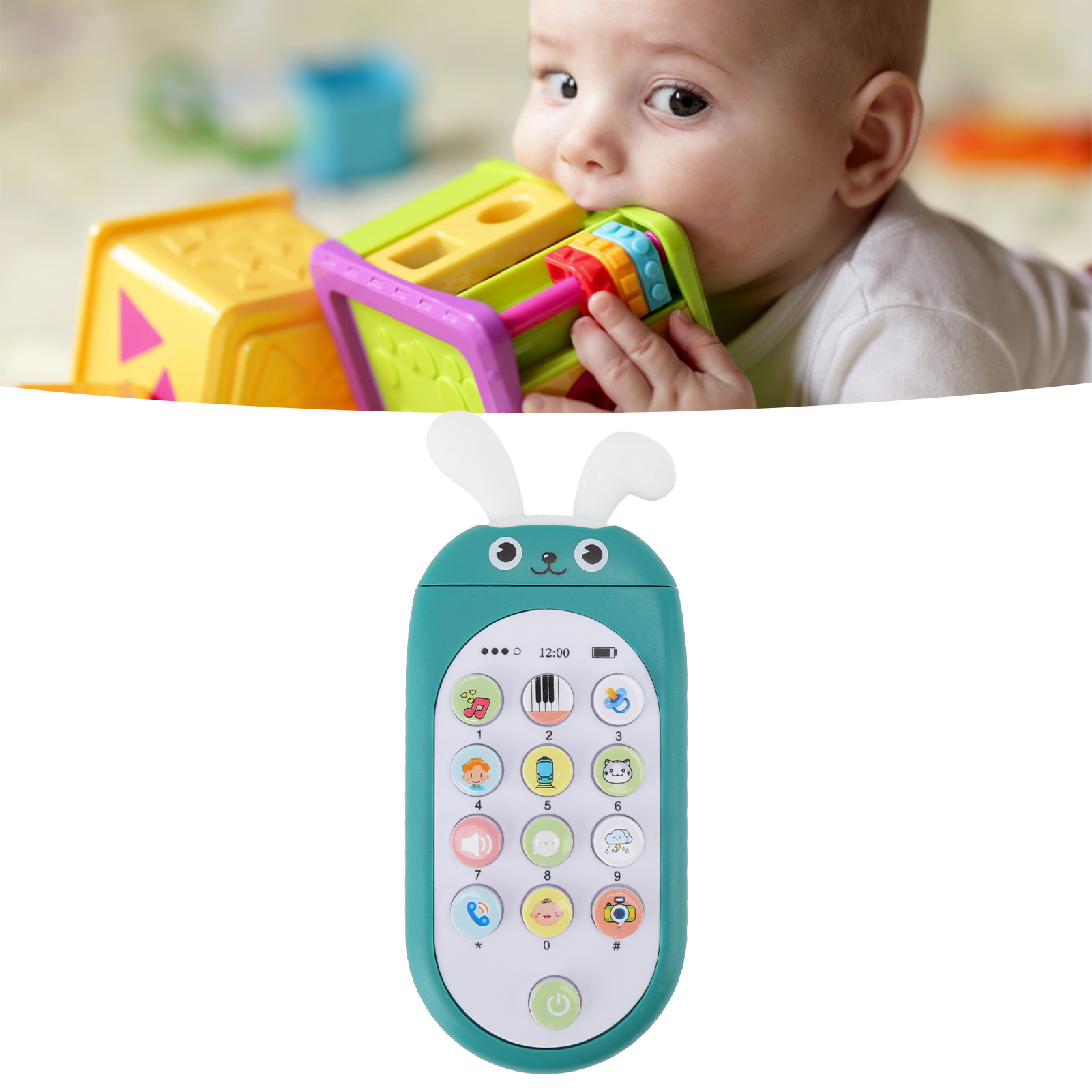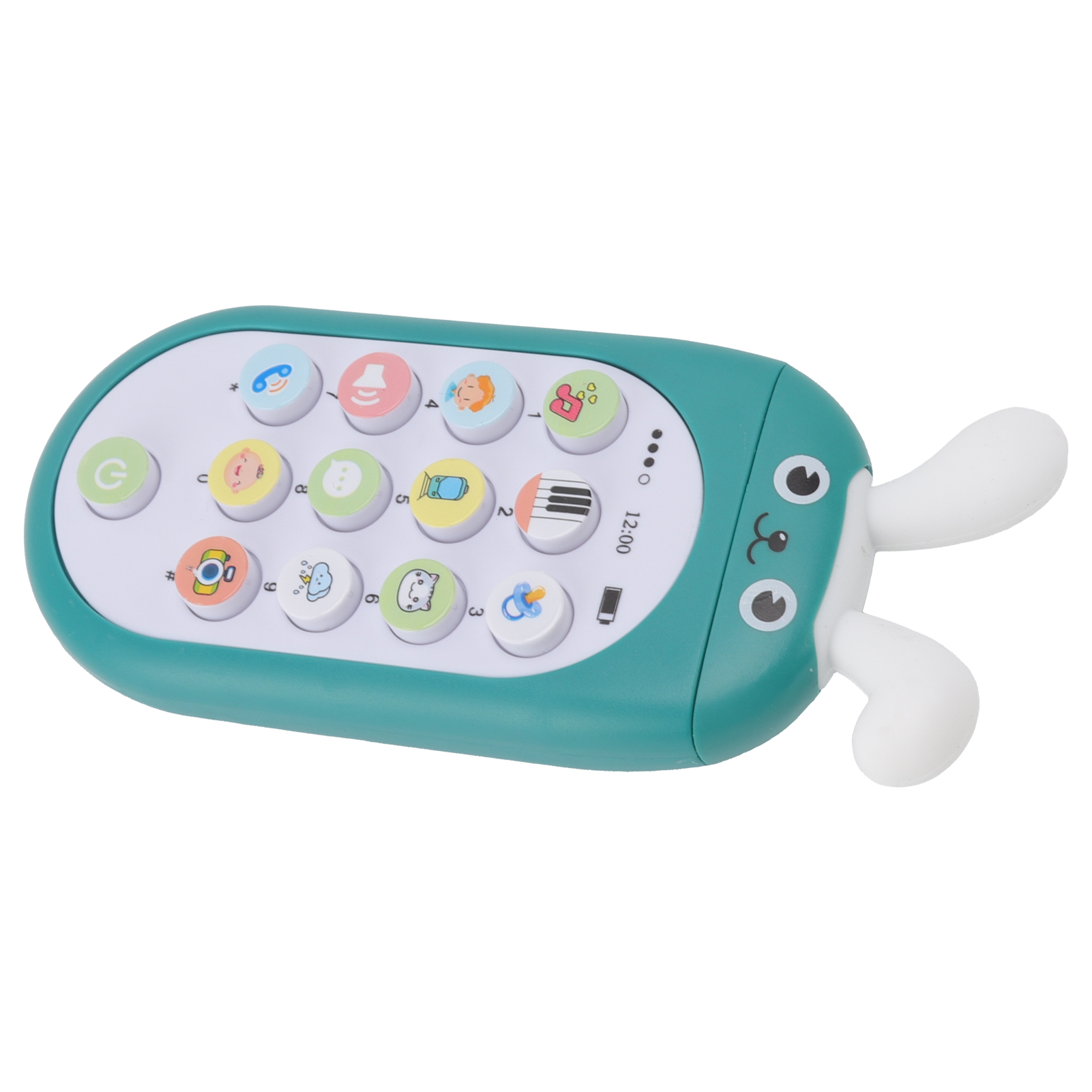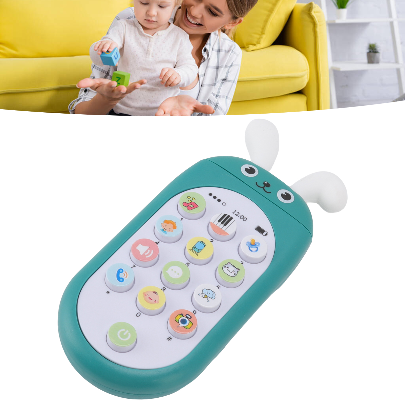 Mobile Phone Toy Cartoon Early Education Multifunctional Music Phone Toy with Lanyard for Baby Green