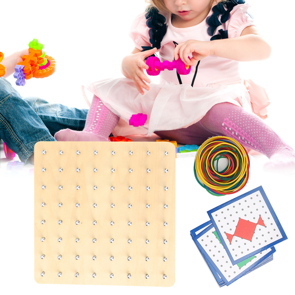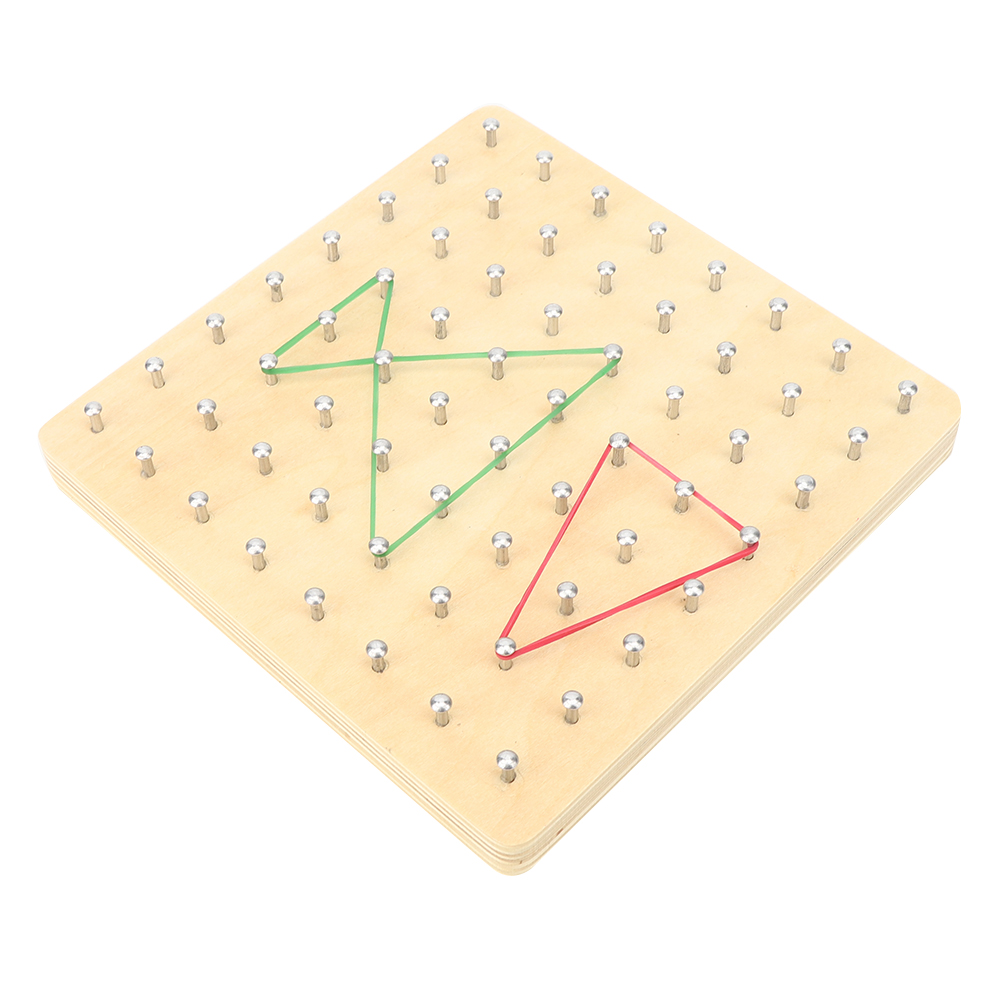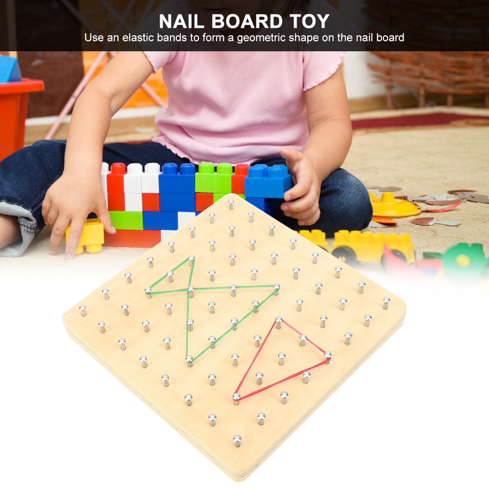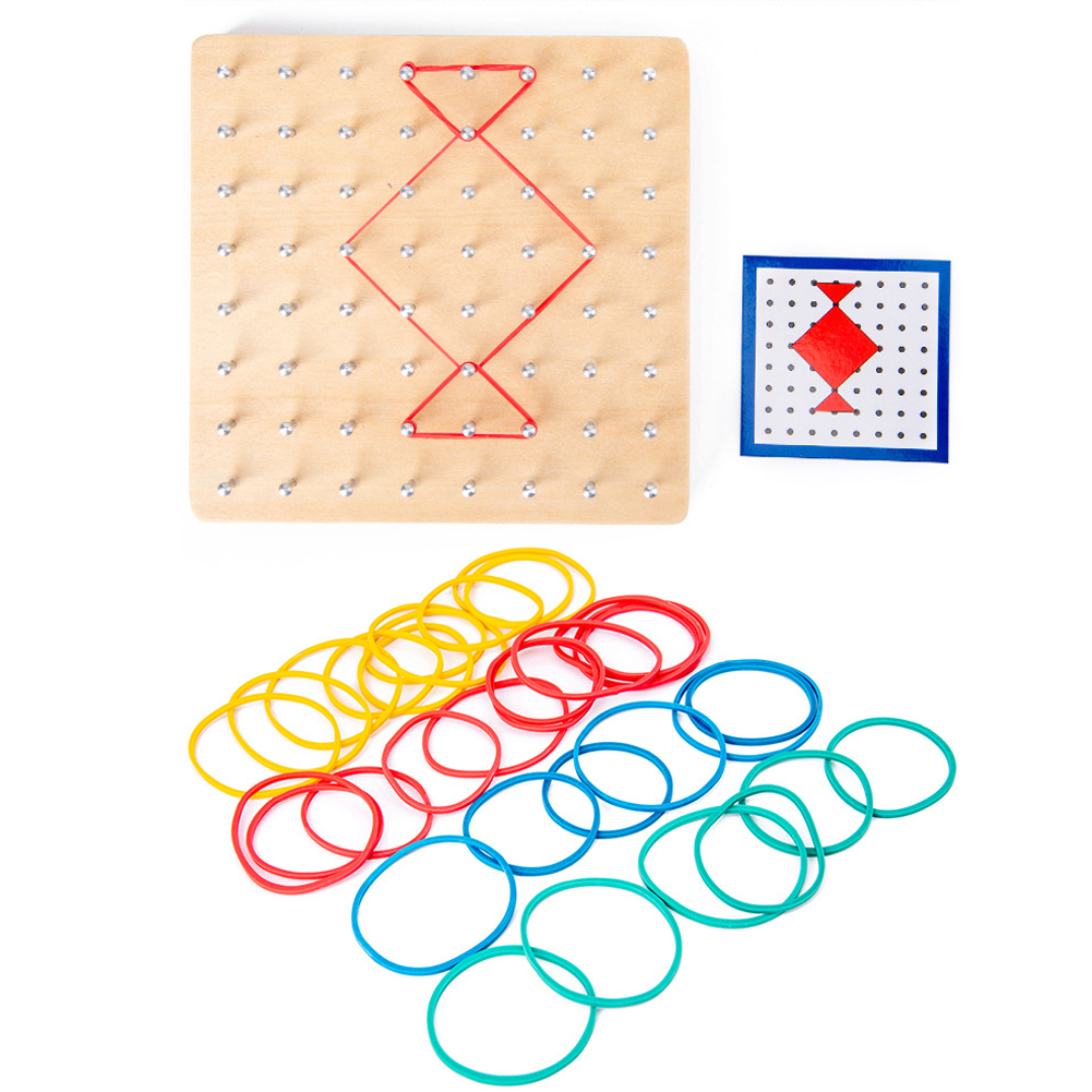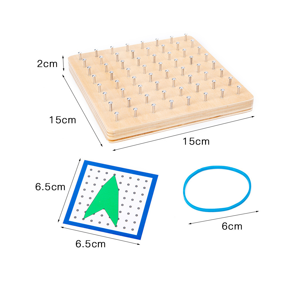 1、Use an elastic bands to form a geometric shape on the nail board. 2、Convenient and easy for children to calculate geometric area, easy to use. 3、Very suitable for children's primary school mathematics education. 4、Wood material manufacturing ensuring durable and safety for children play. 5、Color recognition ability, babies learn various color/image while playing.
