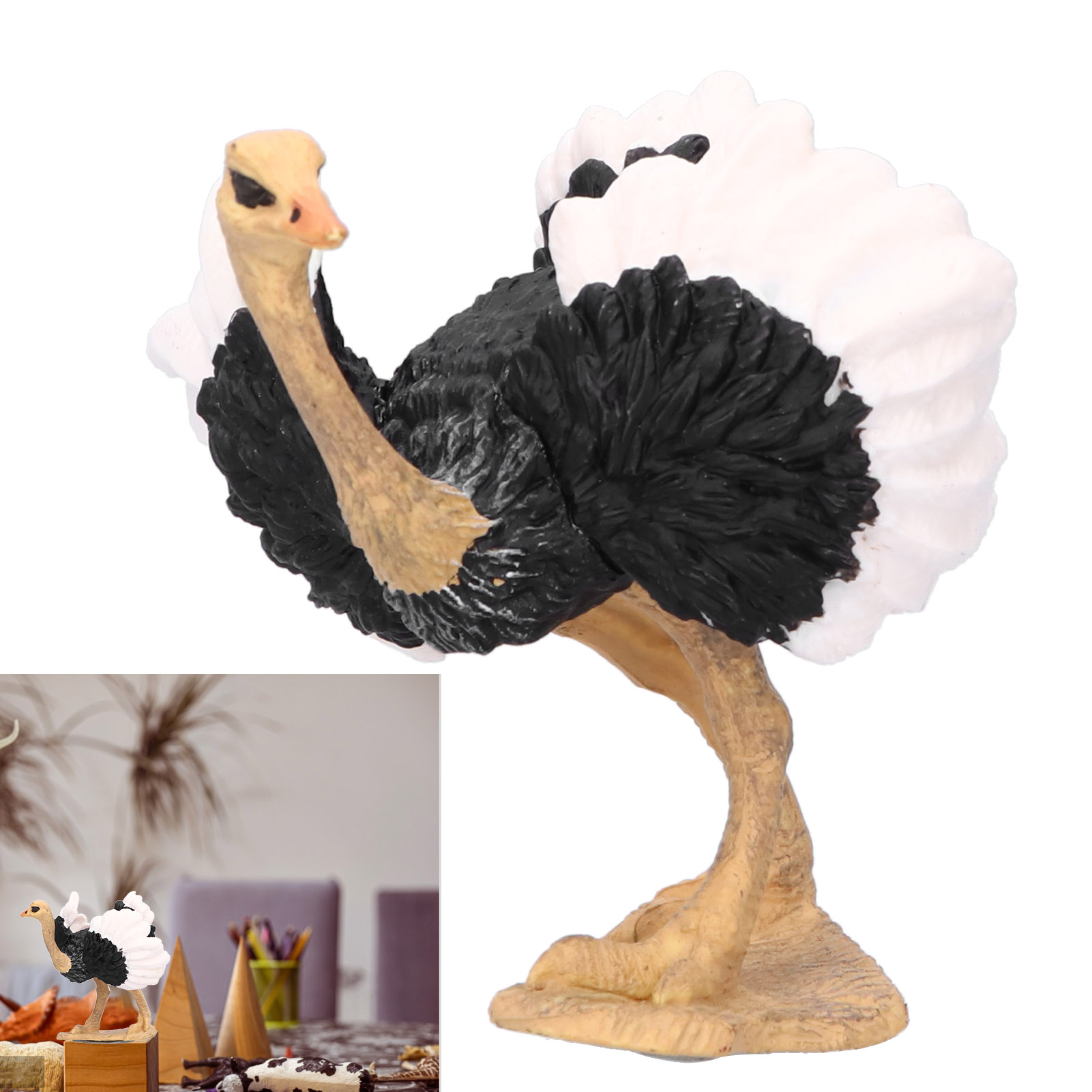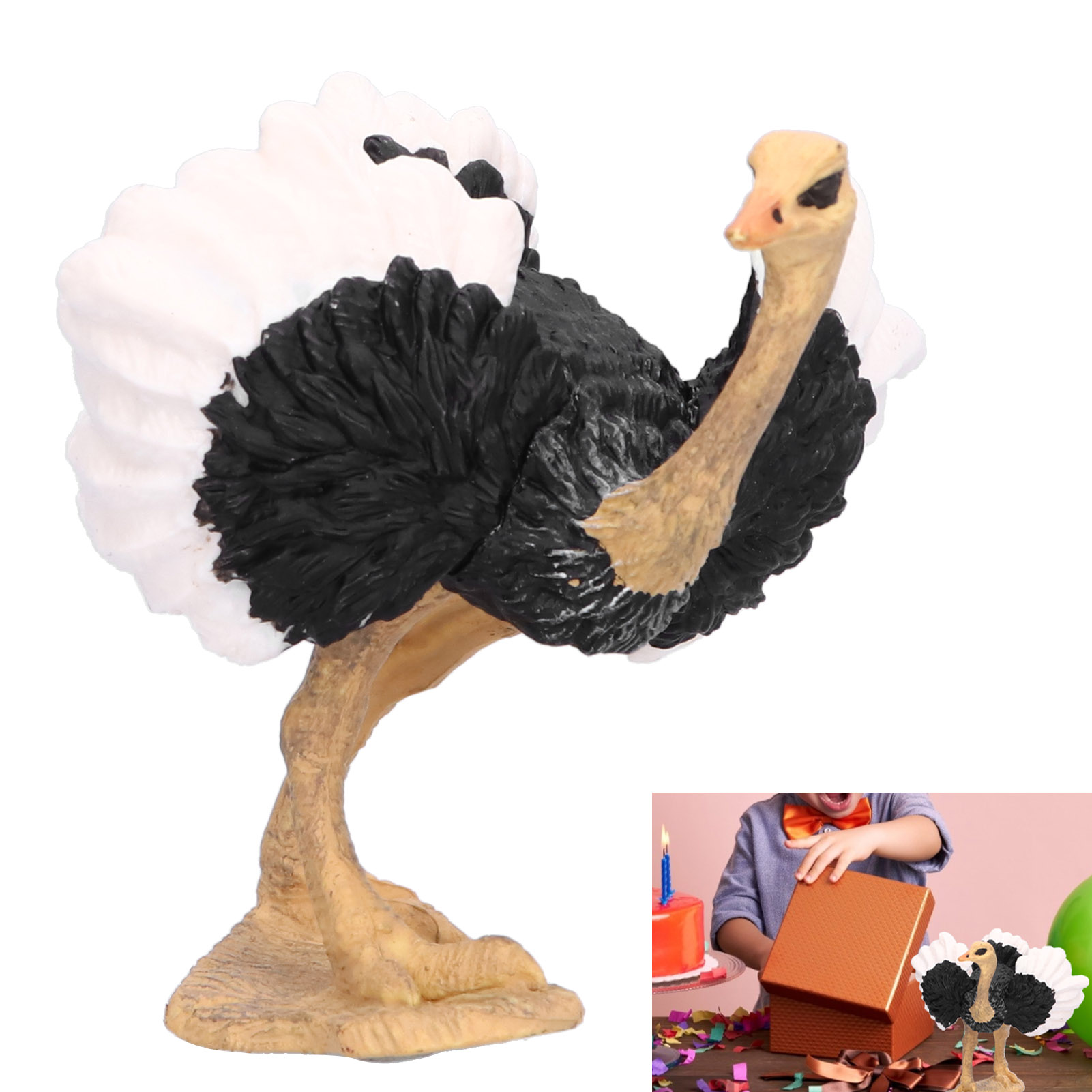 1、Imitation ostrich modeling. Exquisite detail and craftsmanship, highly simulation appearance and having delicate texture. 2、Great for collection, home desk decorations and party gifts. Also a great gift for animal lovers. 3、Can be used as children's education props, stimulate imagination and curiosity, let them know some wildlife knowledge, bring them a lot of fun. 4、Special designed for children above 3 years old to play, wonderful gift and promotes early learning. 5、High quality plastic material manufacturing ensuring maximum durability and safety for children play.