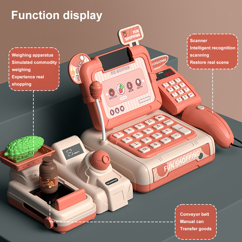 1、1. Intelligent identification cash register: Intelligent identification scans multiple real objects, and voice prompts throughout the process to make the experience more realistic, including fake food and drinks. 2、2. Modern toy design: All items are bright and cheerful, with colorful colors, which make children fascinated by toys. 3、3. Encourage money and math skills: Great for learning about money and math. Activate imaginative interactive games. 4、4. Great family time: Spend quality time with your kids or let them play alone, teach them to shop or buy food at the supermarket and have fun. 5、5. Material: Made of high quality and durable material, it is kid-friendly.
