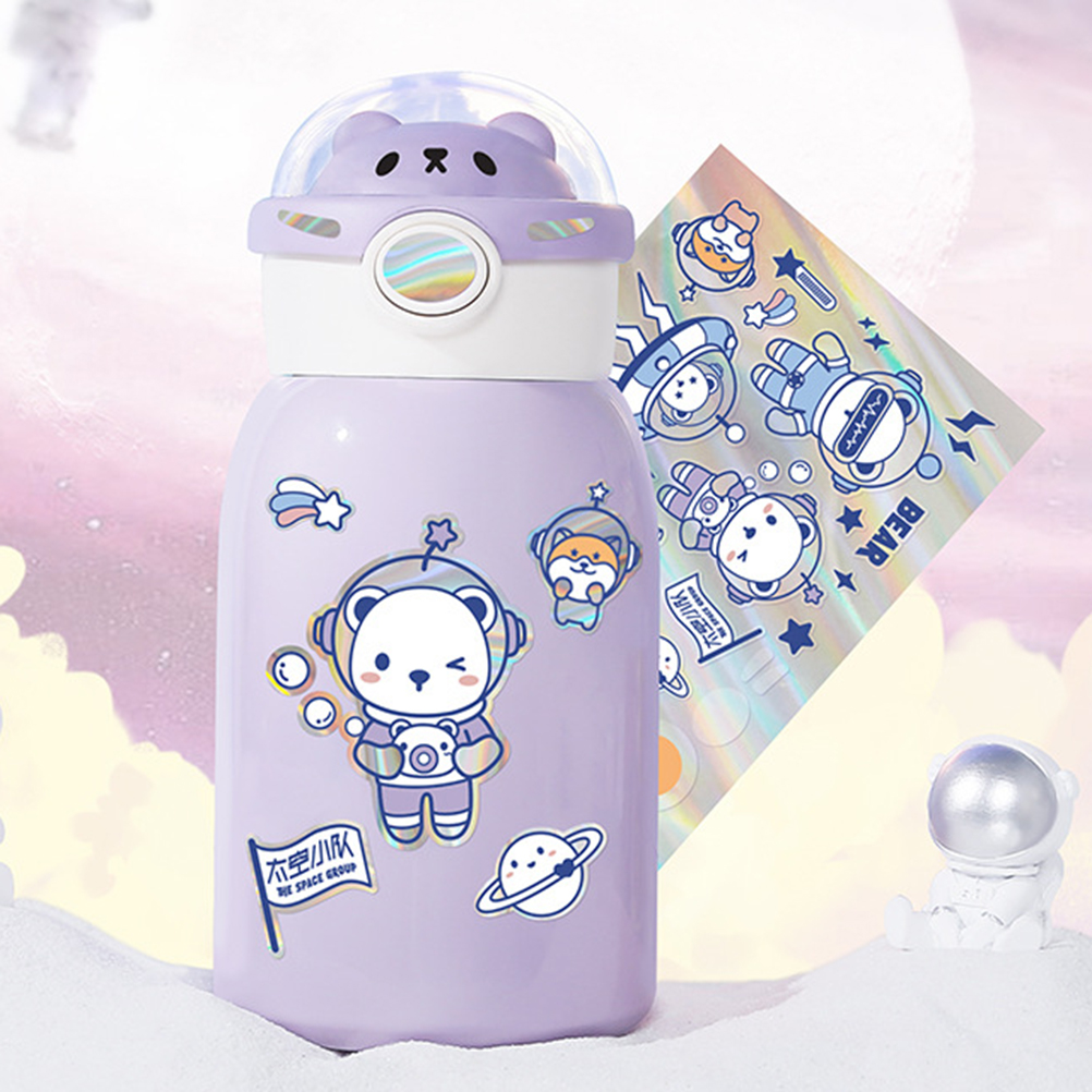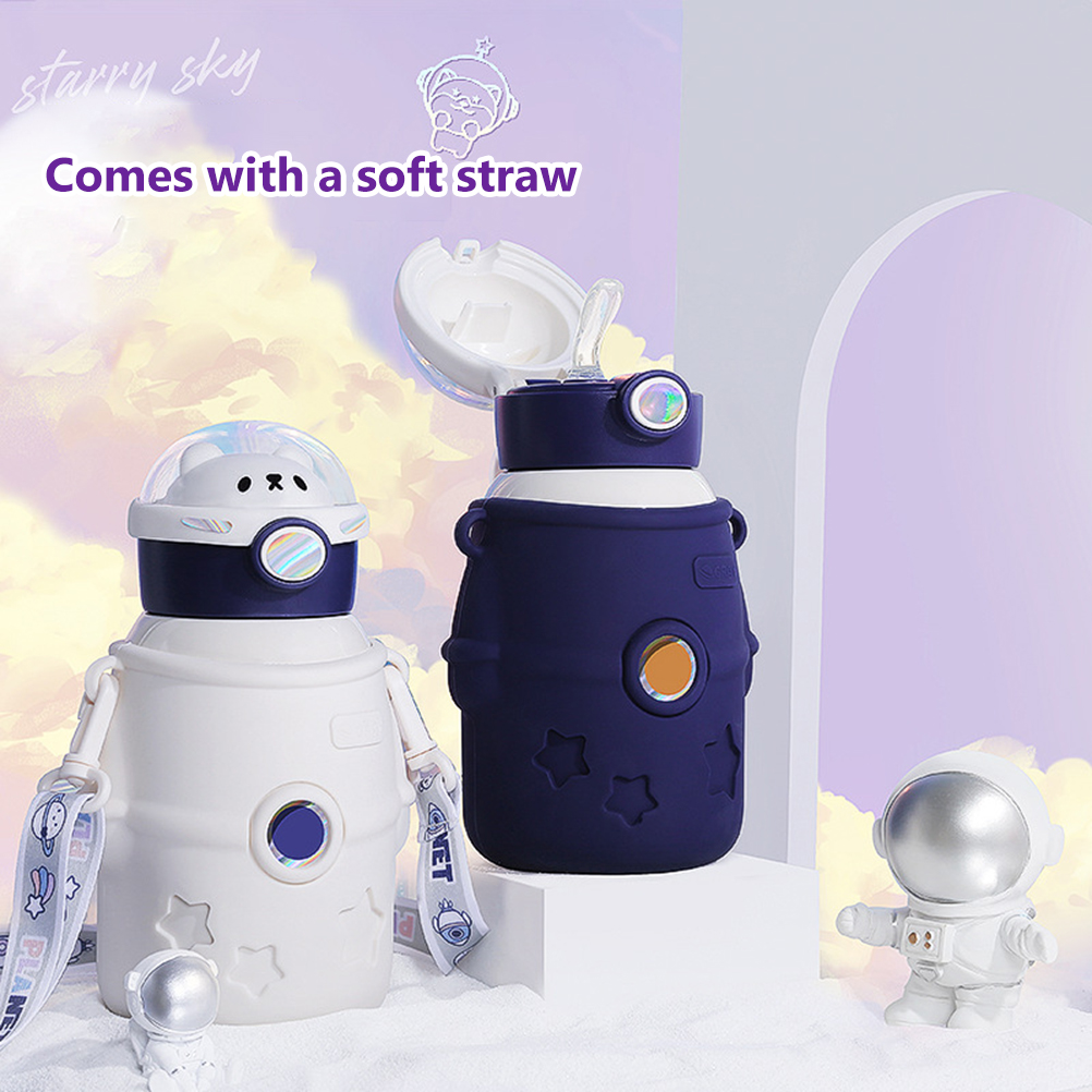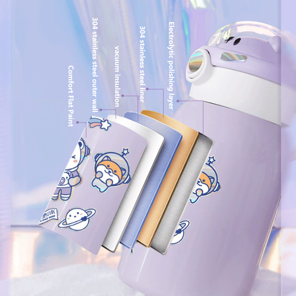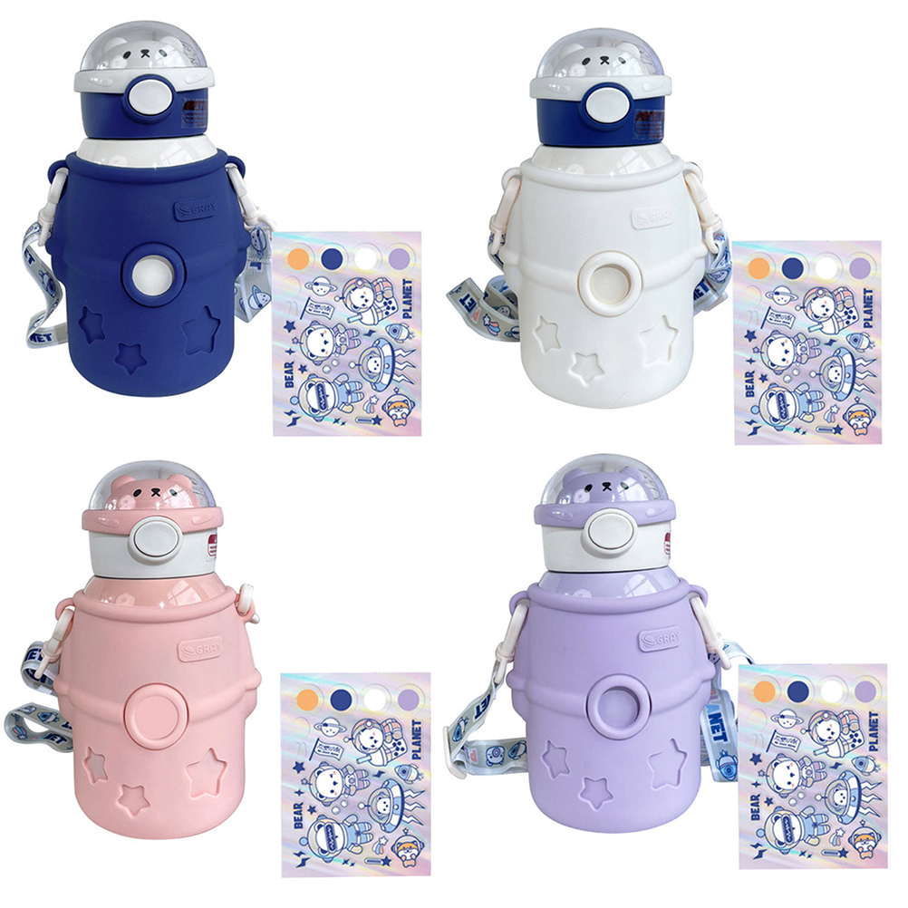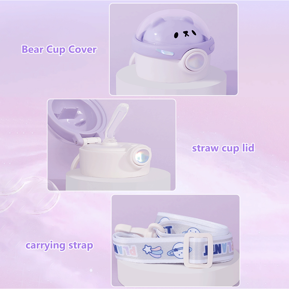 1、The surface of the bottle is comfortable and smooth, with a color sticker, you can DIY a kawaii water bottle. 2、Lovely straw cup with an adjustable and detachable shoulder strap, and the lid adopts a seal design to ensure no water leaks during blending, ensuring a comfortable ride. 3、The inside and outside are made of 304 stainless steel, and the inner bottom is made of 316 stainless steel, which locks the vacuum layer, heat preservation, high temperature resistance, etc. Suitable for children and teenagers, the capacity is 500ml, 5-layer vacuum sealing structure, better heat preservation effect, keep warm for 24 hours and keep cold for more than 6 hours. 4、Our straw water bottles feature an upgraded lid design to ensure leak and dust protection. The advanced one-touch button makes your drinking easier, just press the button and the straw will pop out automatically. 5、Do you often forget to drink water or even get tired of drinking water? Just choose our water bottle and it will make it easier for you to stay hydrated.