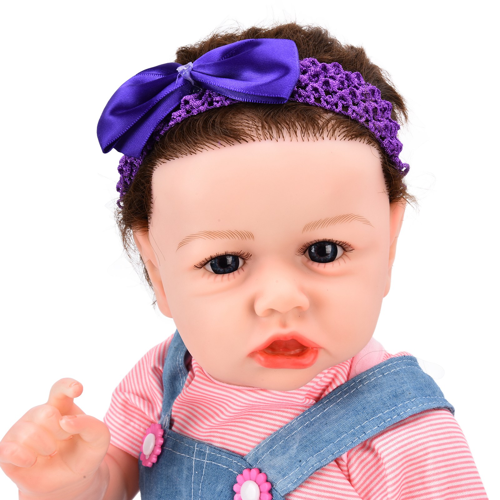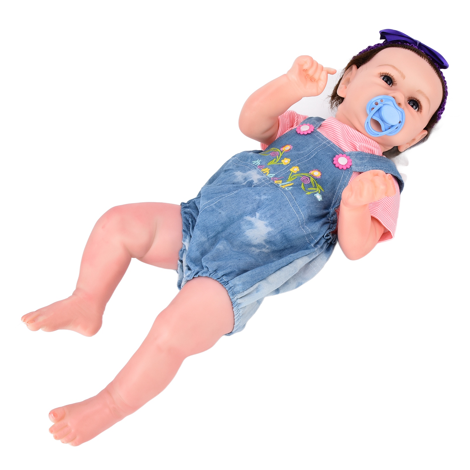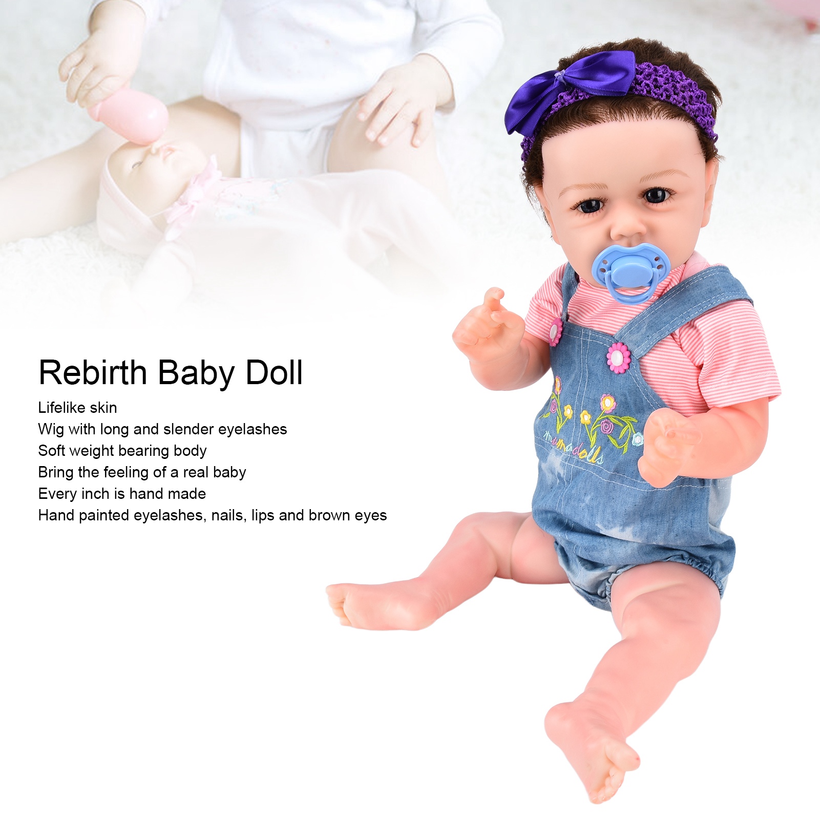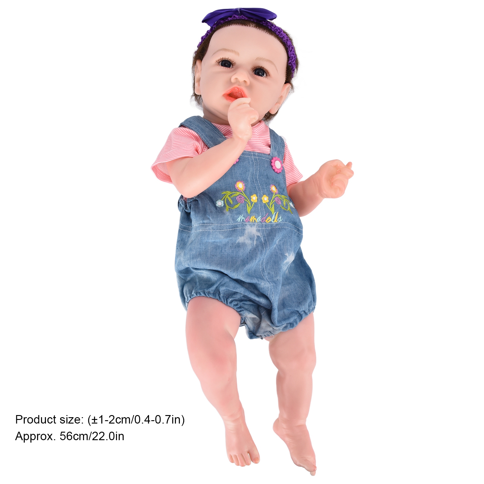 1、Non Toxic: This rebirth doll is made of non toxic, environmentally friendly materials, suitable for babies over 3 years old or pregnant women, and can be used with confidence. 2、Lifelike: A funny doll, bright eyes, open nostrils like breathing, lifelike skin, wigs, slender eyelashes, 56cm size, soft weight bearing body brings a real baby feeling. 3、Fine Workmanship: Every inch of the doll is hand made, hand painted eyelashes, nails, lips and shiny brown eyes, the perfect hand made details make her look real. 4、Gift Ideas: Children's birthday and Christmas gifts, can also be used as preschool, role playing and parenting games, rebirth dolls are also a good choice for companionship and collection. 5、High Quality Material: The whole body of the reborn doll is made of vinyl material, which is waterproof, so it can be showered or washed for easy cleaning, suitable for newborn size clothes.