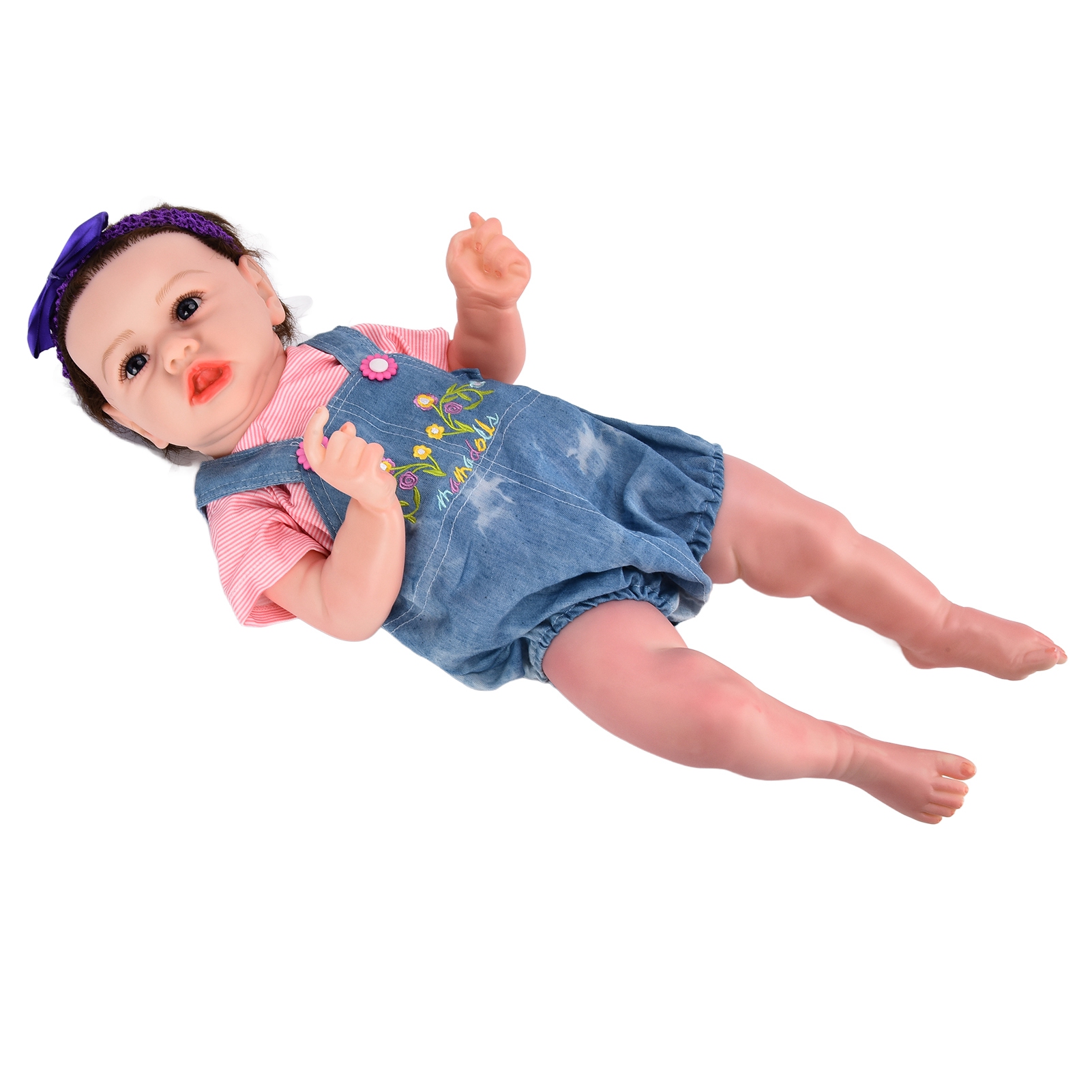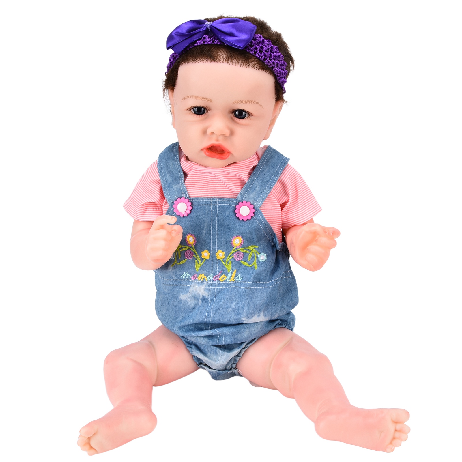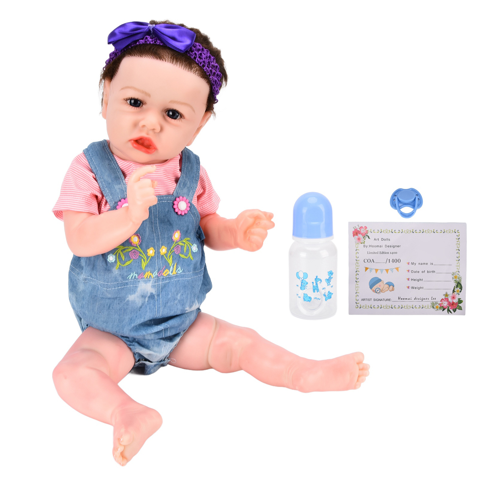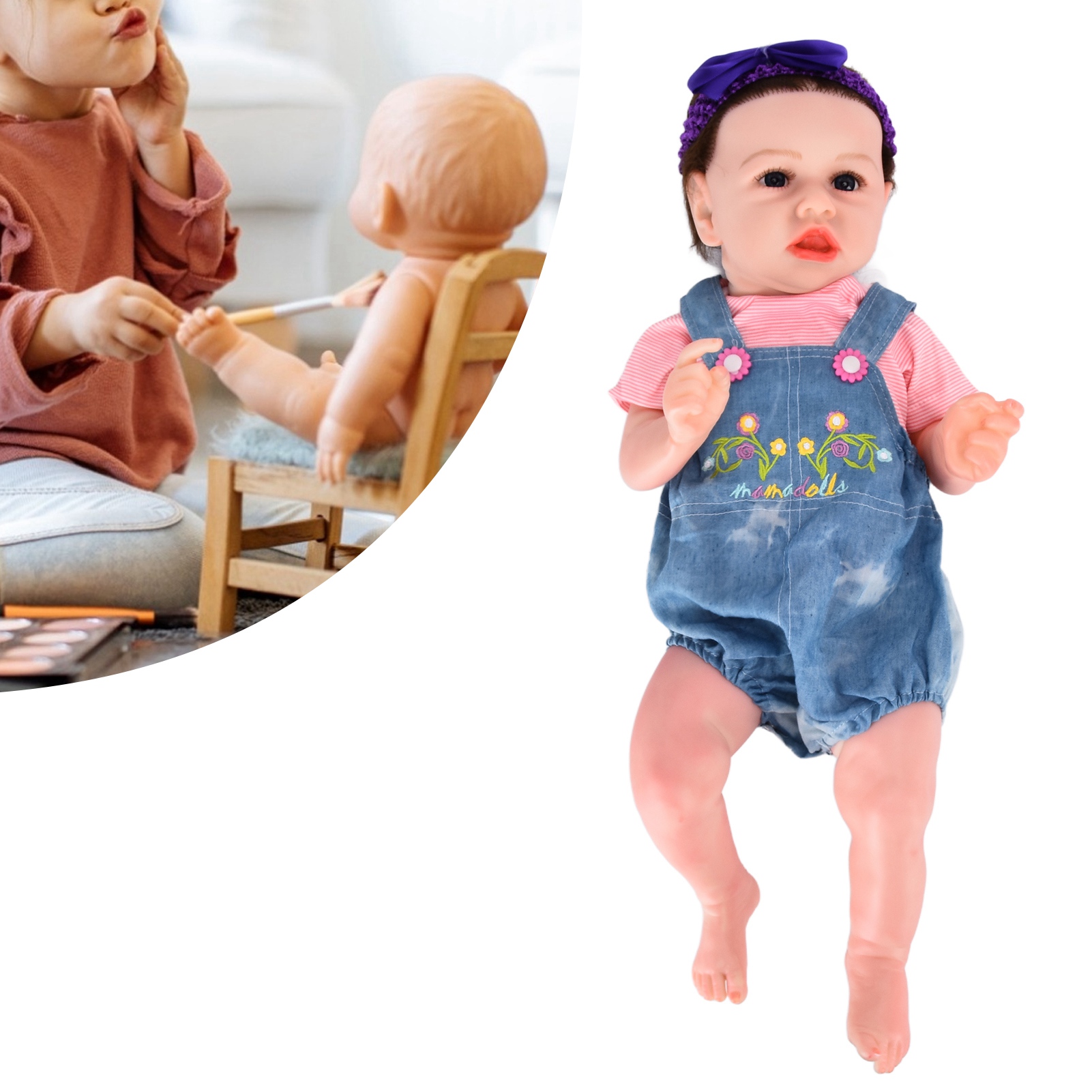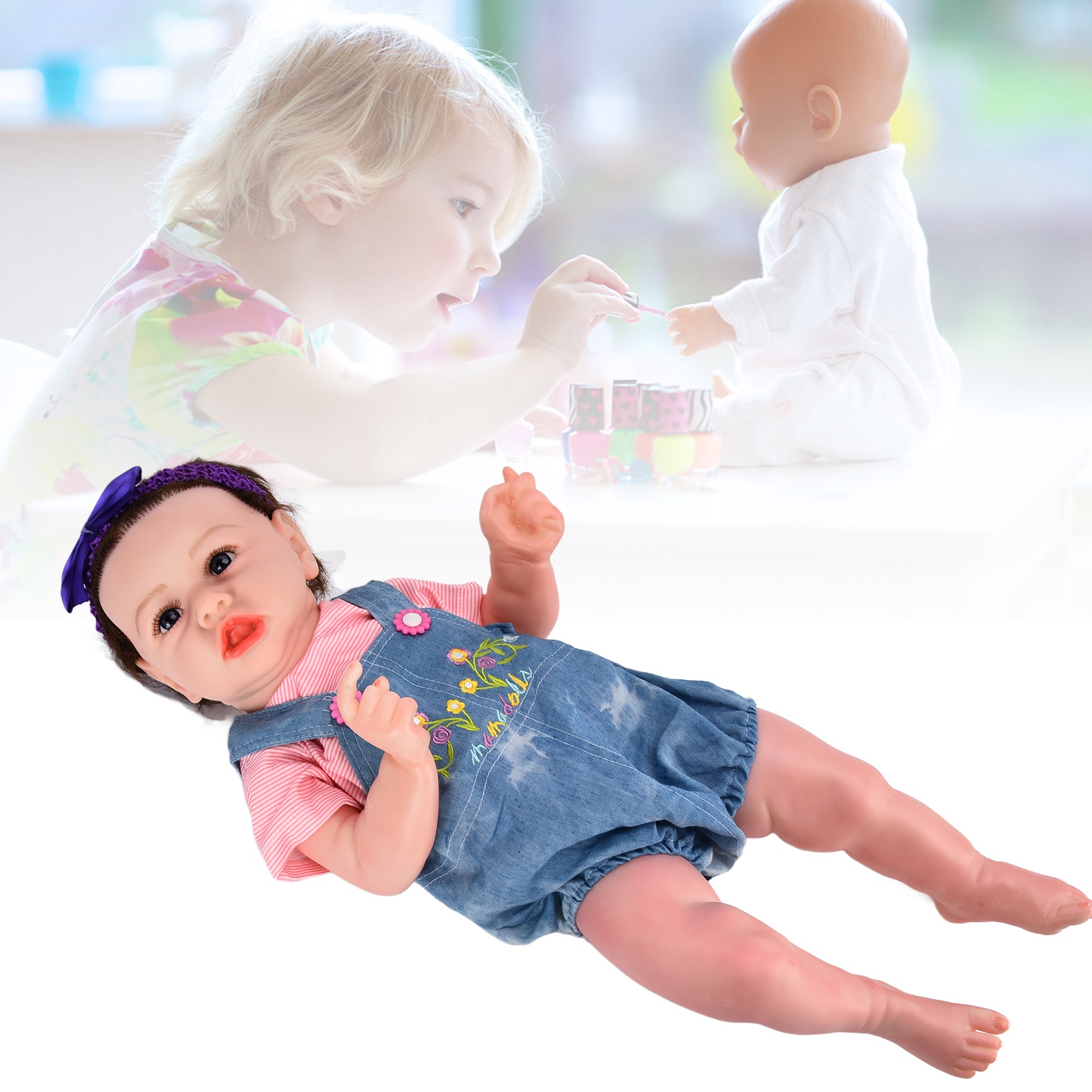 1、Non Toxic: This rebirth doll is made of non toxic, environmentally friendly materials, suitable for babies over 3 years old or pregnant women, and can be used with confidence. 2、Lifelike: A funny doll, bright eyes, open nostrils like breathing, lifelike skin, wigs, slender eyelashes, 56cm size, soft weight bearing body brings a real baby feeling. 3、Fine Workmanship: Every inch of the doll is hand made, hand painted eyelashes, nails, lips and shiny brown eyes, the perfect hand made details make her look real. 4、Gift Ideas: Children's birthday and Christmas gifts, can also be used as preschool, role playing and parenting games, rebirth dolls are also a good choice for companionship and collection. 5、High Quality Material: The whole body of the reborn doll is made of vinyl material, which is waterproof, so it can be showered or washed for easy cleaning, suitable for newborn size clothes.
