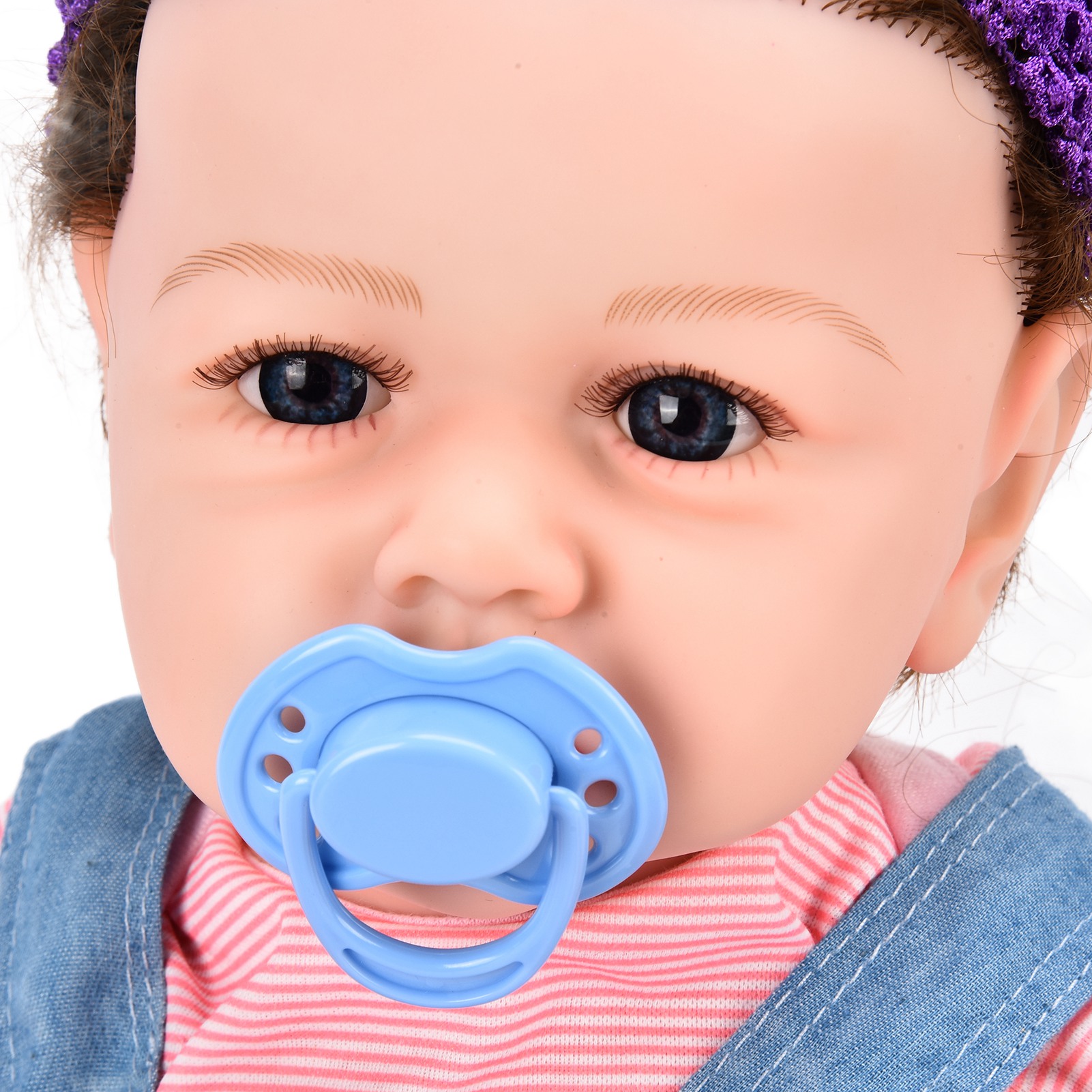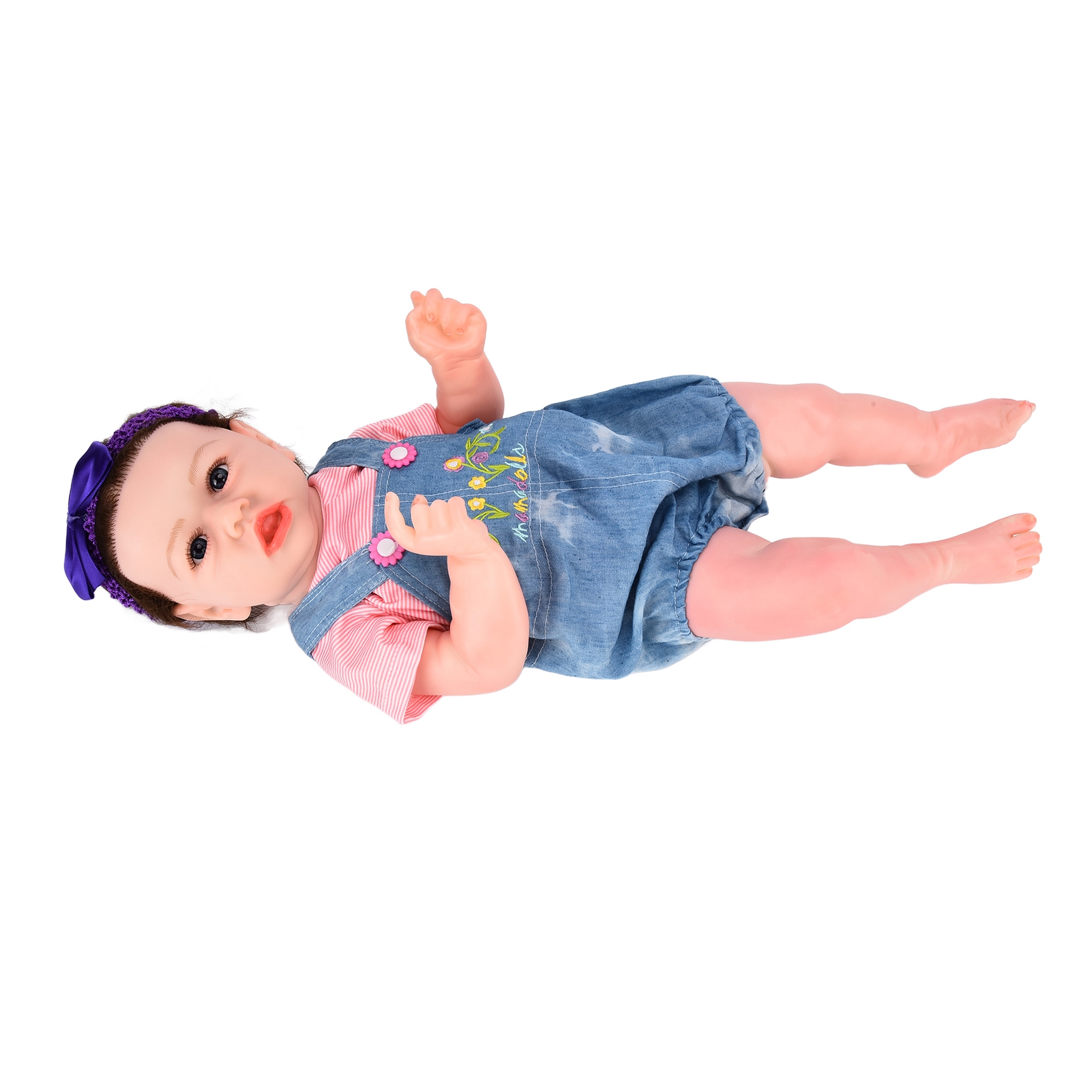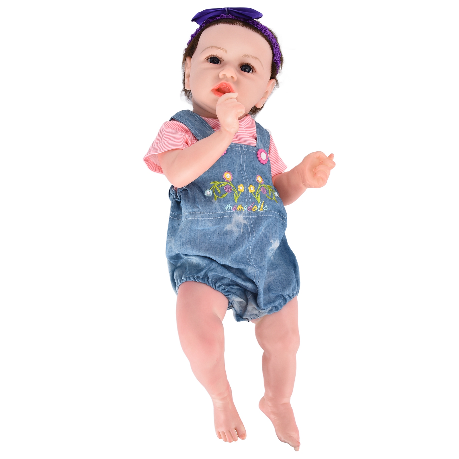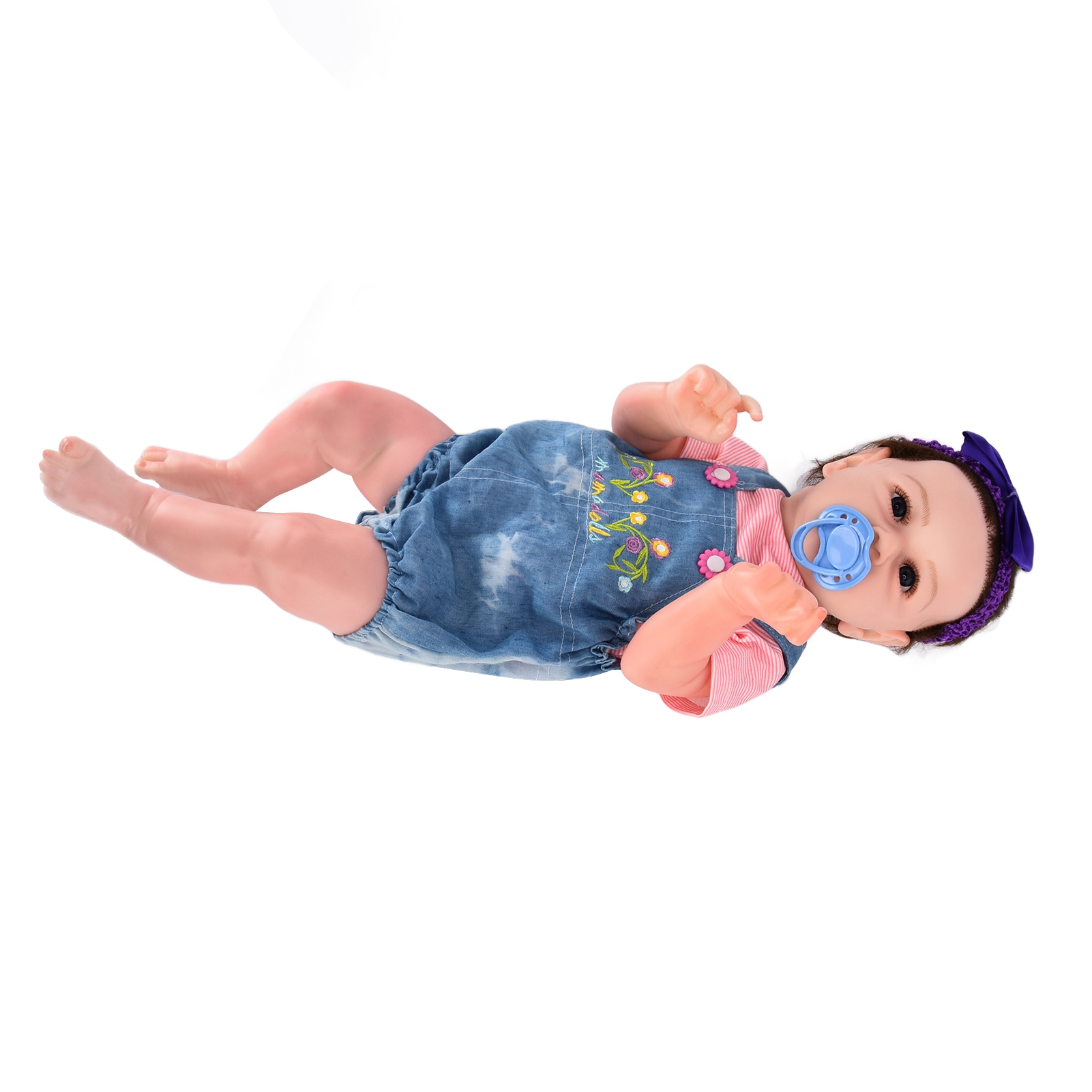 1、Non Toxic: This rebirth doll is made of non toxic, environmentally friendly materials, suitable for babies over 3 years old or pregnant women, and can be used with confidence. 2、Lifelike: A funny doll, bright eyes, open nostrils like breathing, lifelike skin, wigs, slender eyelashes, 56cm size, soft weight bearing body brings a real baby feeling. 3、Fine Workmanship: Every inch of the doll is hand made, hand painted eyelashes, nails, lips and shiny brown eyes, the perfect hand made details make her look real. 4、Gift Ideas: Children's birthday and Christmas gifts, can also be used as preschool, role playing and parenting games, rebirth dolls are also a good choice for companionship and collection. 5、High Quality Material: The whole body of the reborn doll is made of vinyl material, which is waterproof, so it can be showered or washed for easy cleaning, suitable for newborn size clothes.