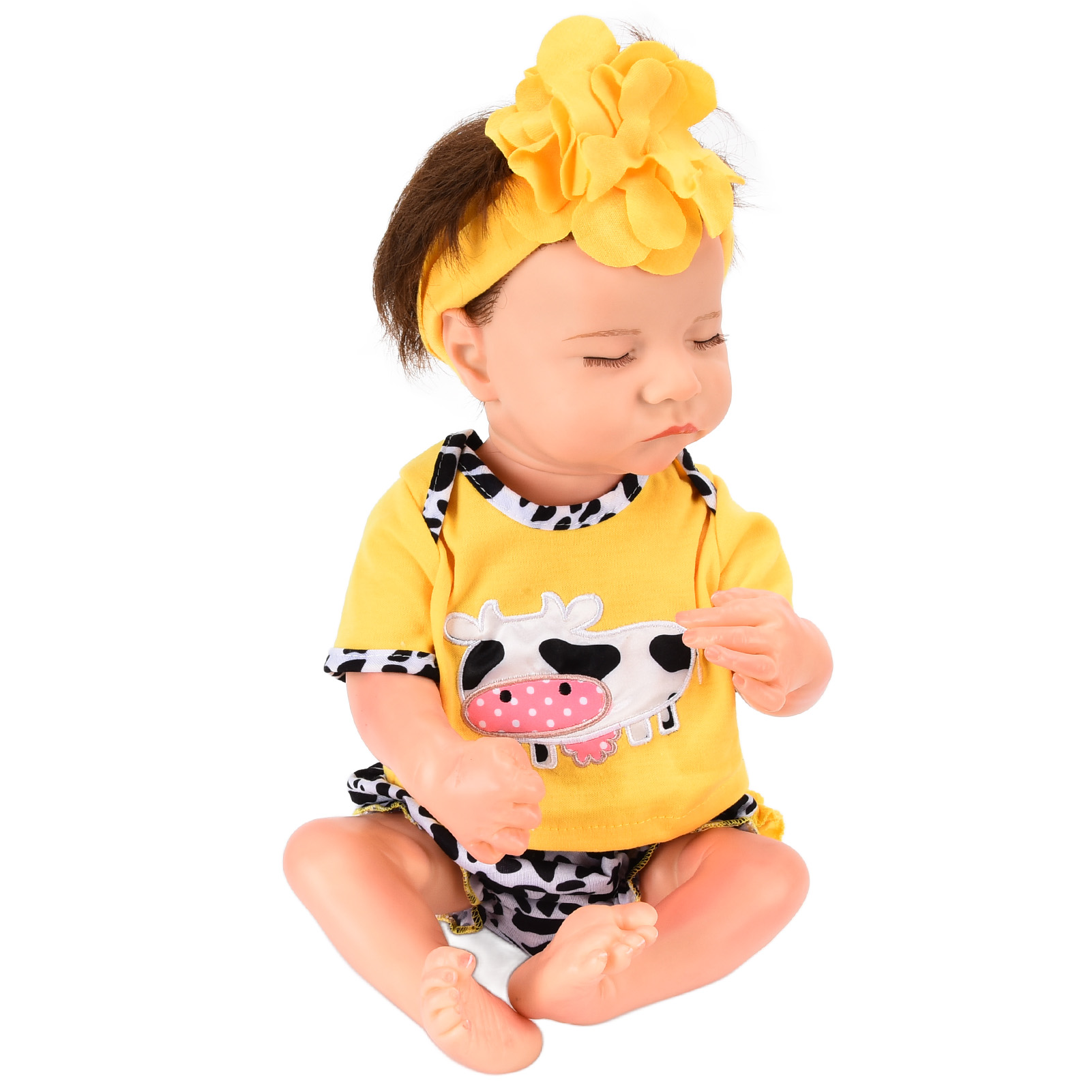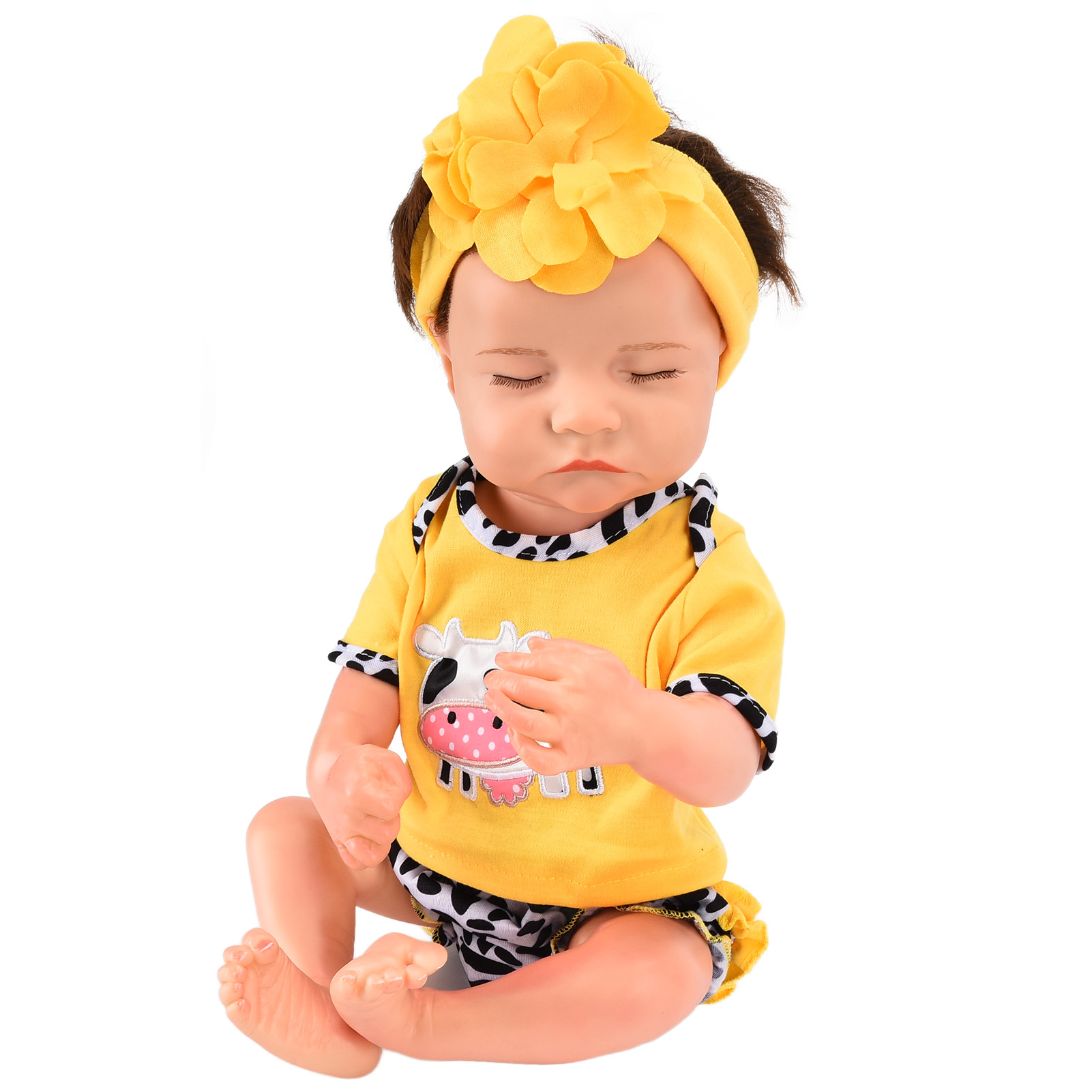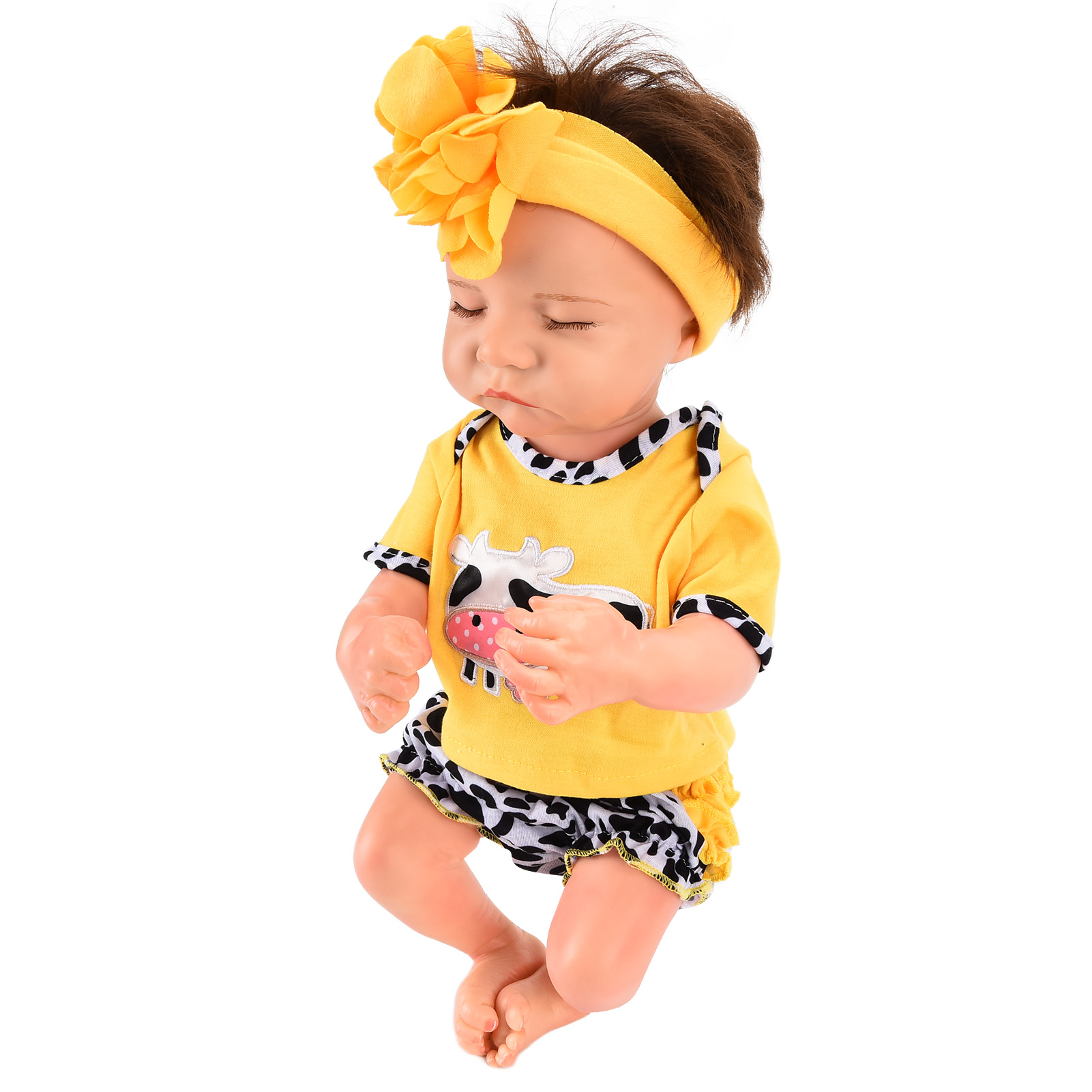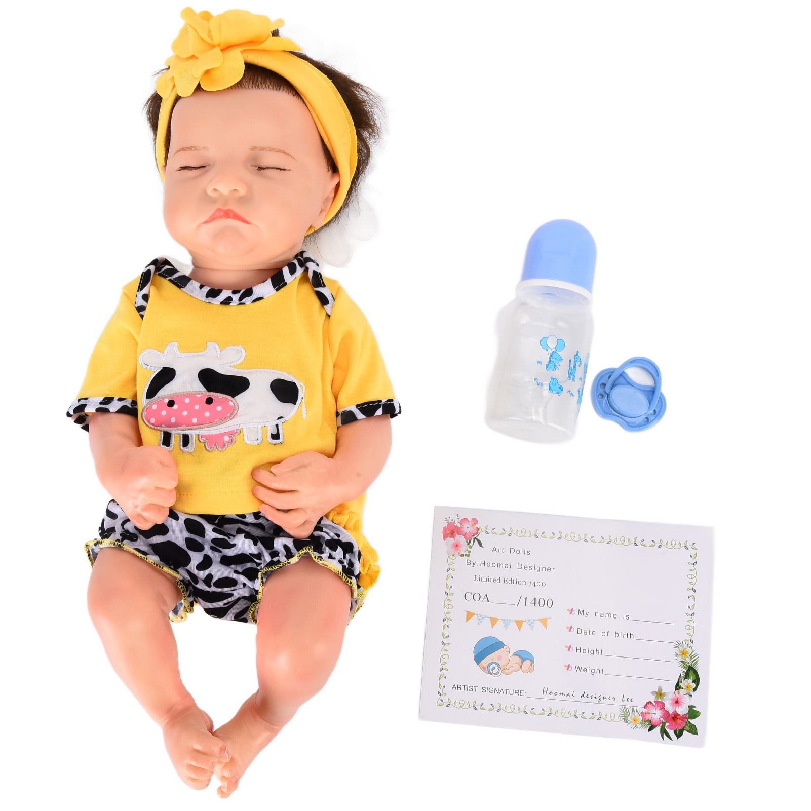 1、Vinyl Reborn Doll: The reborn doll adopts vinyl material, so it can be showered or washed. 18 inch (from head to toe) infant girl doll, overall looks lifelike. 2、Dress Up The Doll: Can be good gift to your children, so that they can play the doll and hug it. Children can dress the dolls according to their wishes. 3、Perfect Gift Choice: Very suitable as a birthday gift or holiday gift to children or doll toy collectors, they will like it. Lovely and delicate appearance, can be wonderful home decoration. 4、Wide Range Of Application: Applicable for props for preschool activities, training props for pregnancy and childbirth, practical training props for expectant mothers, etc. 5、Accompany Children: Baby doll will motivate children's imagination and encourage them to take responsibility in daily life, beneficial for the development of the child's personality.