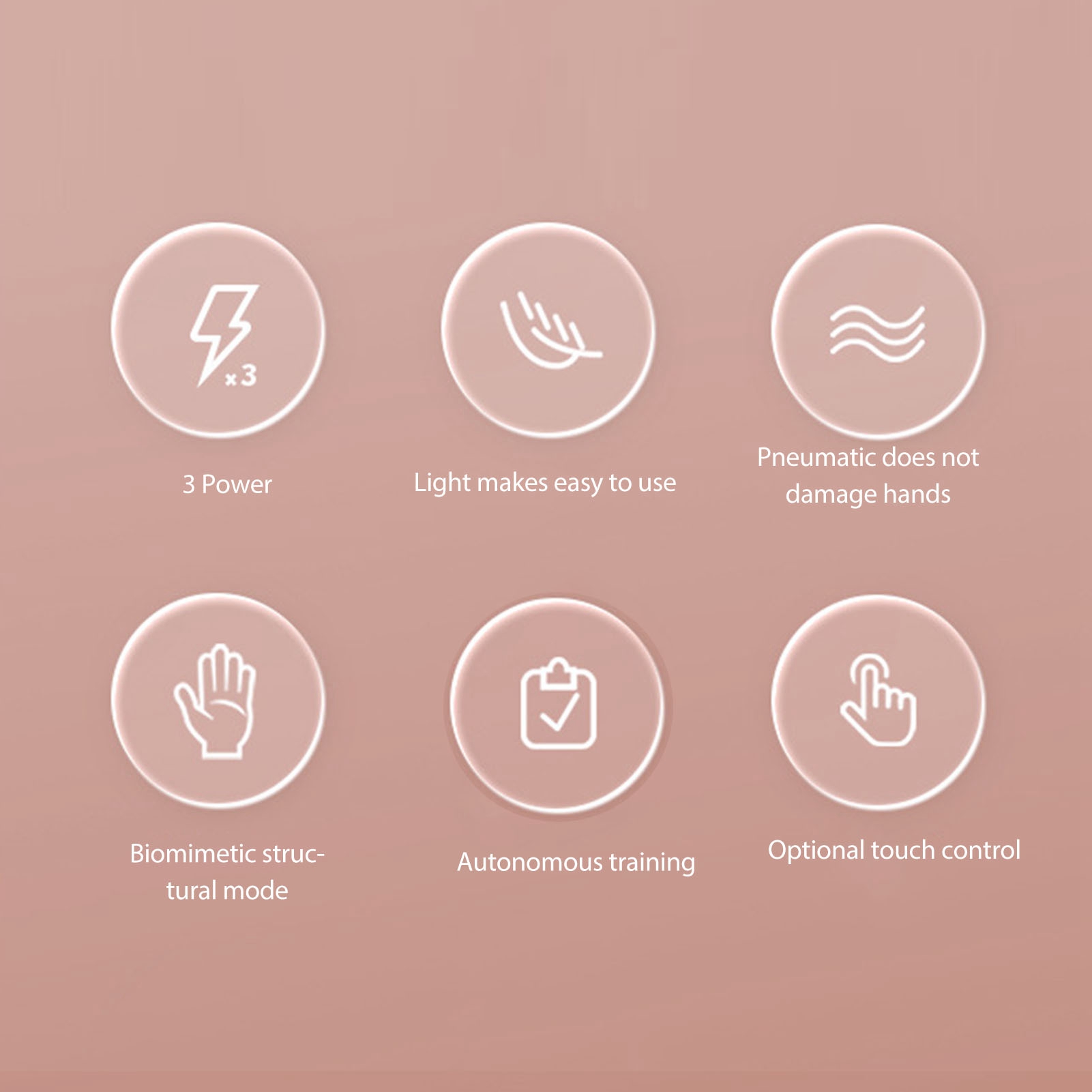 1、Smart Rehabilitation: The intelligent robot glove offers training programs designed specifically for individual needs and progress, guaranteeing the best possible rehabilitation outcomes. It is an ideal tool for hand function restoration training in hemiplegic patients. 2、Real Time Feedback: With sophisticated sensors and advanced algorithms, the glove offers immediate feedback on hand movements, promoting proper technique and maximizing the efficiency of every exercise. 3、Intuitive Interface: Rehabilitation glove is designed with a user friendly interface and simple controls, making it accessible for healthcare professionals and patients to use comfortably in their own homes. 4、Enhanced Rehabilitation Efficiency: By facilitating frequent rehabilitation training and ensuring uninterrupted sessions, the glove not only accelerates the recovery of hand function but also enhances the effectiveness of treatment. 5、Ideal Present: Rehabilitation robot gloves, constructed with durable plastic and fabric materials, are a long lasting gift that promotes hand recovery. They make an excellent choice for your loved ones, supporting their hand recovery journey effectively.