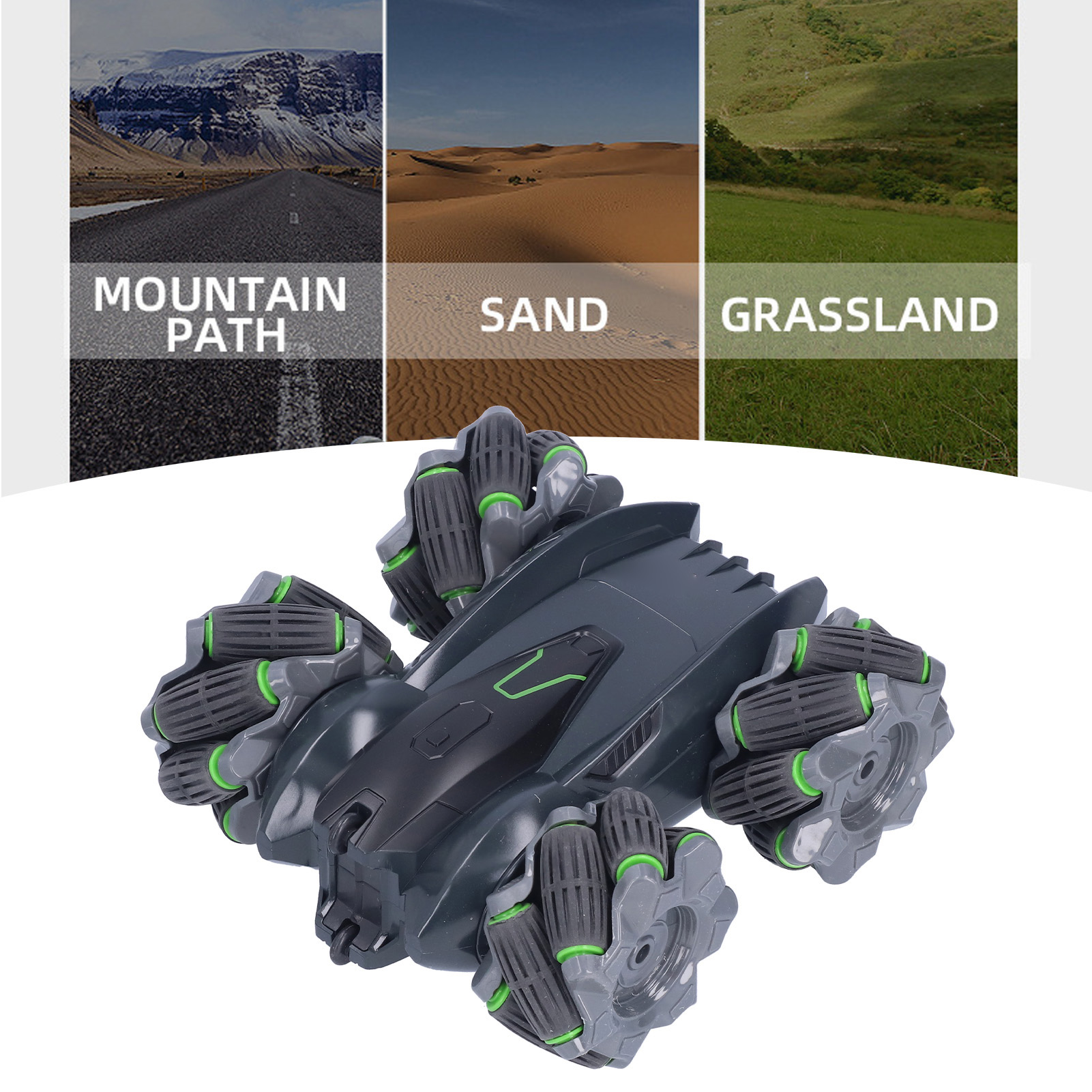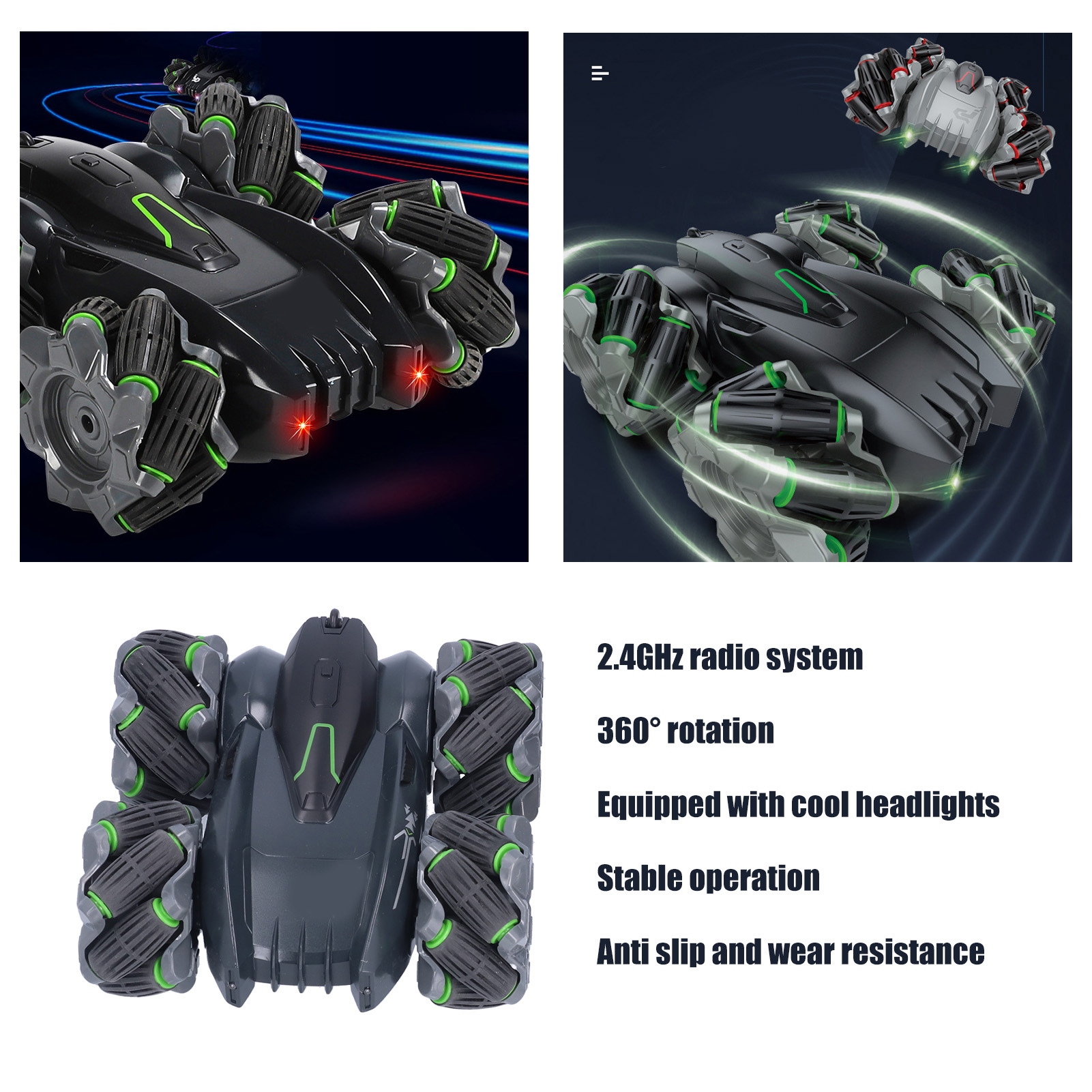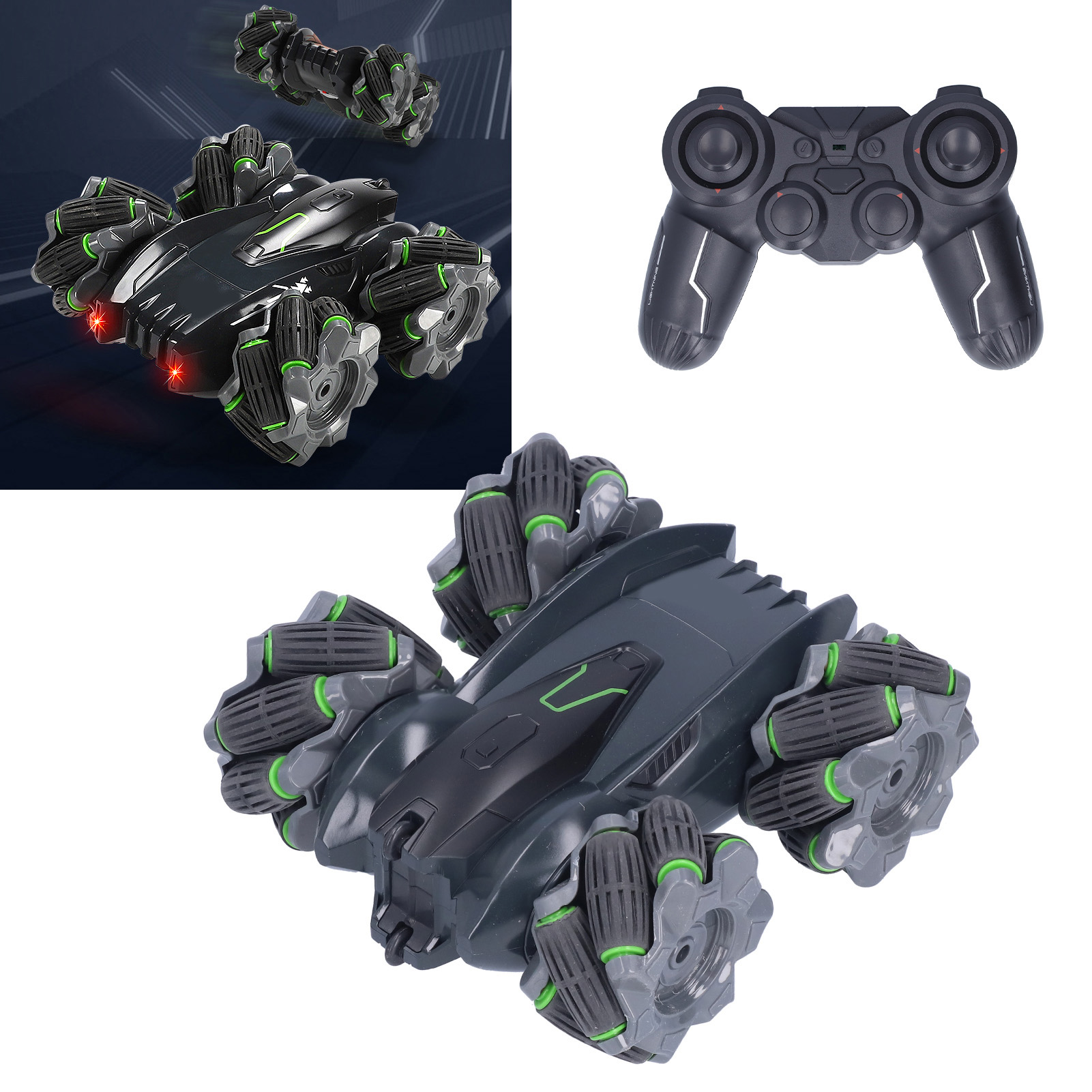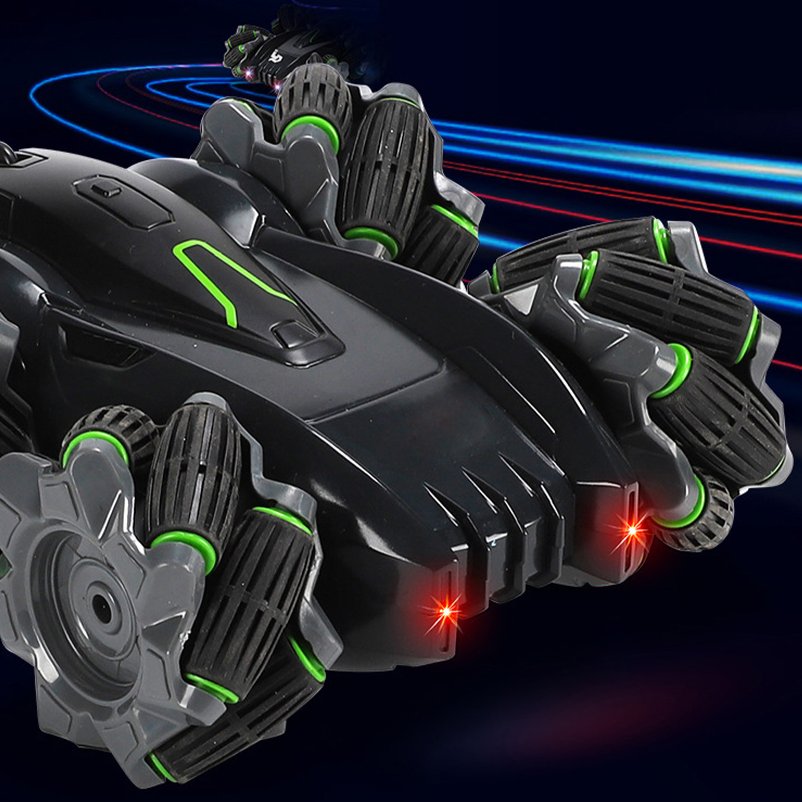 1、[ High Speed] The powerful motor achieves high speed and impressive climbing ability. 2.4GHz radio system with strong anti interference ability and control distance up to 50m 2、[ 360 ° Easy Drift] The mechanical wheel can realize 360 ° rotation, translation, sliding and tail swing drift stunt operations 3、[ Cool Headlights] Equipped with cool headlights, accompanied by car driving sound effect 4、[Stable Operation] Double sided seamless switching drive and four‑wheel drive system, stable operation 5、[Wear Resistant] Anti skid and wear resistant tires produce considerable grip on the ground