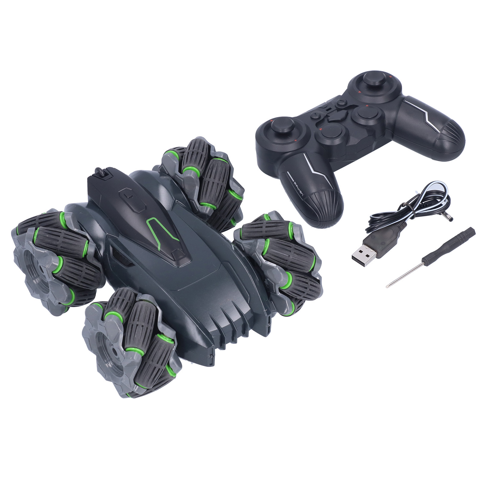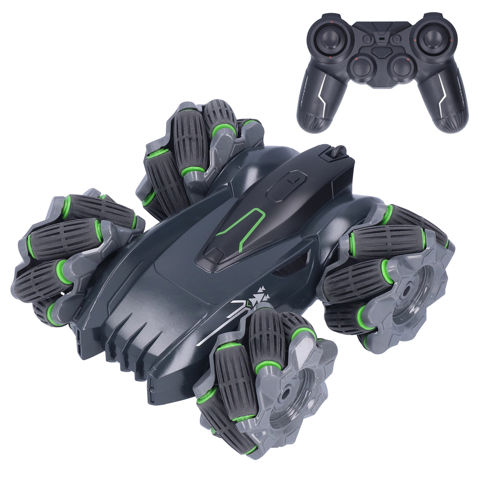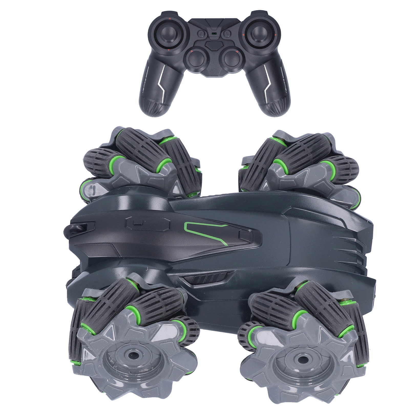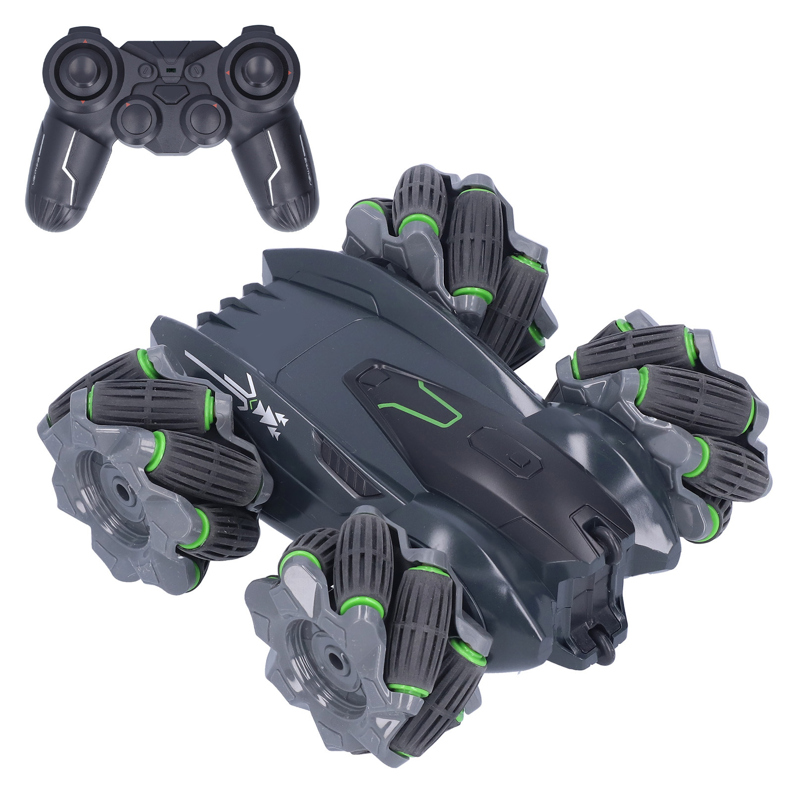 1、[ High Speed] The powerful motor achieves high speed and impressive climbing ability. 2.4GHz radio system with strong anti interference ability and control distance up to 50m 2、[ 360 ° Easy Drift] The mechanical wheel can realize 360 ° rotation, translation, sliding and tail swing drift stunt operations 3、[ Cool Headlights] Equipped with cool headlights, accompanied by car driving sound effect 4、[Stable Operation] Double sided seamless switching drive and four‑wheel drive system, stable operation 5、[Wear Resistant] Anti skid and wear resistant tires produce considerable grip on the ground