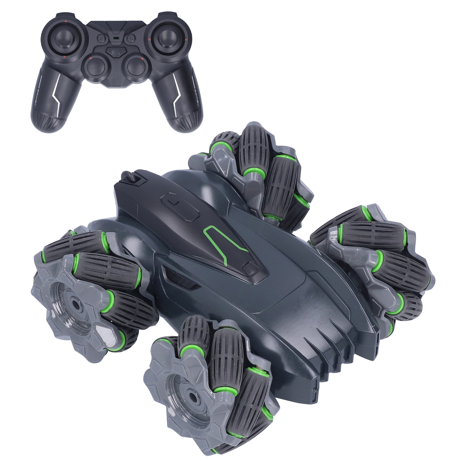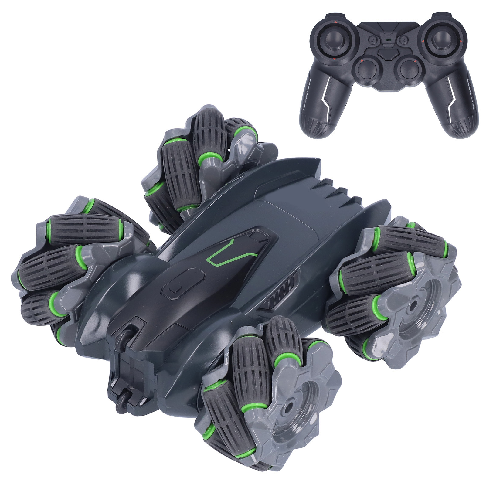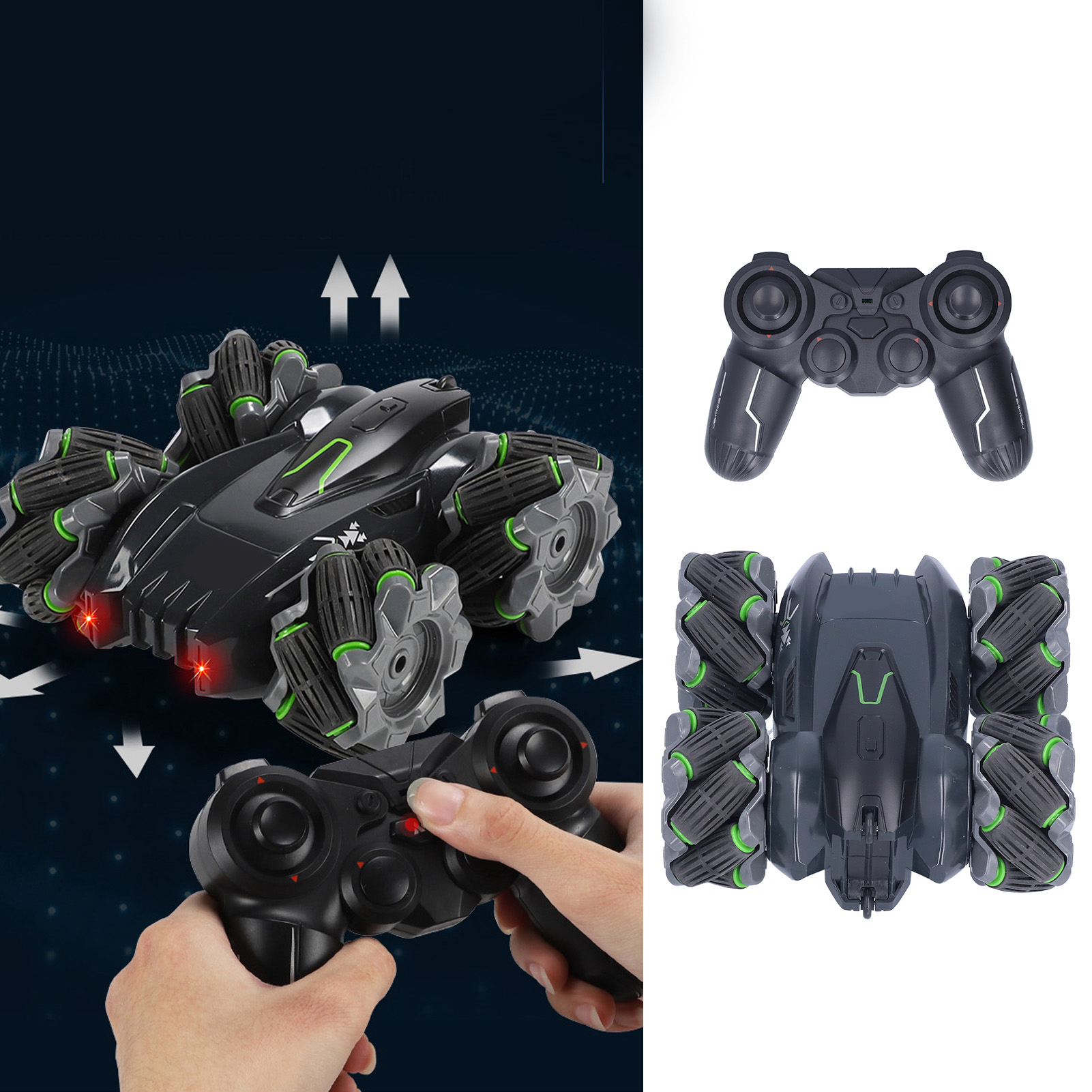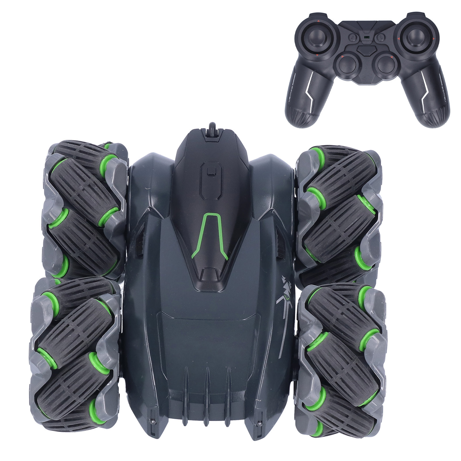 1、[ High Speed] The powerful motor achieves high speed and impressive climbing ability. 2.4GHz radio system with strong anti interference ability and control distance up to 50m 2、[ 360 ° Easy Drift] The mechanical wheel can realize 360 ° rotation, translation, sliding and tail swing drift stunt operations 3、[ Cool Headlights] Equipped with cool headlights, accompanied by car driving sound effect 4、[Stable Operation] Double sided seamless switching drive and four‑wheel drive system, stable operation 5、[Wear Resistant] Anti skid and wear resistant tires produce considerable grip on the ground
