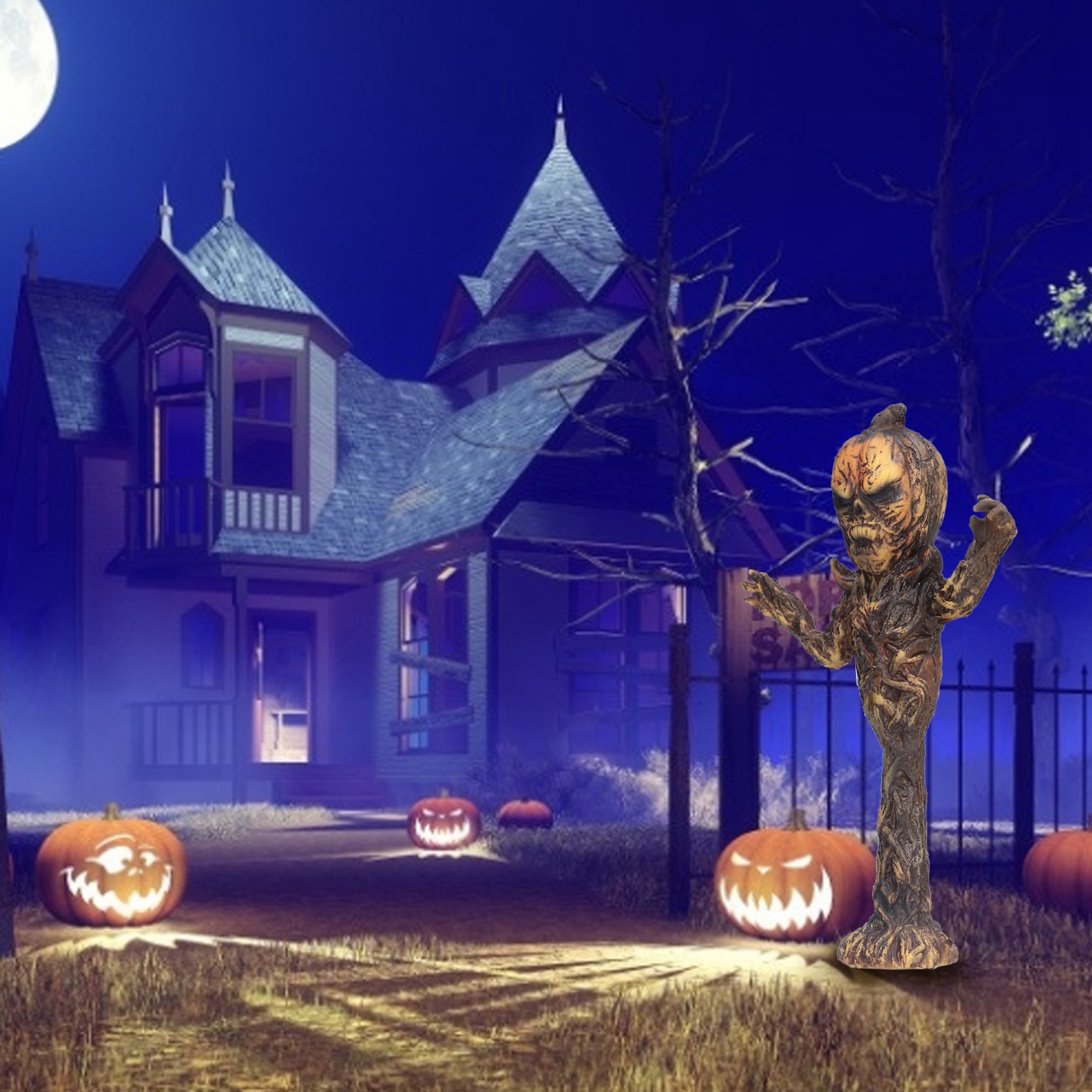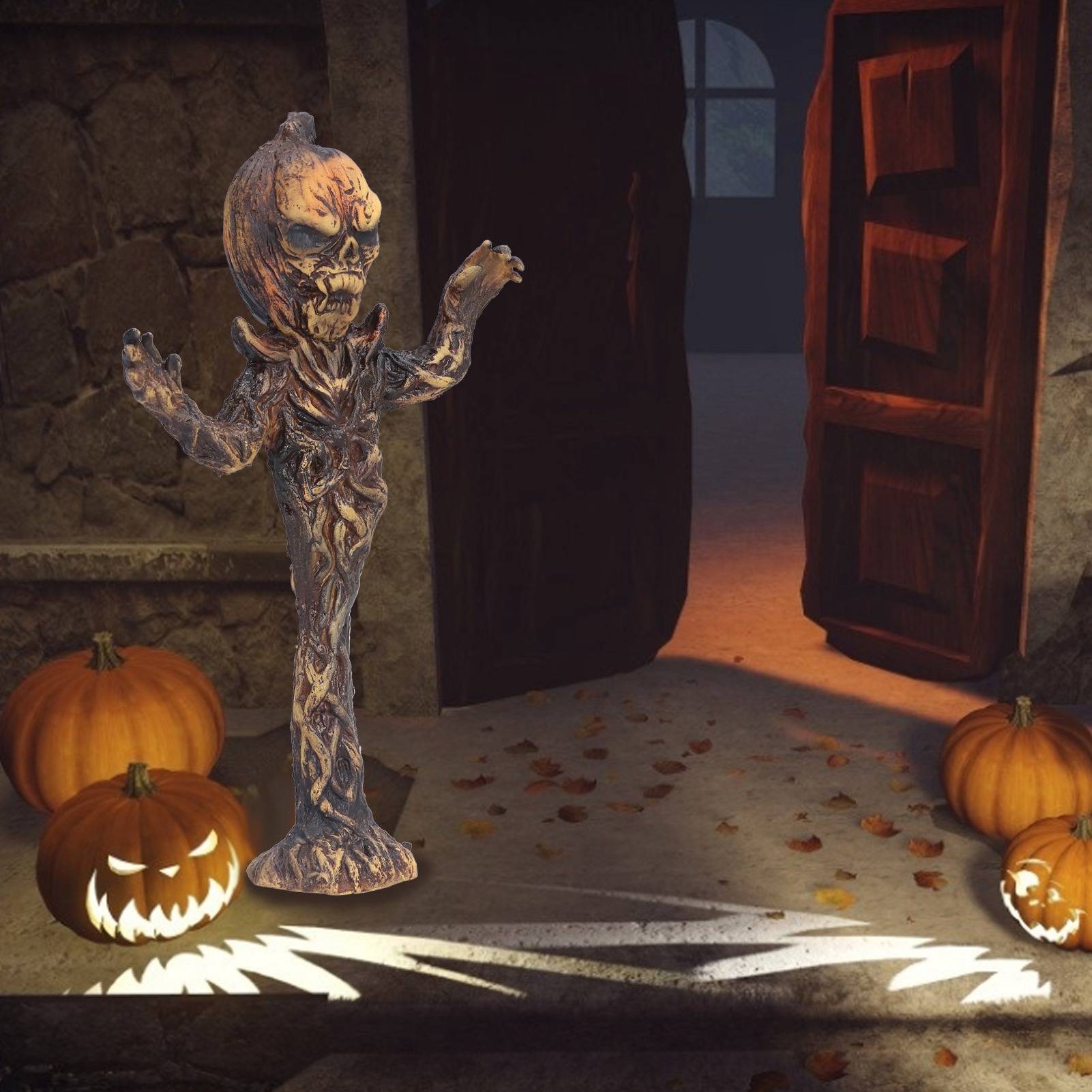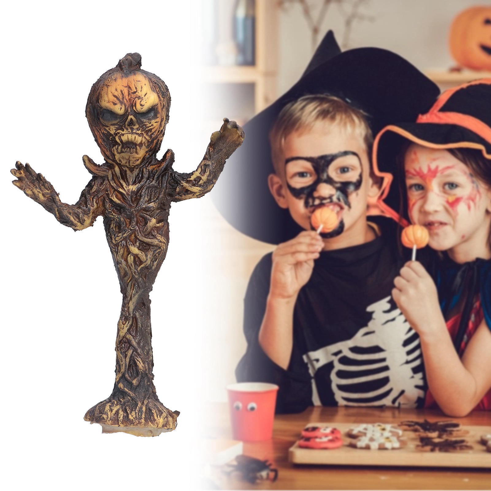 Scary Resin Pumpkin Head Light Ornament Halloween Home Decoration Halloween Sculpture Ornaments#A