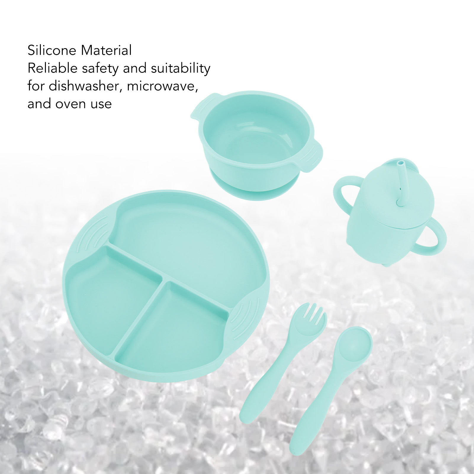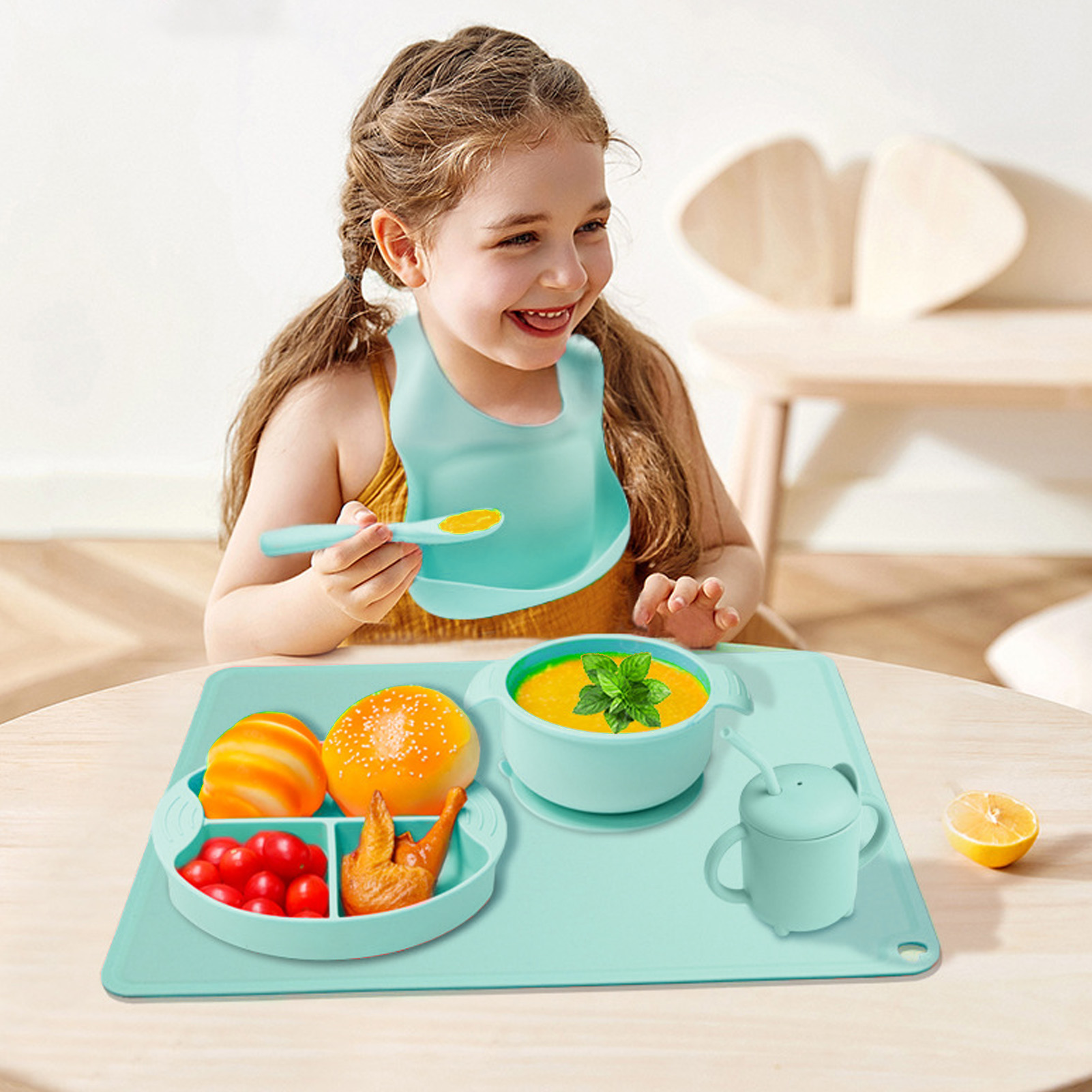1、Silicone Material: This silicone baby feeding set is made from food grade silicone, ensuring reliable safety and suitability for dishwasher, microwave, and oven use. 2、Complete Baby Feeding Tools: This set is an excellent beginner kit for feeding infants and babies, containing everything you need to start feeding your little one. 3、Safe and Soft Material: 100% food grade silicone, non toxic and free from BPA, soft and suitable for use as a teether, won't break or make loud noises if dropped. 4、Easy to Clean: The baby plates and utensils in this set are easy to clean, simply wash with soap and water or run through the dishwasher to keep them clean. 5、Strong Suction Button: The bottom of the plates and bowls in this set have excellent suction, helping to keep them in place during mealtime. 6、Ideal Gift: This baby feeding tool set is a great choice as a gift for babies, perfect for table training and fosters independence.