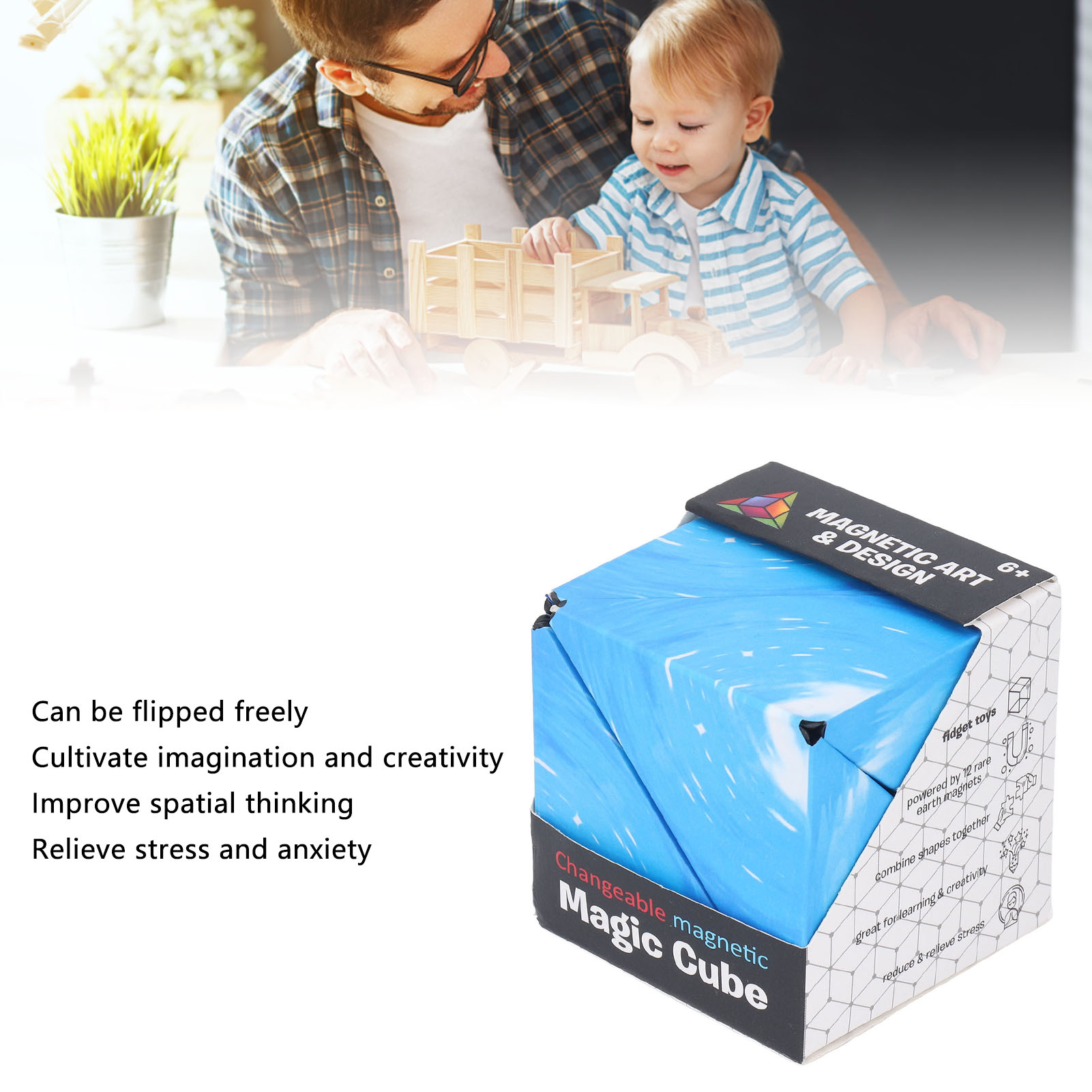 1、Shape Transform Puzzle: Features a powerful internal magnet system, the puzzle can transform into over 70 shapes, make you enjoy hours of challenge fun. 2、Spatial Thinking: Bright color, overall looks exquisite, beautiful and practical. It can be flipped freely, helping to cultivate imagination and creativity, and improve spatial thinking. 3、Stress Relief: Especially suitable for people who are stressed at study and work, to help relieve stress and anxiety. Smooth surface and mellow corner, will not scratch skin. 4、Multiple Applicable Scenarios: Light weight and in small size, easy to store and carry, can be easily put into your bag, suitable for home, travel, office, etc. 5、ABS Material: Shape shifting box is made of excellent ABS material, safe and eco friendly, firm and sturdy, anti impact and stable, wear resistant and durable.