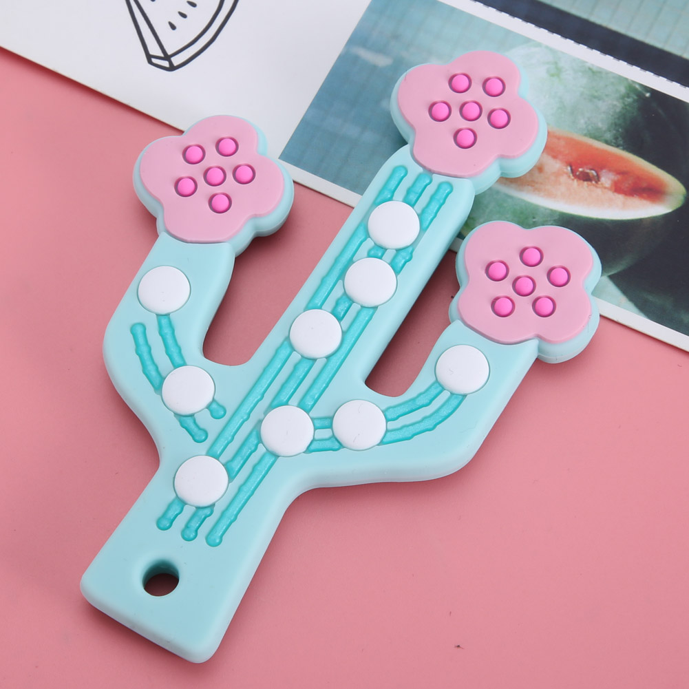 1、Made of food grade silicone material, safe and durable. 2、Soft and non-toxic, help to clean tartar on the teeth, prevent tooth decay. 3、Compact size and ergonomic design, easy to grip for your baby. 4、The bright color and cute plant shape makes to draw your baby's attention to the toy and find it interesting. 5、Easy and convenient to clean with warm water.