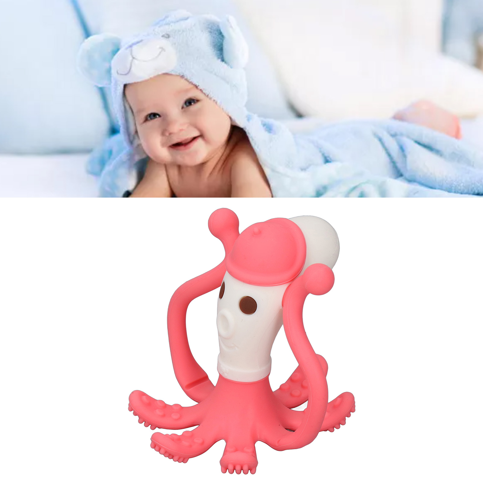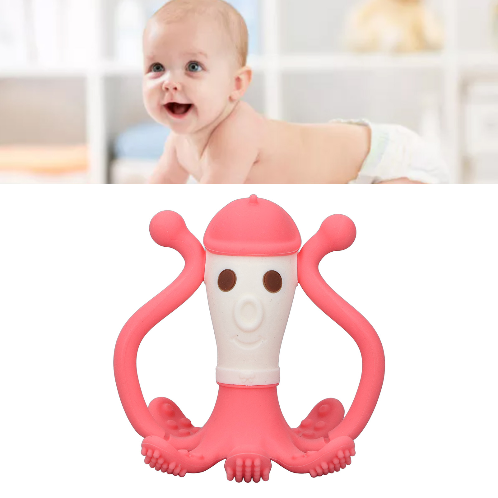 1、Baby Teether: Increases your child's ability to bite, enhances your baby's willingness to eat and meets the physiological needs of teething for a more comfortable teething period. 2、Octopussy Shape: The silicone teether toy is in the shape of an octopus, which is cute and fun, with bright colours that appeal to children. 3、Food Grade Silicone: The baby soothing teether is made from high grade, environmentally friendly food grade silicone that keeps baby's gums and mouth, making it a must have for newborns. 4、Small and Practical: Designed for newborns to fit comfortably in their hands, this silicone training teether is both fun and practical, aiding teething and enhancing baby's sensory skills. 5、Safe and Reliable: Baby teether is easy to clean, wash with warm water and cooking detergent, then rinse with water and wipe off with a clean towel before use.