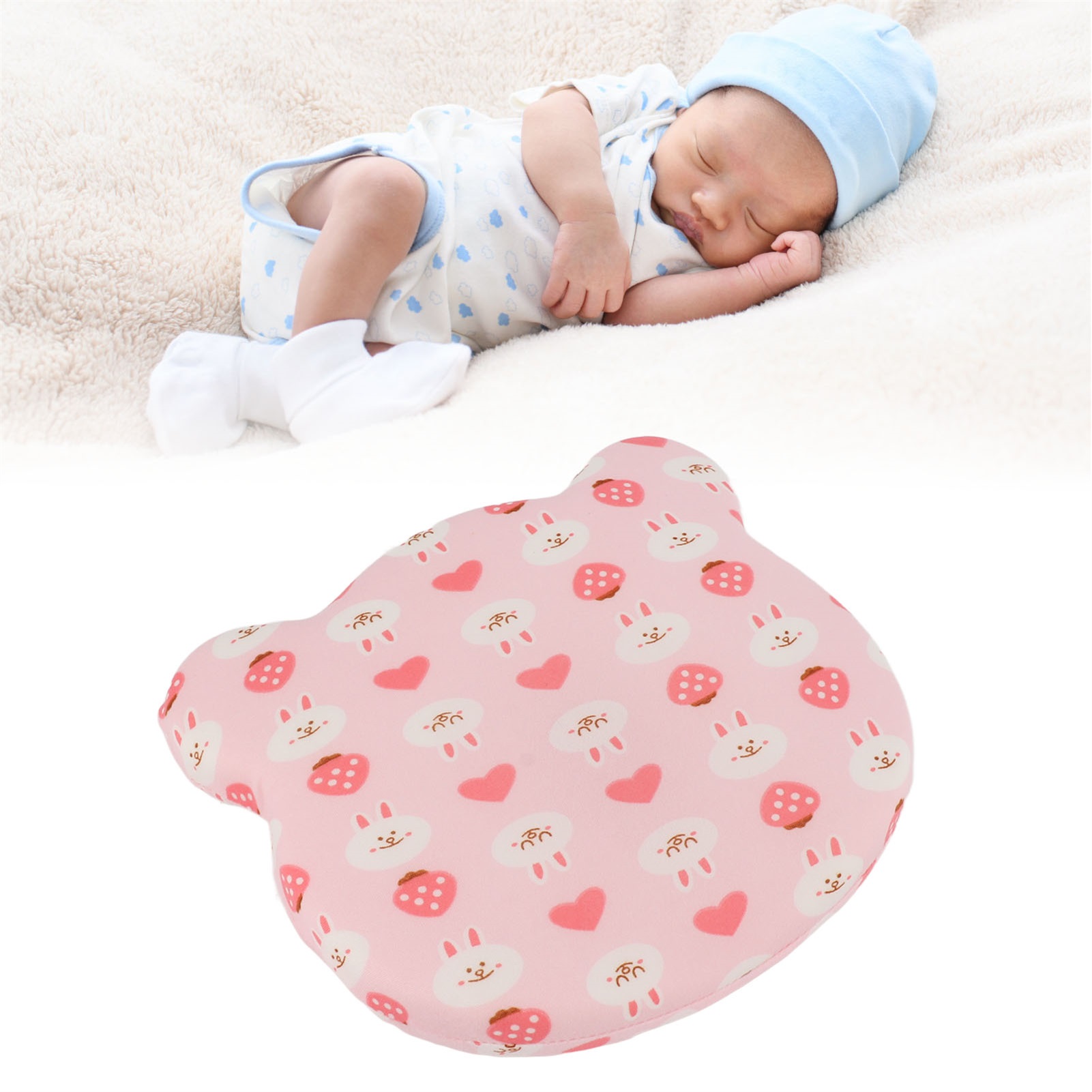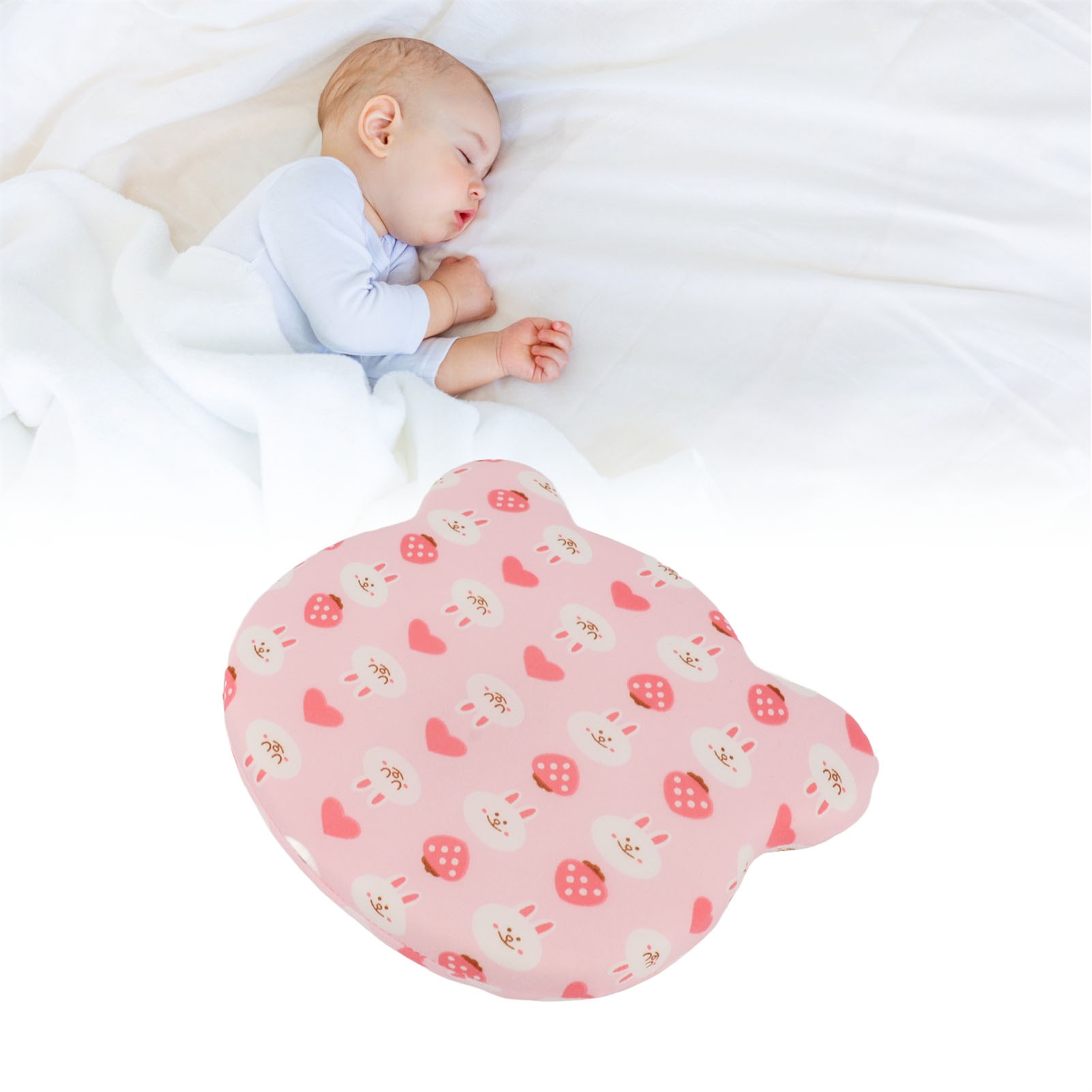 Small Toddler Pillow Removable Memory Foam Core Breathable Baby Head Pillow for 4 Seasons Pink Bunny