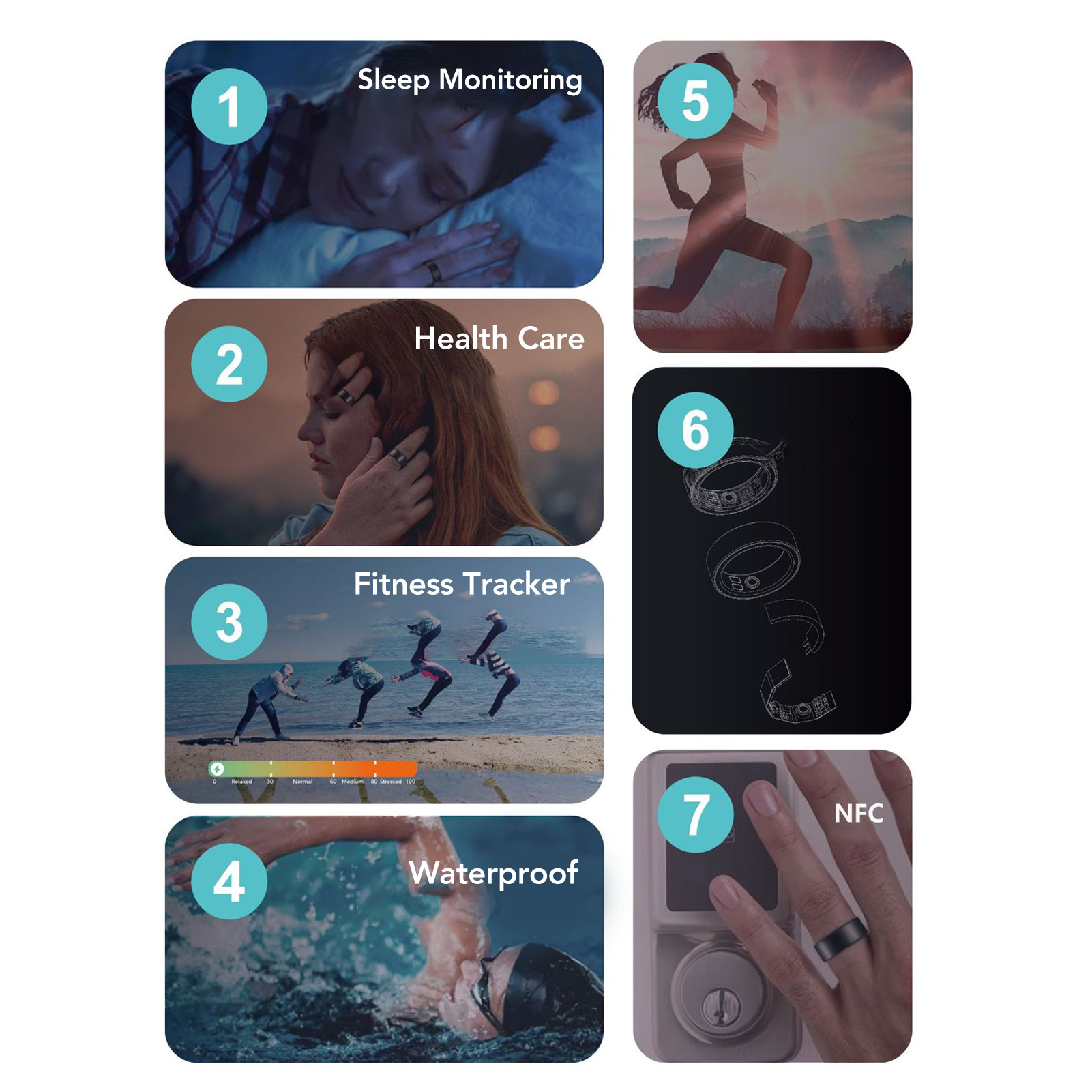 1、Health Care: Smart health ring adopted advanced smart technology to help you monitor your health data in real time, which is an ideal health companion. 2、Improve Sleeping: With its sleep monitoring feature, the health ring tracks the quality of your sleep, which helps to improve your sleep quality at every night. 3、Fitness Tracker: Smart ring health tracker records your movement data and automatically monitors your fitness every half hour, or you can monitor it through an app. 4、Fashion Appearance: Health monitor ring adopted black ring design, stylish and elegant, which can be matched with all clothes, suitable for various place. 5、Multiple Languages: Smart ring supports English, French, Italian, Korean, Japanese and other languages, making it easy to switch languages at any time.
