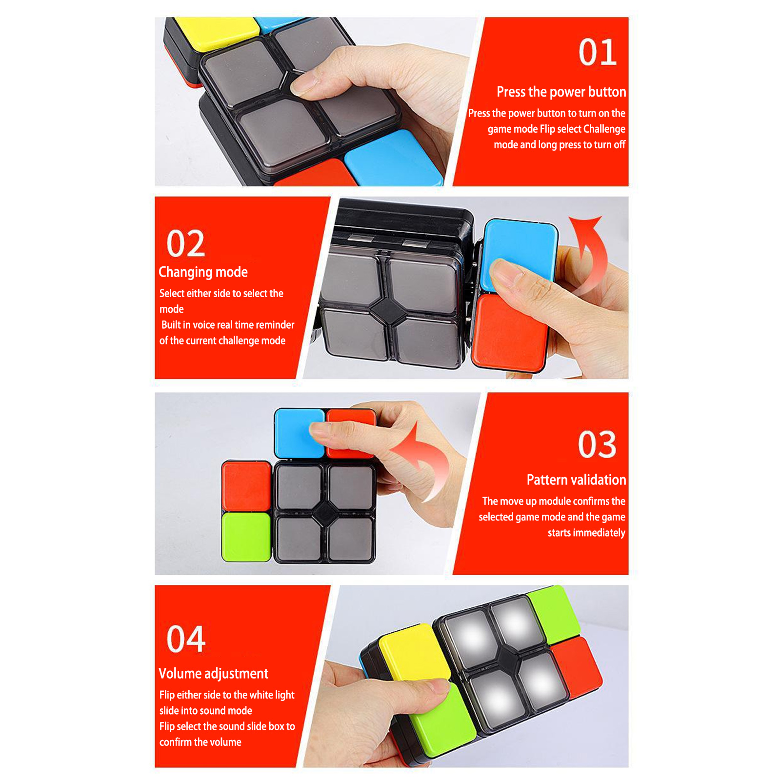 1、DIY Games: It offers a wide range of possibilities and brings unlimited fun. With its features such as lights and sounds, it provides a great opportunity for parent child interaction, challenging puzzles, and stress relief. 2、Flashing Design: By following the light patterns, this toy enhances memory and concentration skills. It requires problems solving abilities, making it a stimulating brain exercise. 3、Relieving Stress: It is an excellent stress relief toy, especially for restlessness, ADD, and ADHD sufferers. It serves as a useful tool for relaxation, allowing individuals to find peace. 4、Portable Design: It is convenient to carry around due to its small size. It fits in your pocket or bag, making it ideal for on the go entertainment. 5、Ideal Gift: It is a simple yet outstanding gift suitable for various scenes like birthdays, Christmas, Thanksgiving, Halloween, New Year, or any other parties, events.