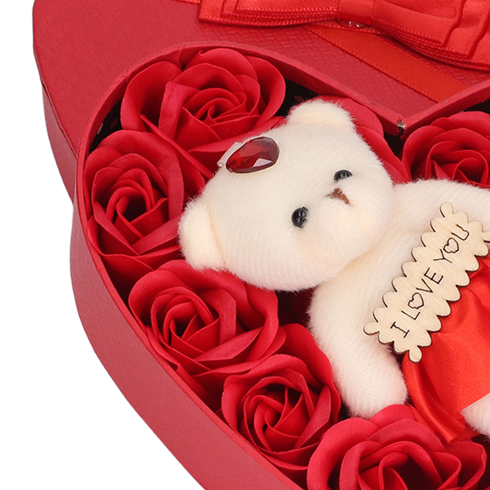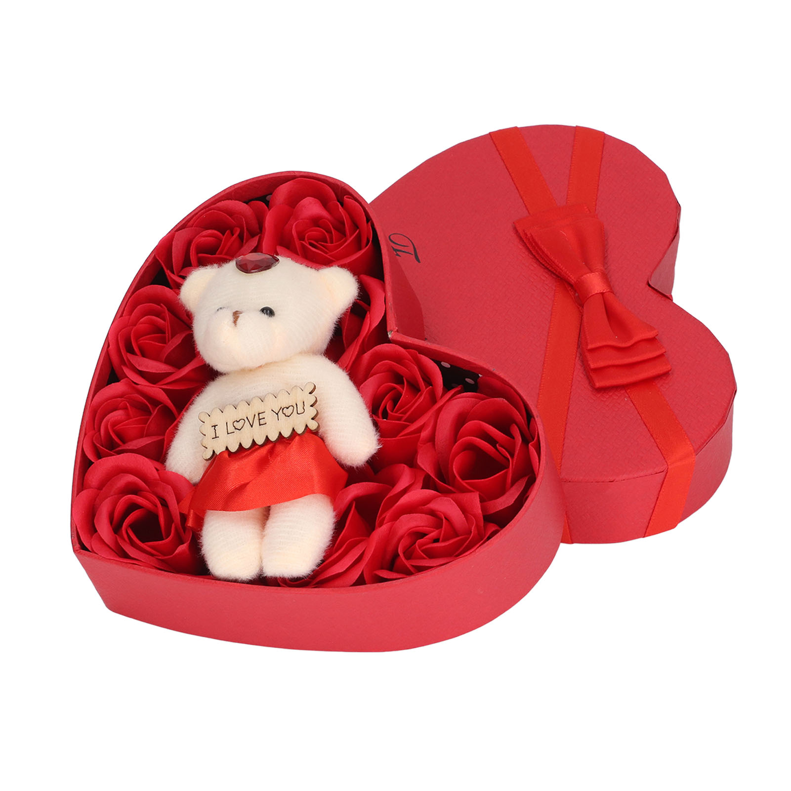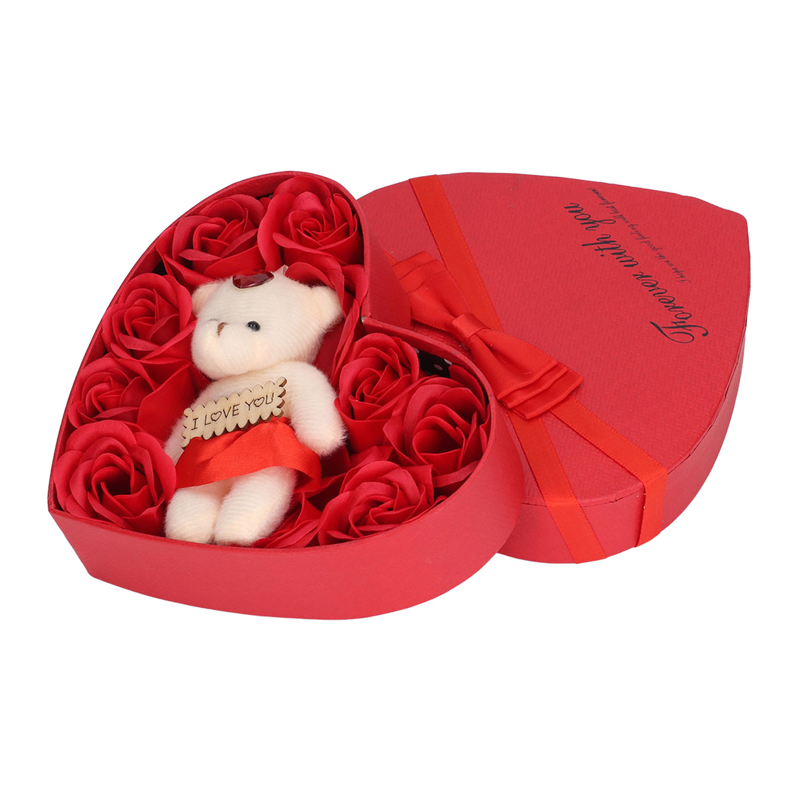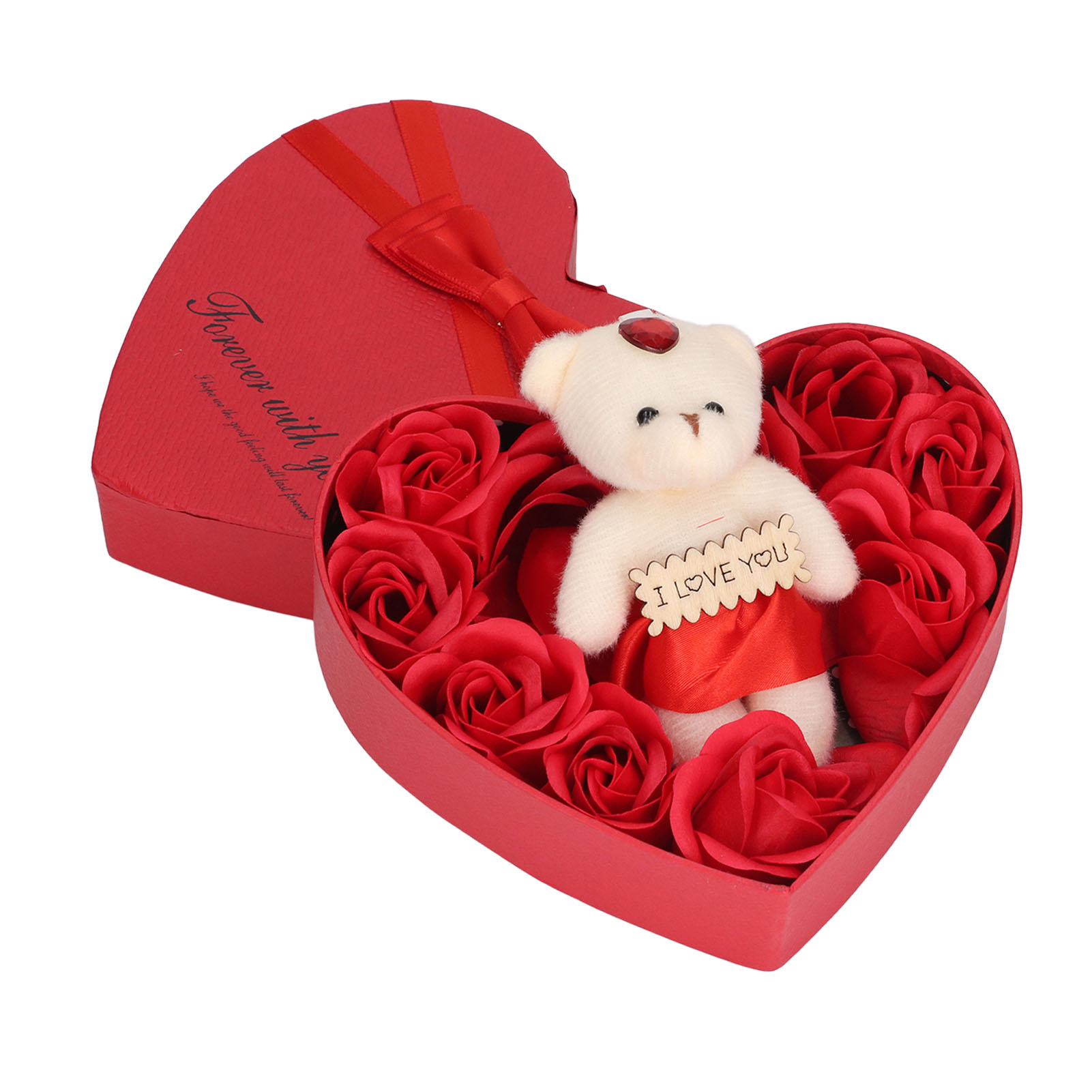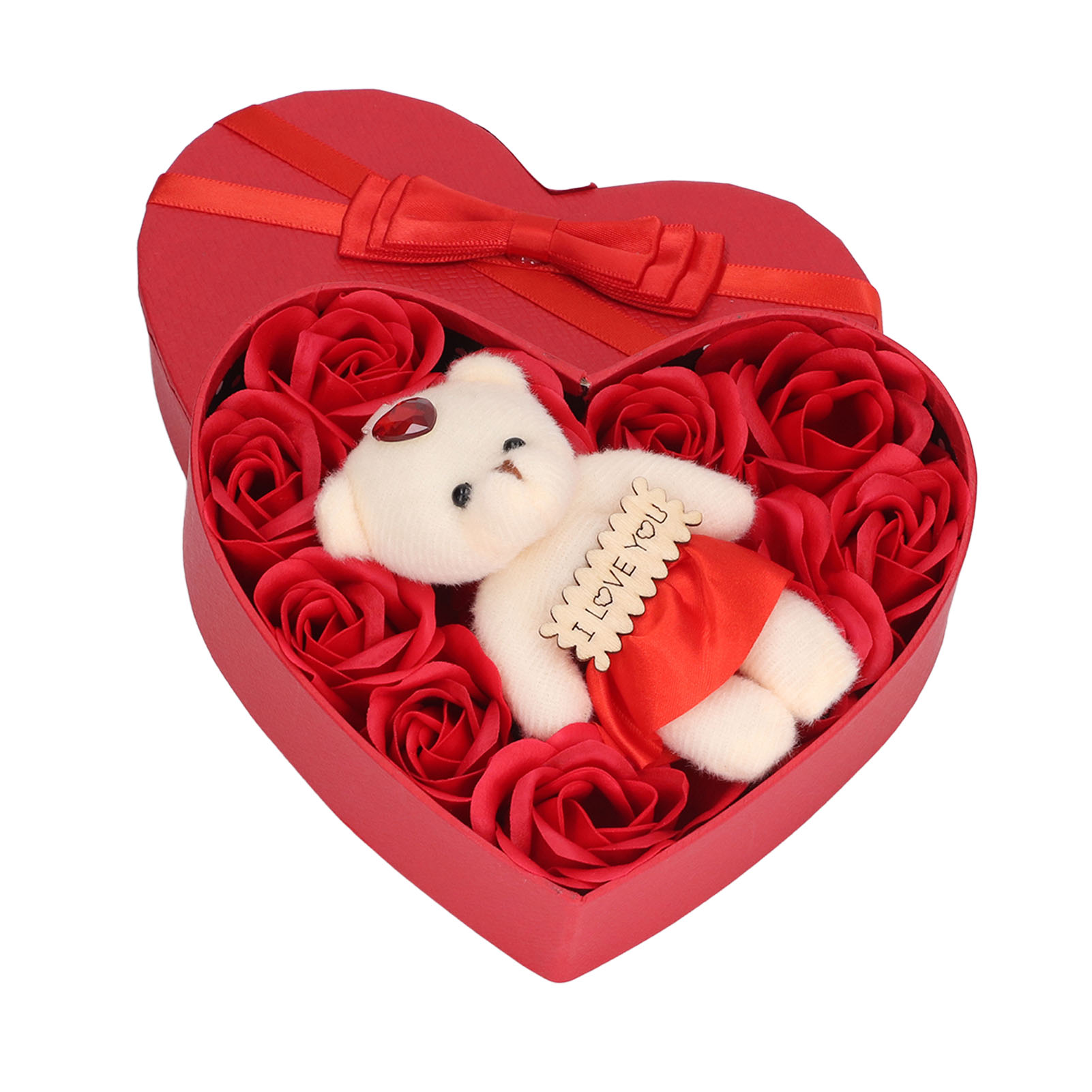 1 x Box of Soap Flower Rose Gift (1 x Heartshaped Box, 10 x Soap Roses, 1 x Bear Doll)