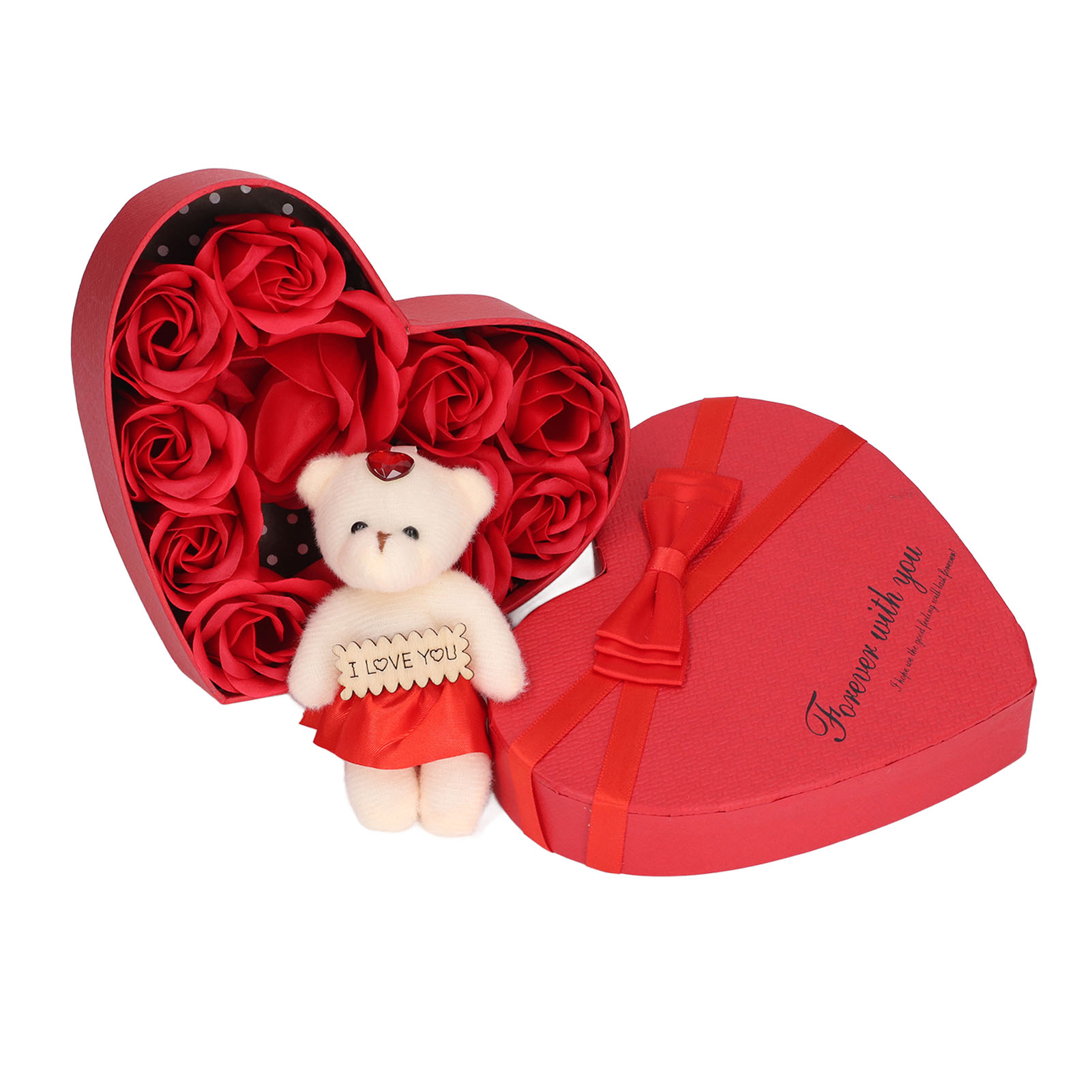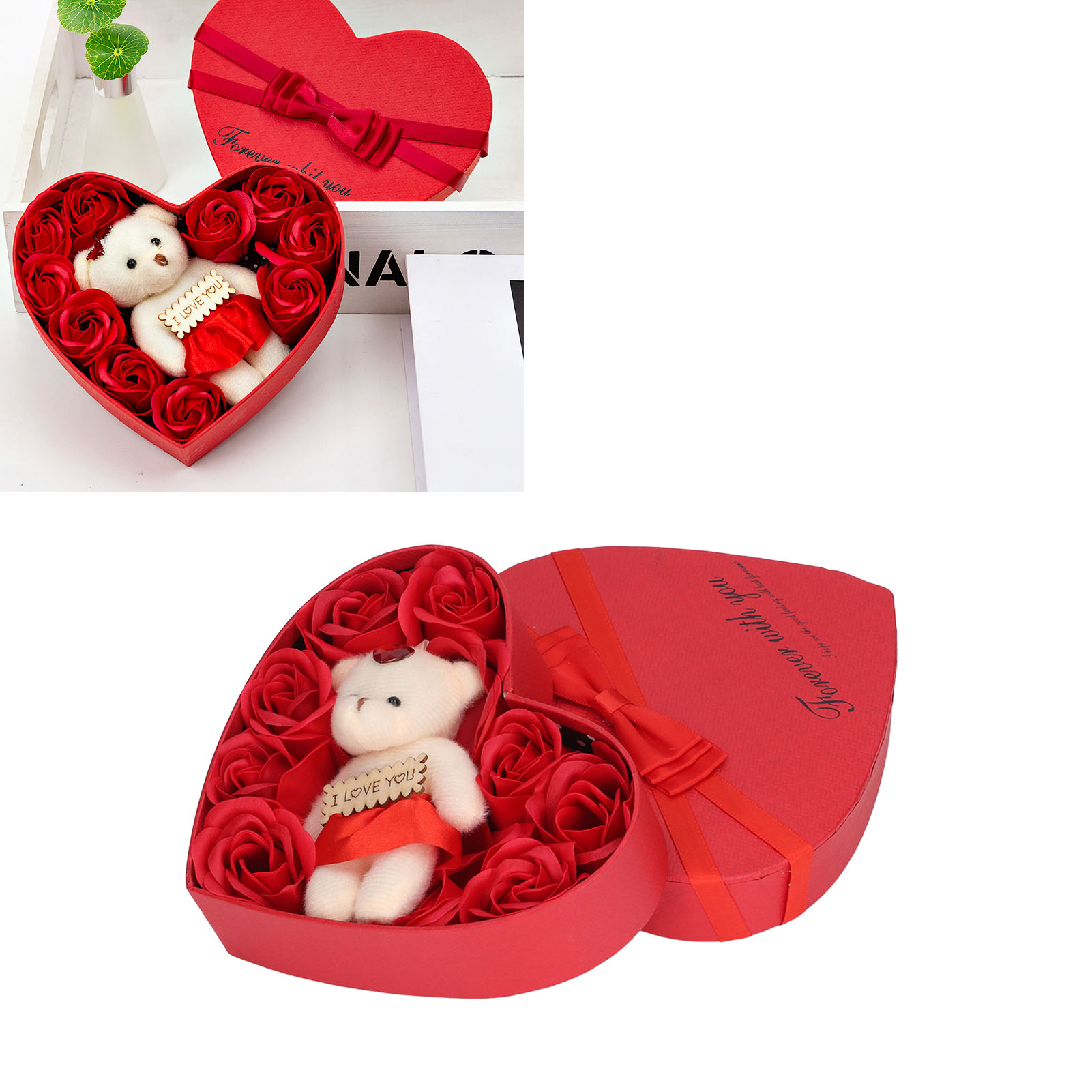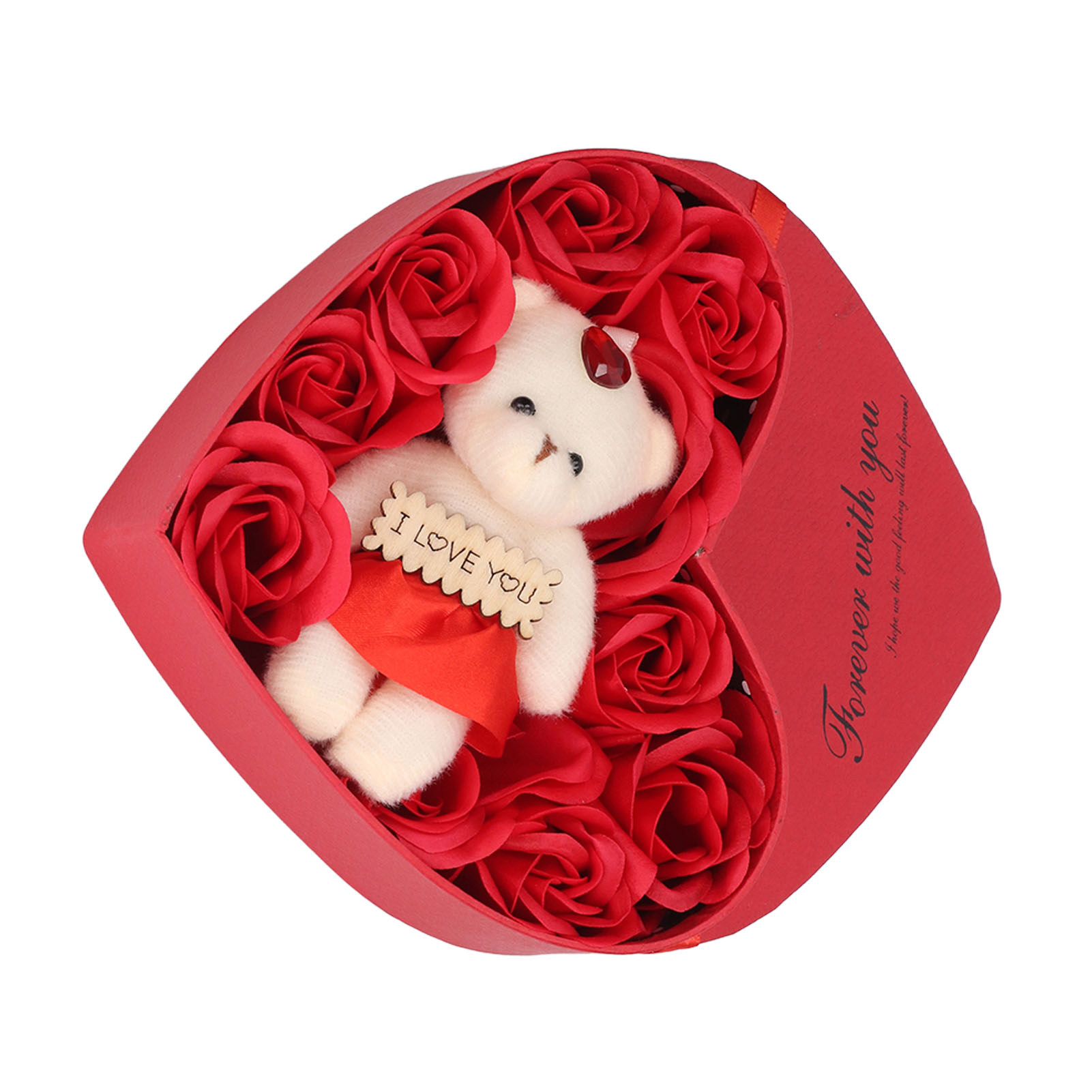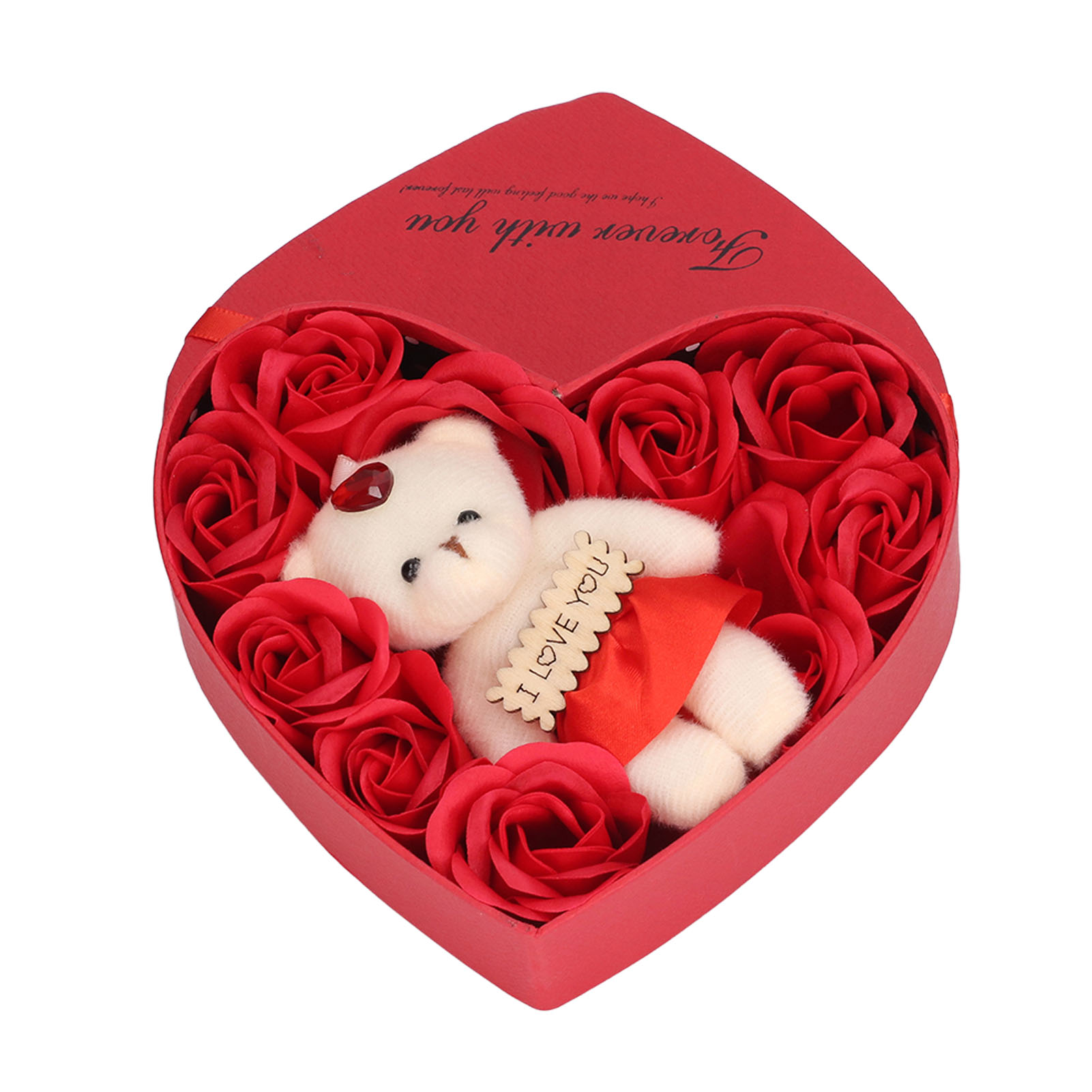 1 x Box of Soap Flower Rose Gift (1 x Heartshaped Box, 10 x Soap Roses, 1 x Bear Doll)