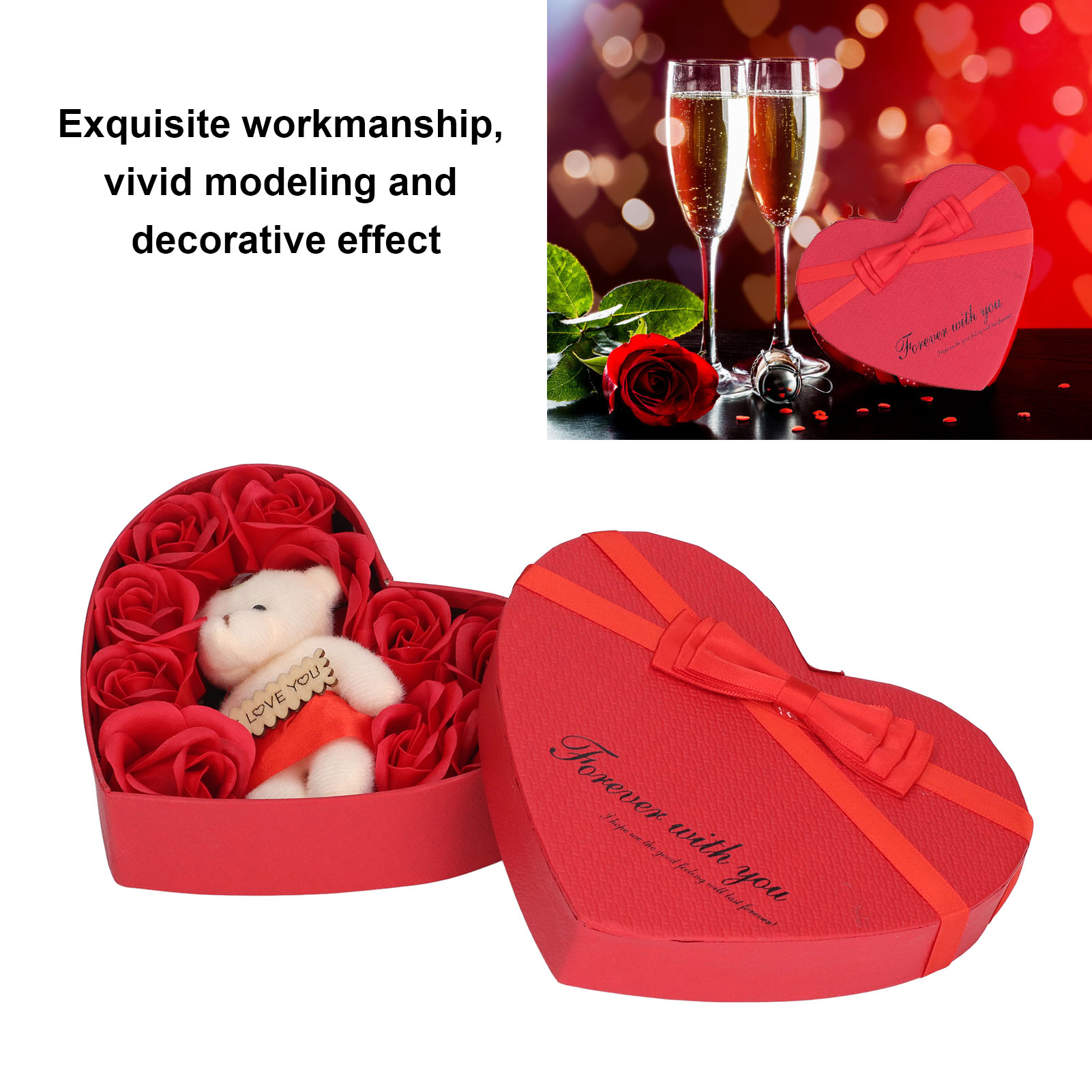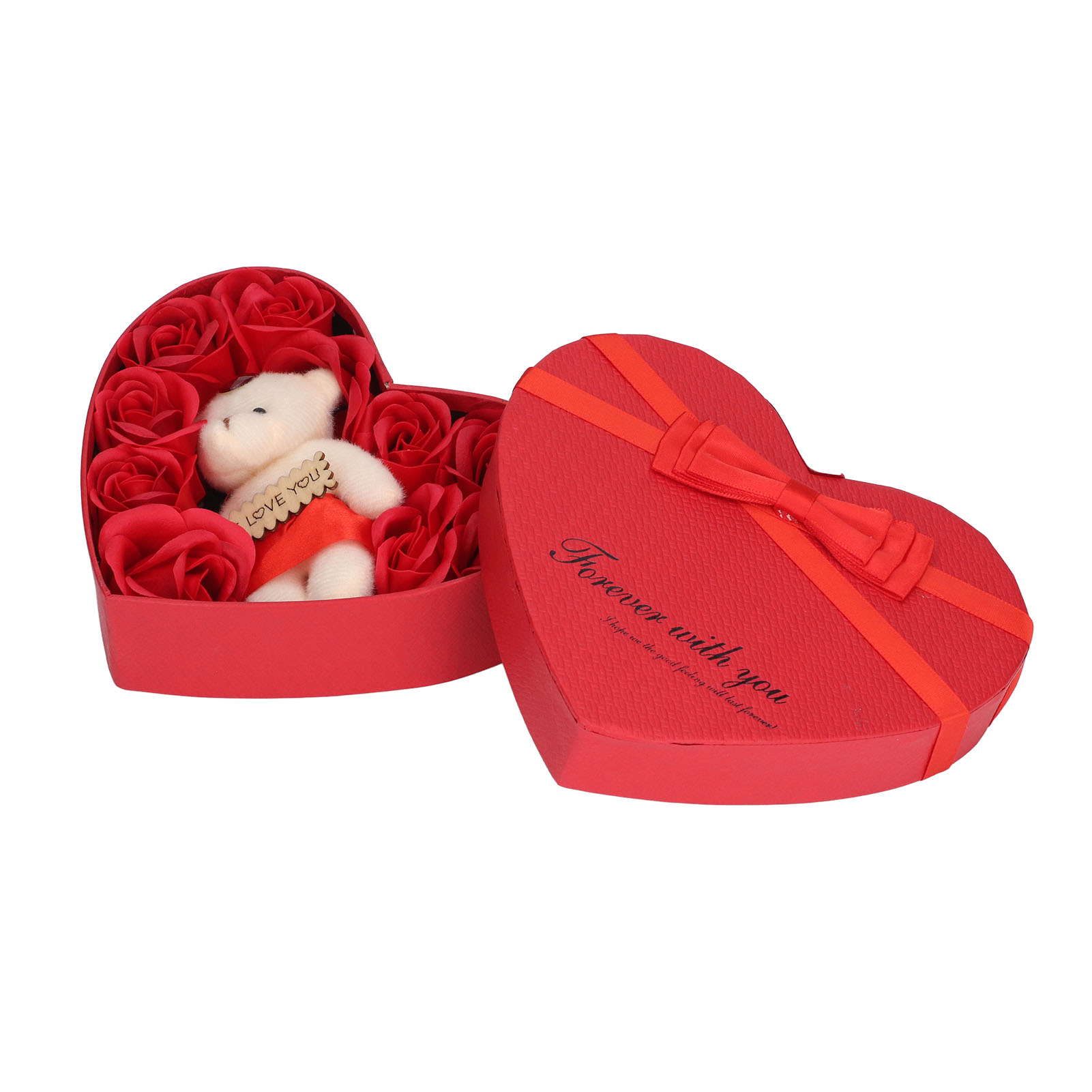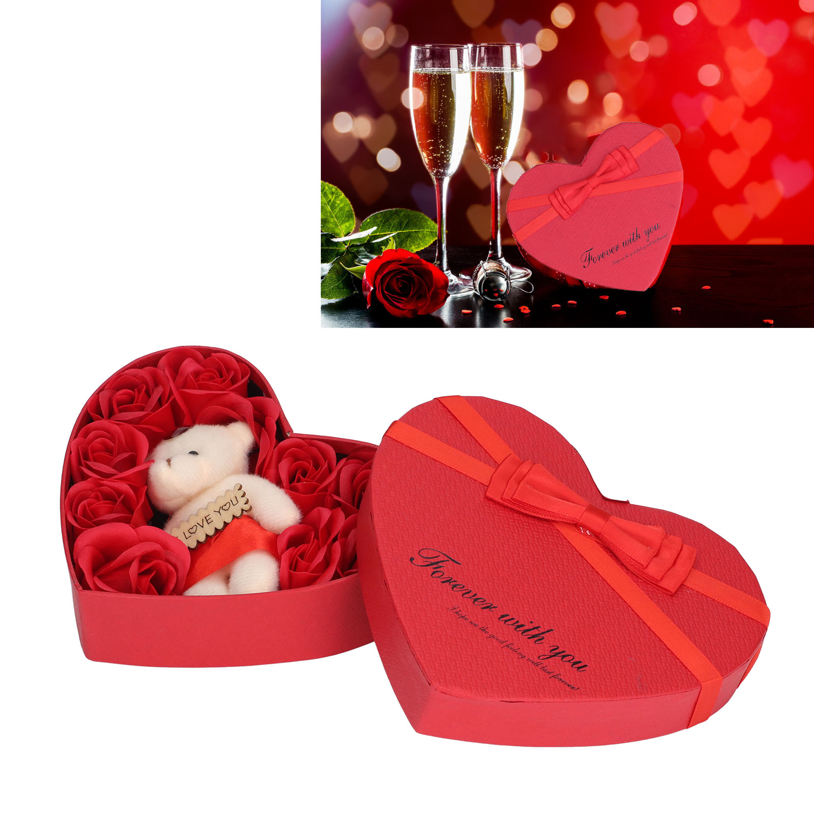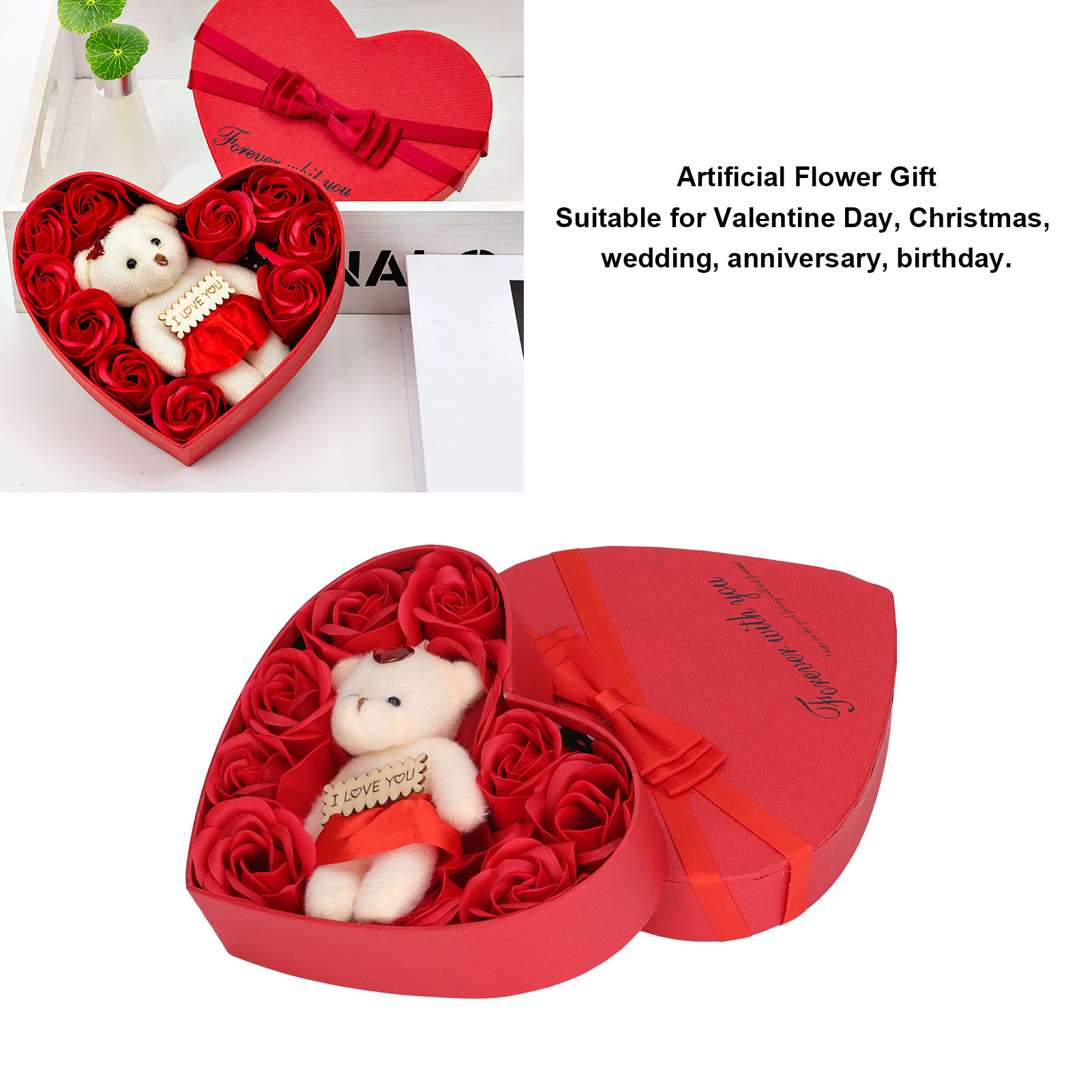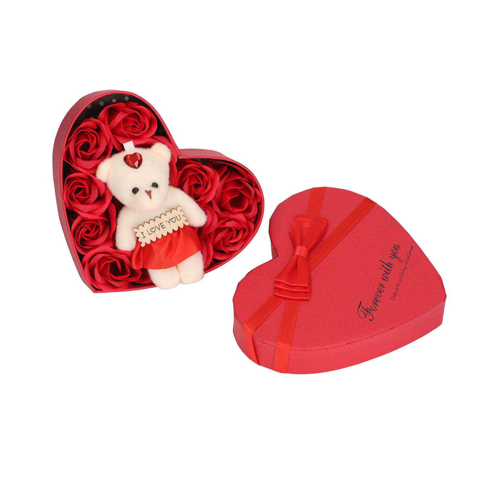 1 x Box of Soap Flower Rose Gift (1 x Heartshaped Box, 10 x Soap Roses, 1 x Bear Doll)