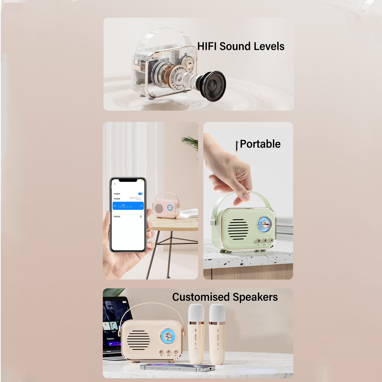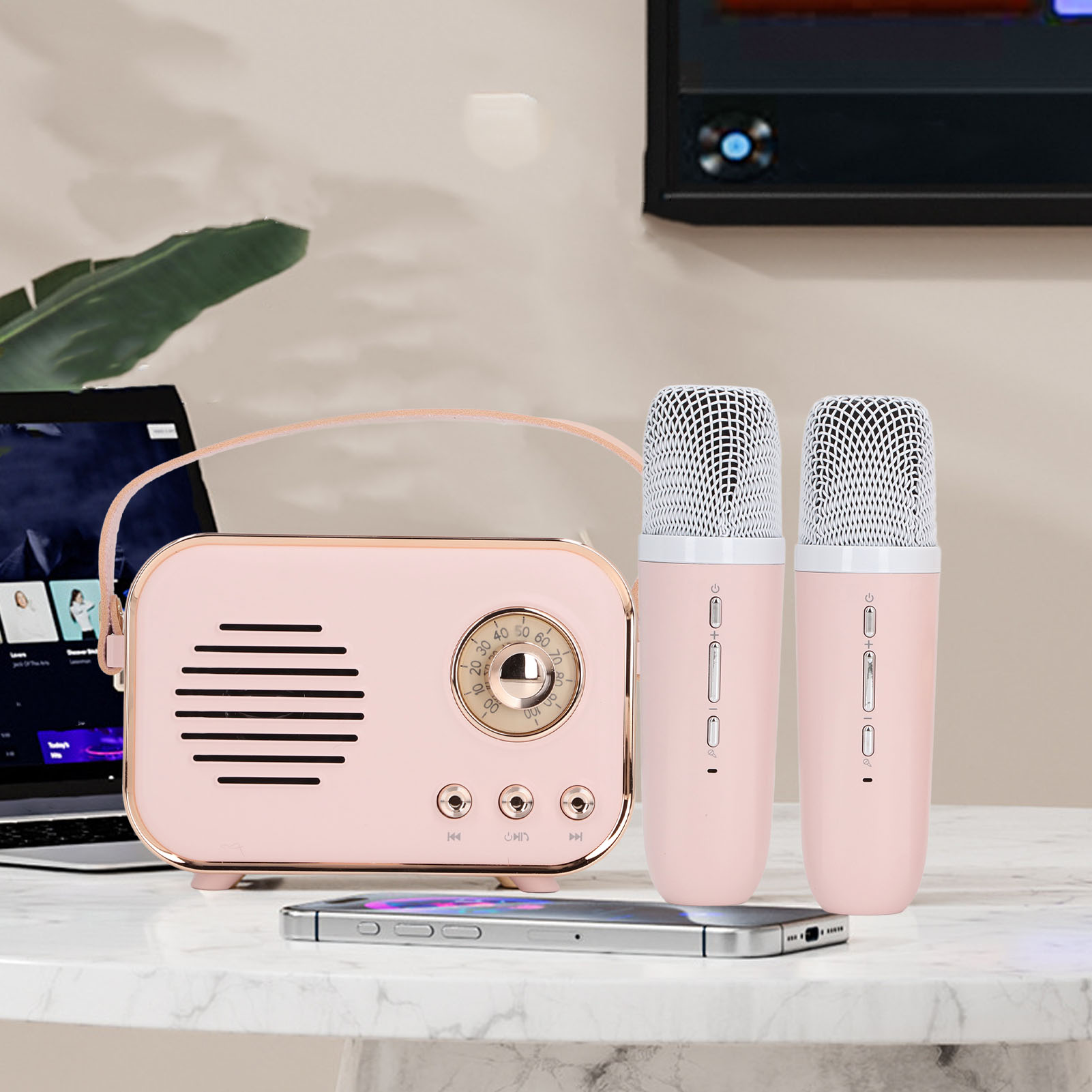 1、Portable: The small BT speaker, lightweight and easy to carry, convenient for outdoor use. Covering BT, memory card, AUX, Type C charging and other modes, the sound texture is nearly lossless transmission, enjoy the silky sound. 2、Multifunctional: Karaoke wireless microphone, clear and delicate, giving you an immersive music experience, subtle acoustic structure, hair sound texture doubled leap, sound field is strong and powerful, giving you a shocking music experience. 3、High Capacity Battery: This speaker adopts high capacity lithium battery to ensure long time music playback, long lasting standby, allowing you to enjoy music anytime, anywhere. Whether you are on an outdoor camping trip, party event, fitness workout or just relaxing at home, you can rest assured that you can use this speaker. 4、Microphone: Provides excellent sound reception and transmission, allowing your voice to be more vividly and authentically conveyed to the listener. Enhance your performance with the dual microphone feature of this speaker to make your performances more engaging and moving. 5、Easy to Operate: BT connection is stable and suitable for a variety of smart devices, easy and convenient to operate, easy to connect your mobile phone, tablet and other devices, so you can play music as you like.
