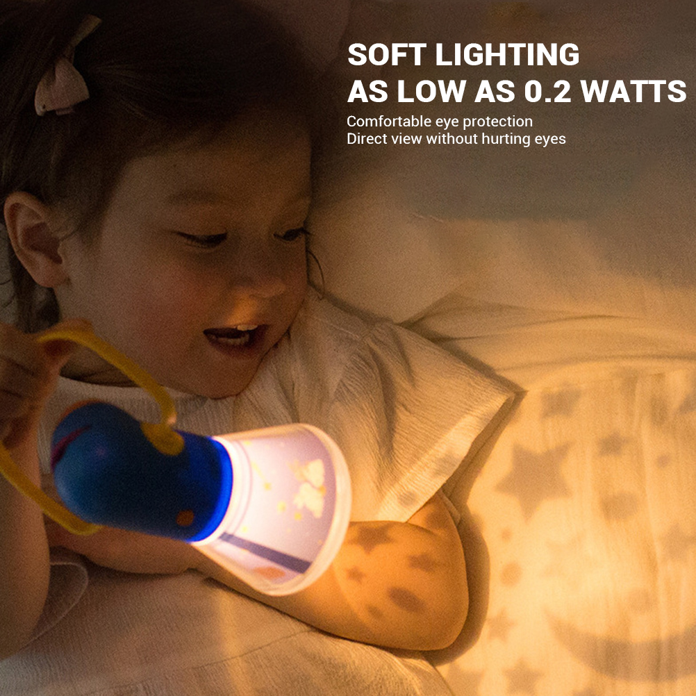 1、Story projection: Only erase the lights in the bedroom, turn the disc, playing like a child reading a picture book. 2、New technology: It adopts new optical components to improve projection technology for larger and clearer image. 3、Attract attention: Clear and vivid projection can easily stimulate kid's interest. 4、More fun: Colorful and inspiring design with an effigy of cartoons. 8 stories(64 different images) are provided with the product. 5、Projection distance: The farther the distance, the greater imaging will be. A reasonable focal length projection is about 20‑60 inch.