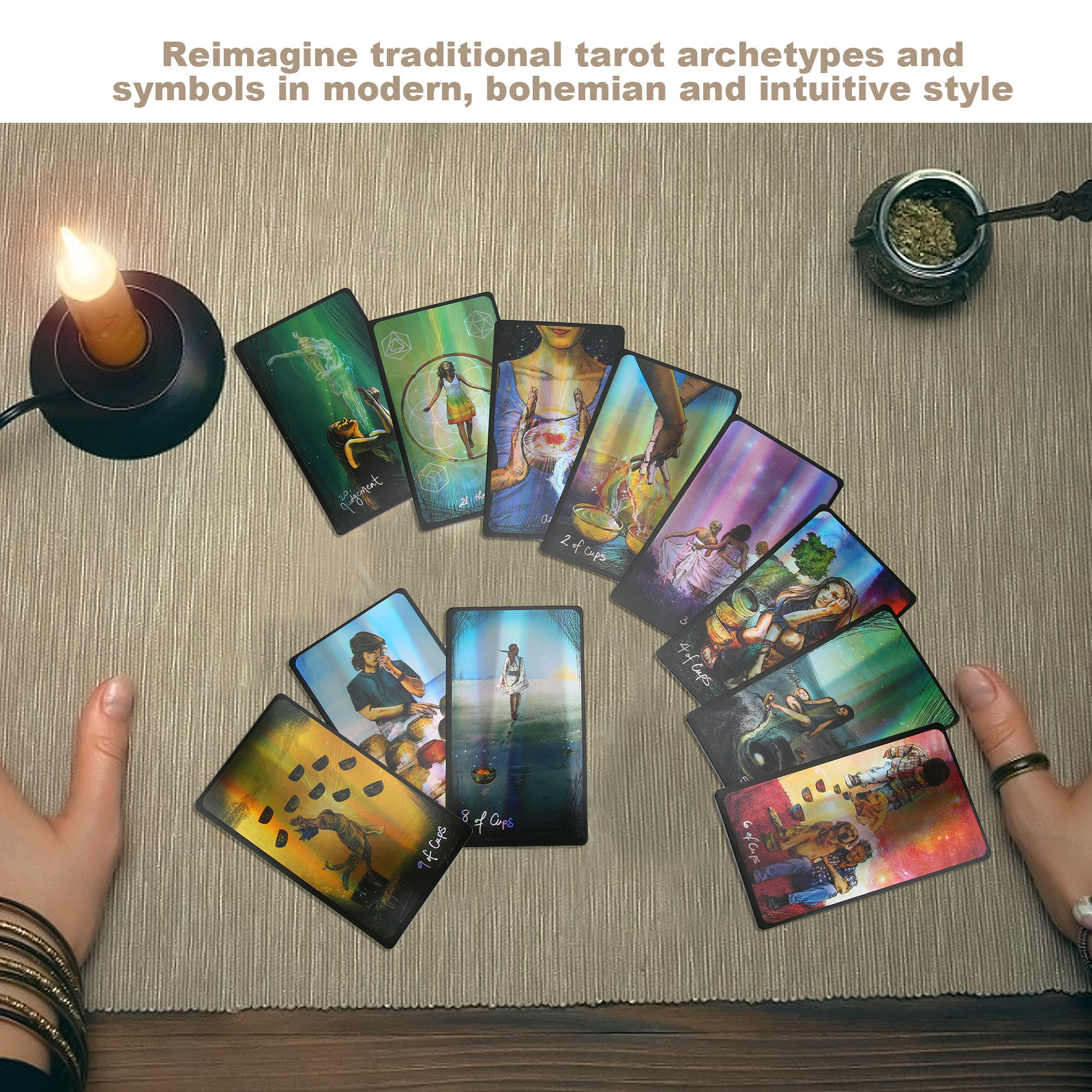 1、Guide you to predict the future and fate, these tarot cards have a delicate touch and bright colors. 2、Reimagine traditional tarot archetypes and symbols in modern, bohemian and intuitive style. 3、The "Brighter Tarot" tarot shows the light and shadow of our natural world and explores how to learn lessons. 4、Expressive characters in the card environment tell stories, ask questions and provide guidance. 5、It is an exquisite and special gift, suitable for your loved one or yourself.